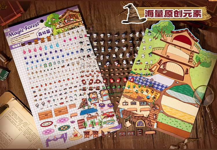 언어 유휴 애완 동물 3 차원 소형 대형 조경 스티커 재미있는 세계 시리즈 시각적 3D 오두막 어린이 손 계정 콜라주
