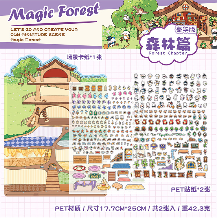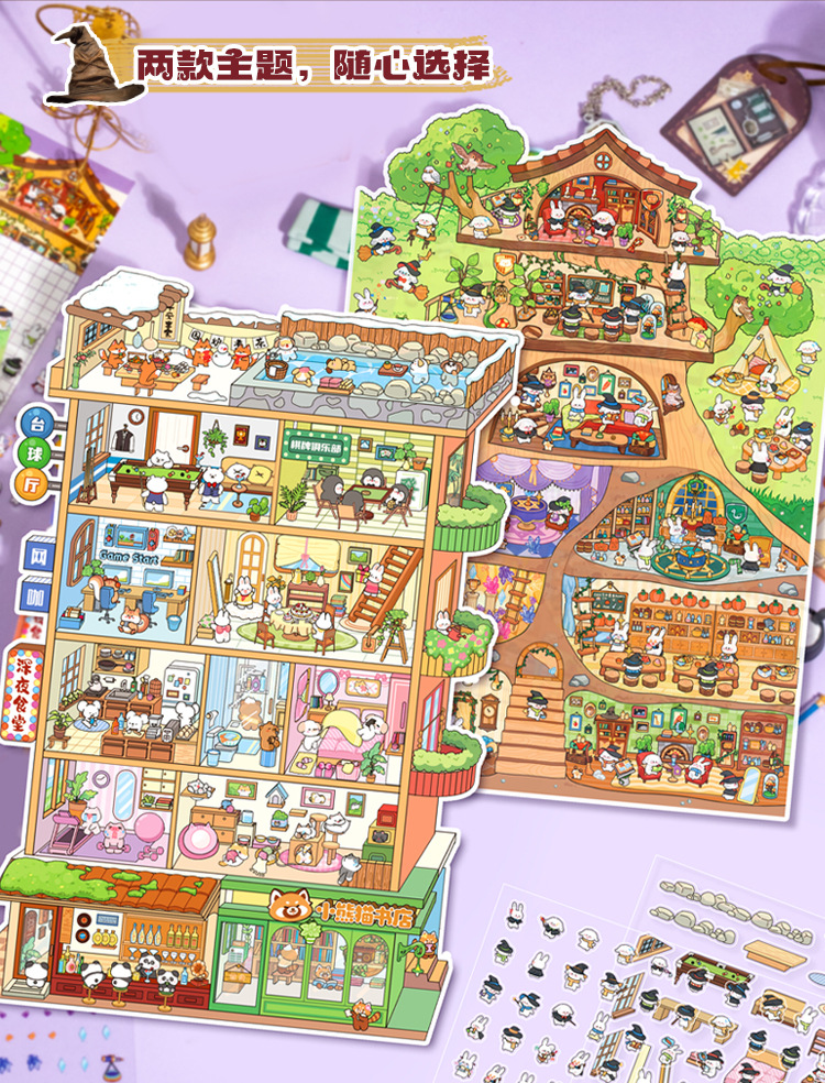 语闲pet立体微缩大造景贴纸 趣味世界系列视觉3D小屋儿童手账拼贴   语闲pet中号微缩造景贴纸 幸福小镇系列3D堆叠立体小屋手账趣味贴   语闲pet微缩造景贴纸书 定格快乐系列视觉3D立体小屋女孩手账玩具