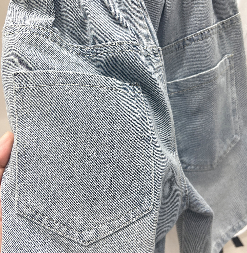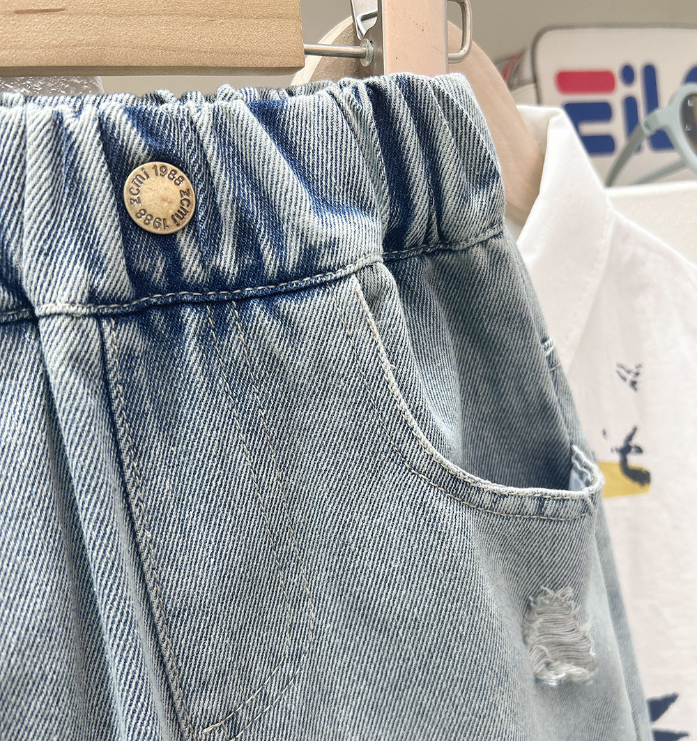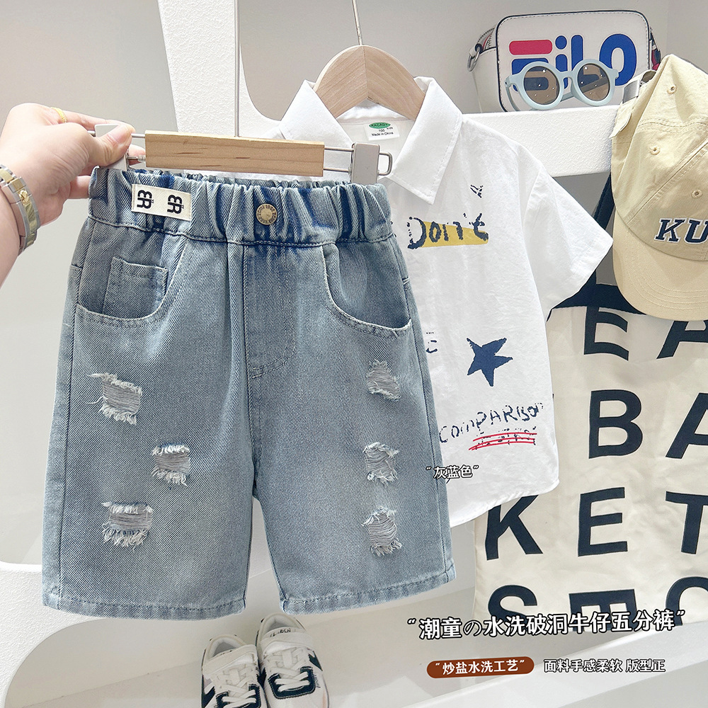 남자들의 여름 데님 5 점 바지 2025 새로운 중대형 어린이 서양식 유행 반바지 세련된 세련된 세련된 데님 반바지스토어 가기