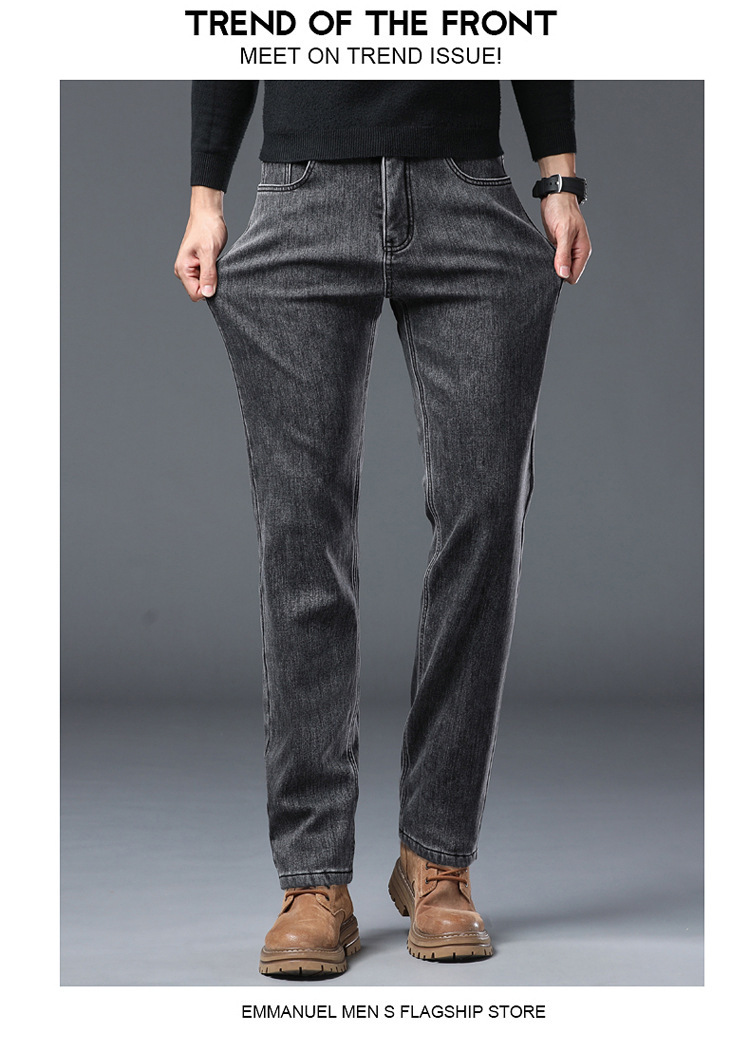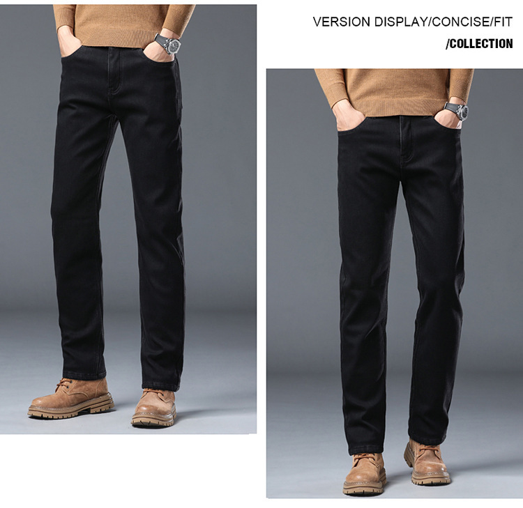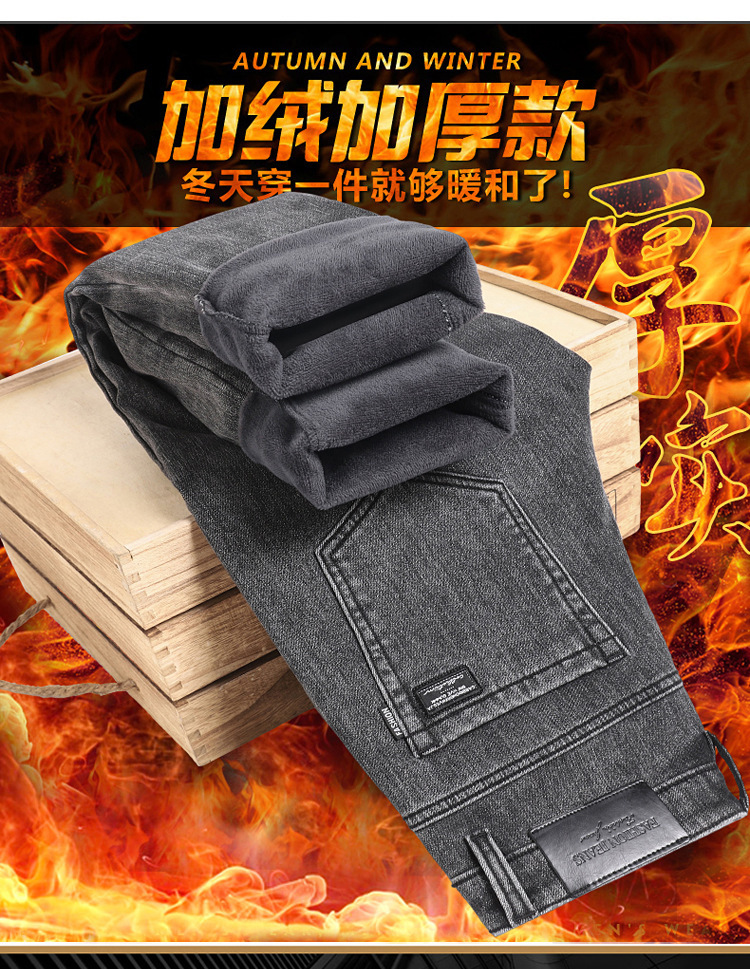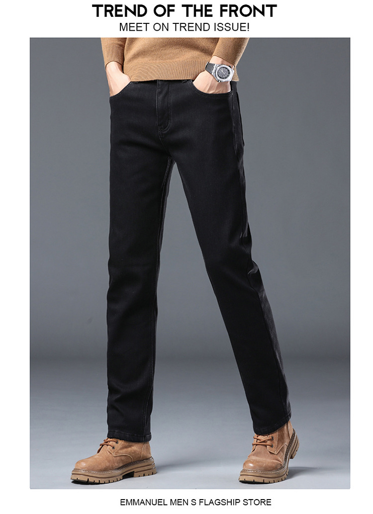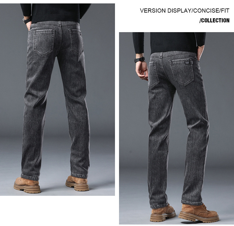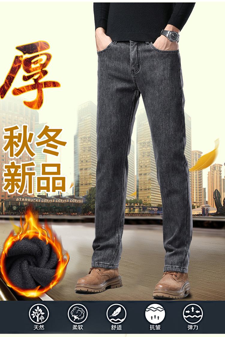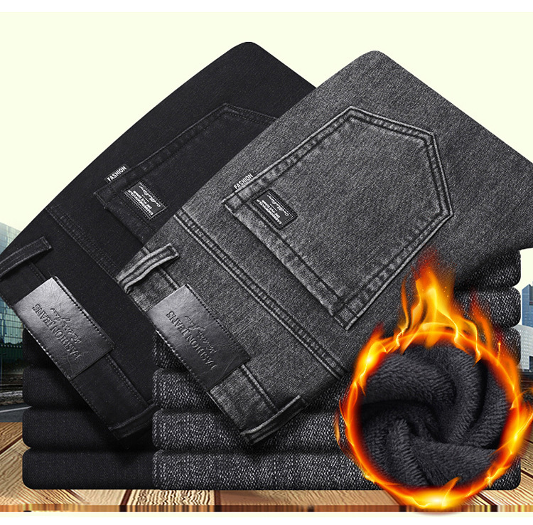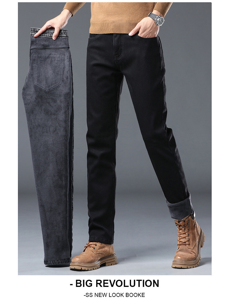 따뜻한 슬림 남성 바지 가을과 겨울 긴 기모 스트레이트 캐주얼 새로운 도착 청바지 바지 남자 탄성스토어 가기