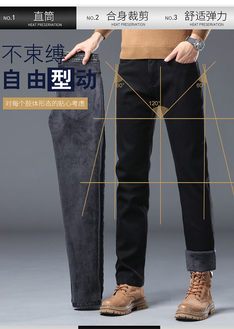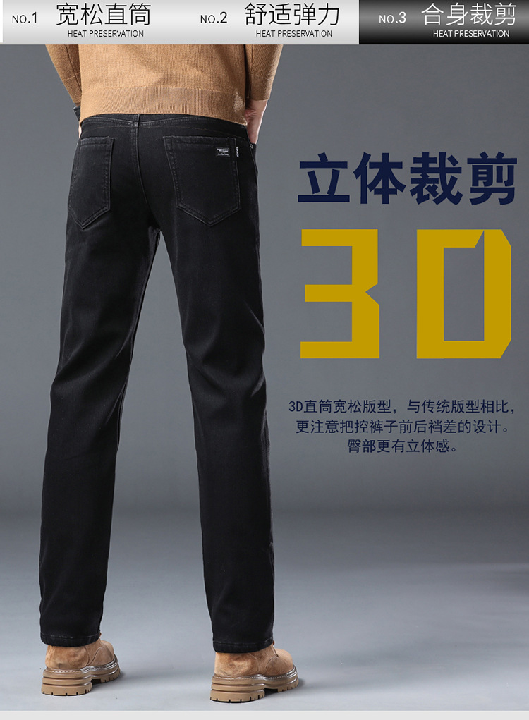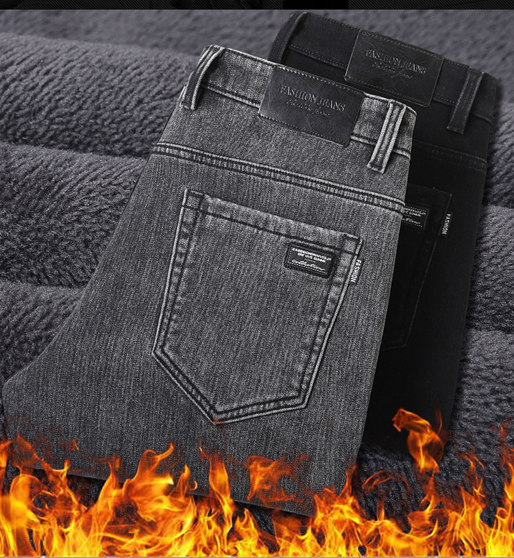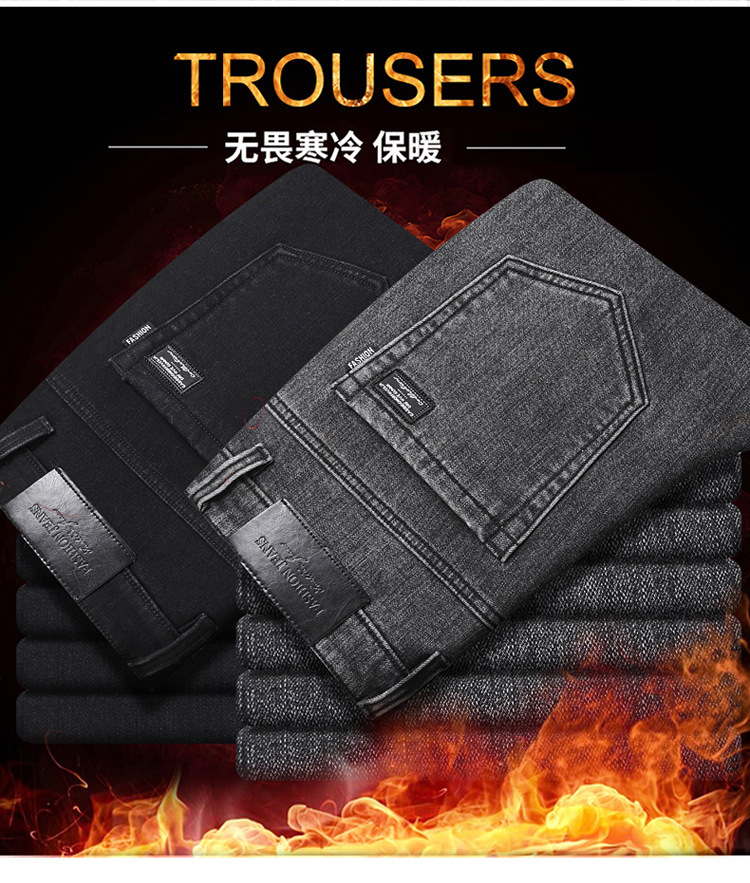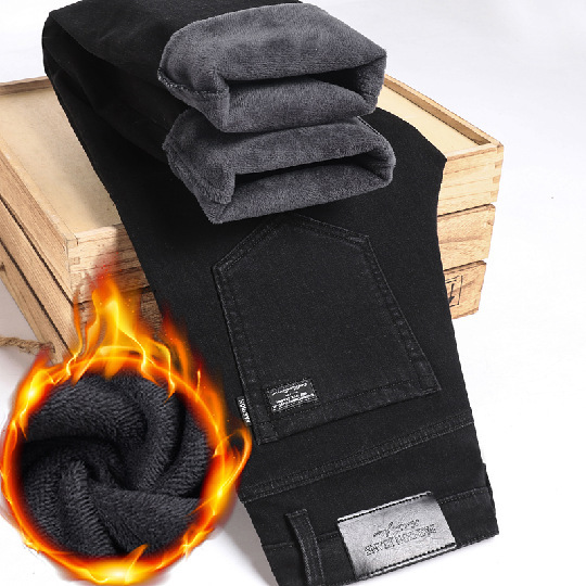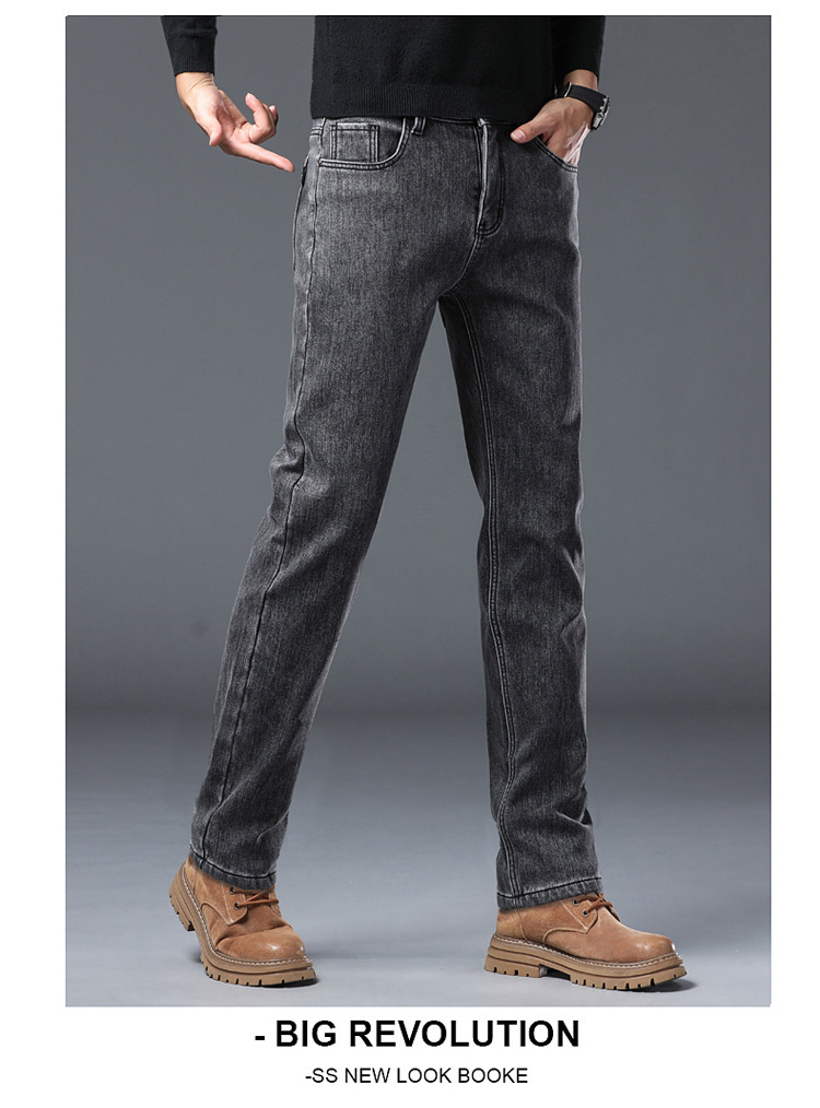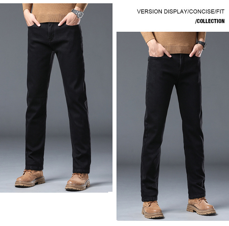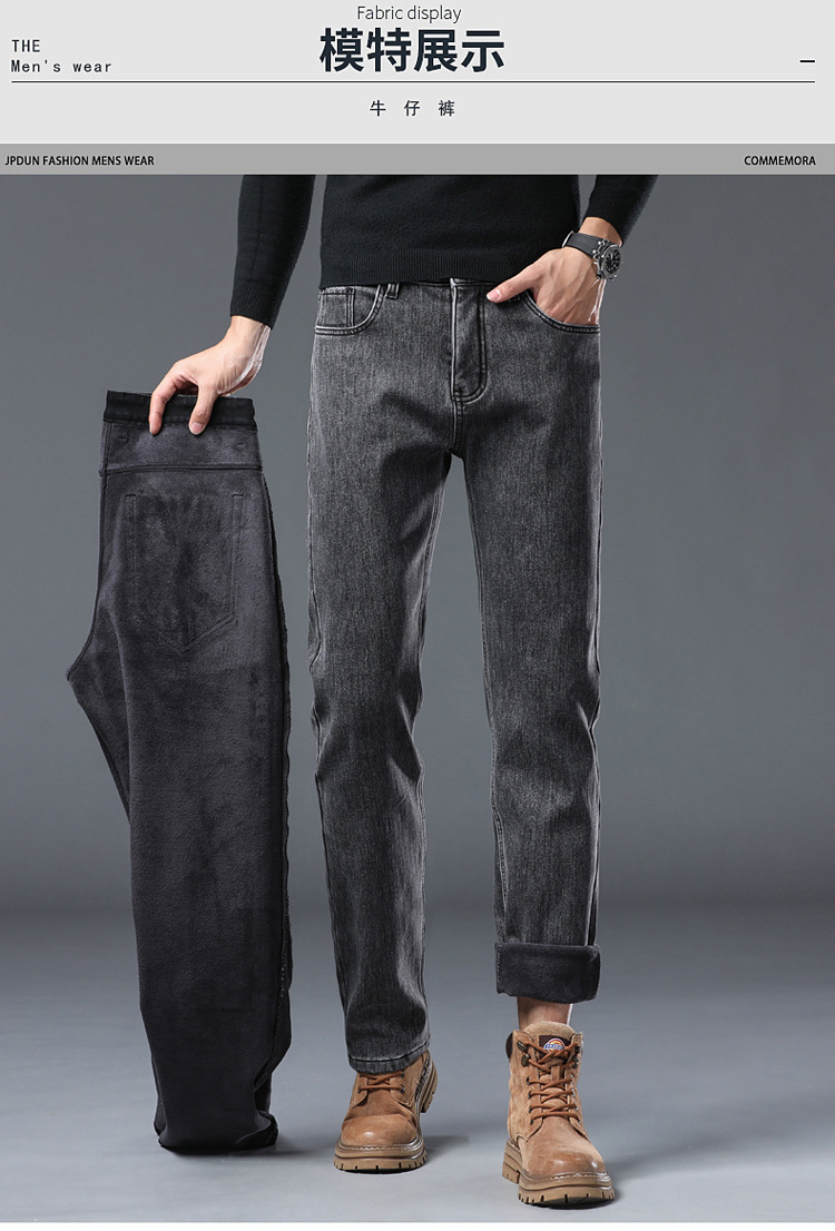 따뜻한 슬림 남성 바지 가을과 겨울 긴 기모 스트레이트 캐주얼 새로운 도착 청바지 바지 남자 탄성스토어 가기