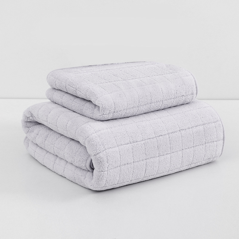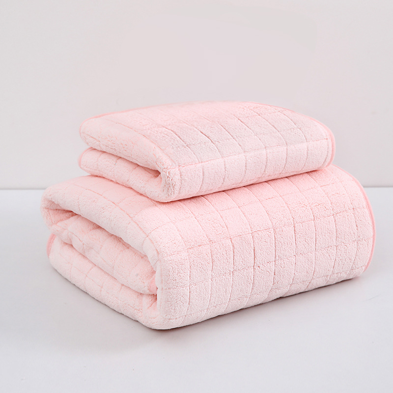 새로운 산호 벨벳 체크 무늬 수건, 대형 및 두꺼운 흡수성 수건, 가정용 속건성 랩 타월, 대형 목욕 타월 도매