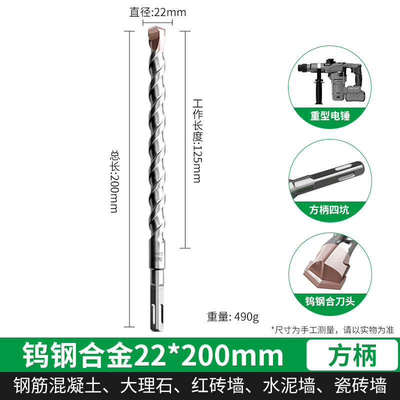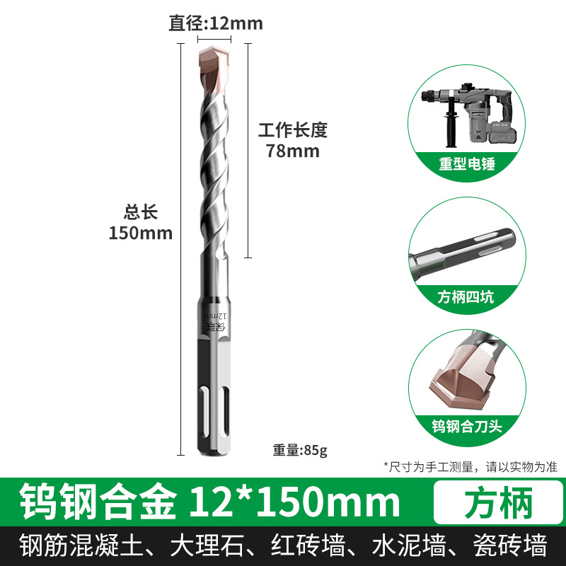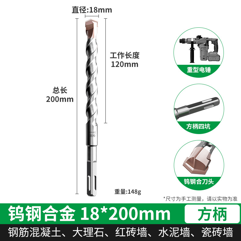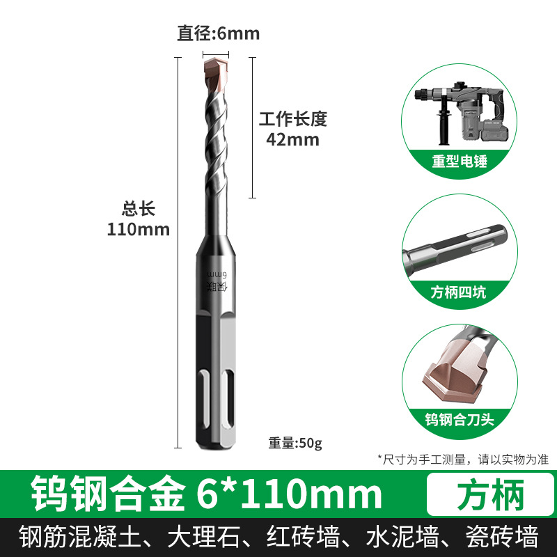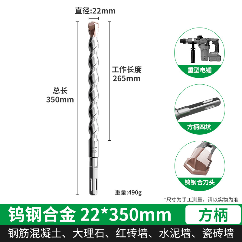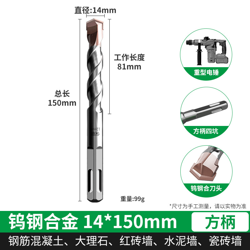 텅스텐 강철 연장 타악기 드릴 전기 해머 드릴 콘크리트 벽을 통해 벽 사각형 핸들 라운드 핸들 드릴링 슬롯 합금 회전 헤드
