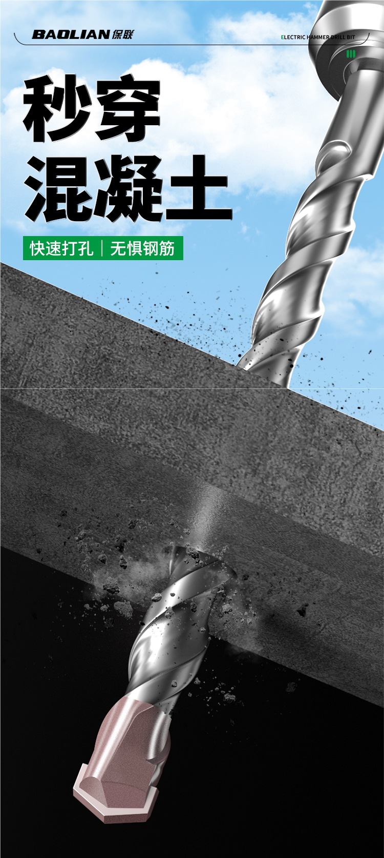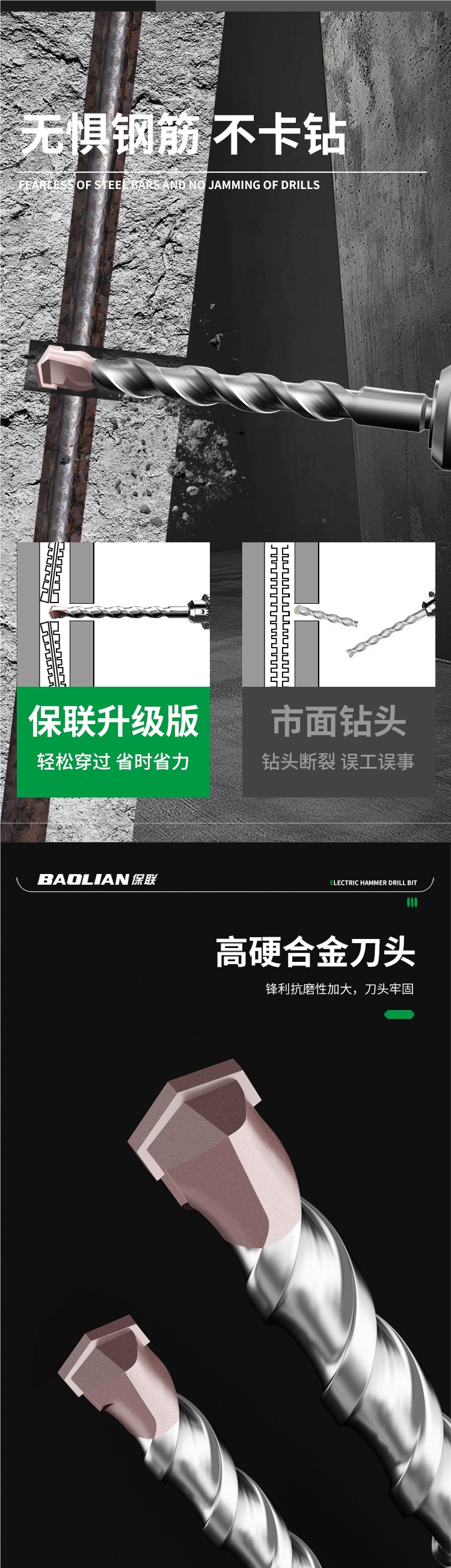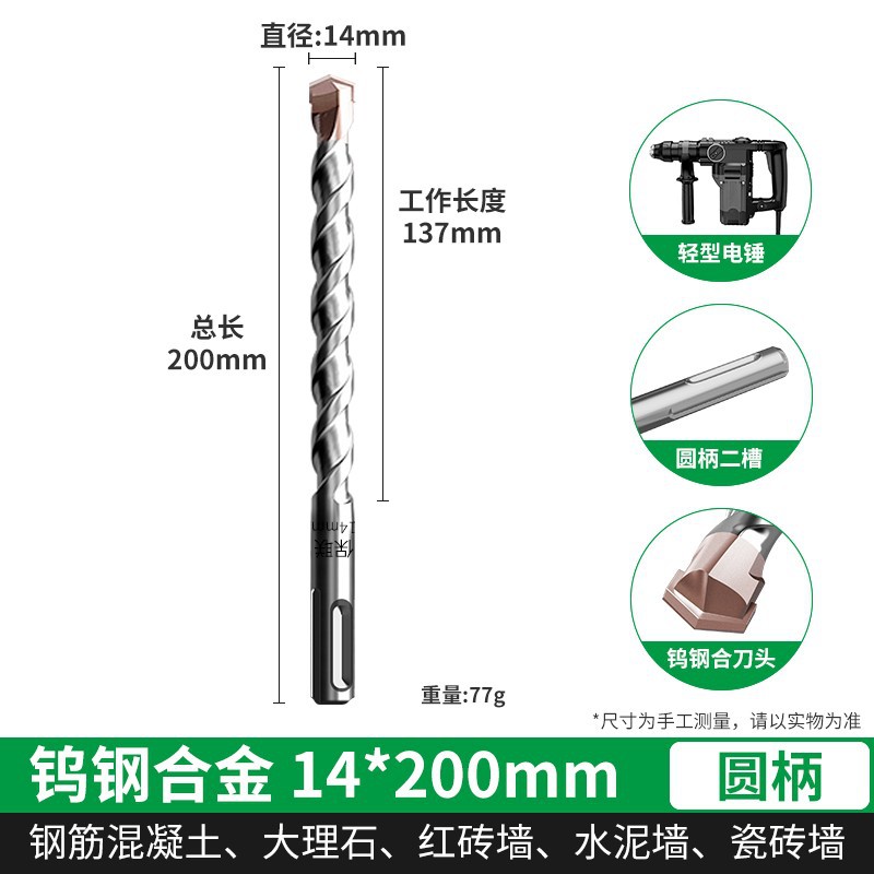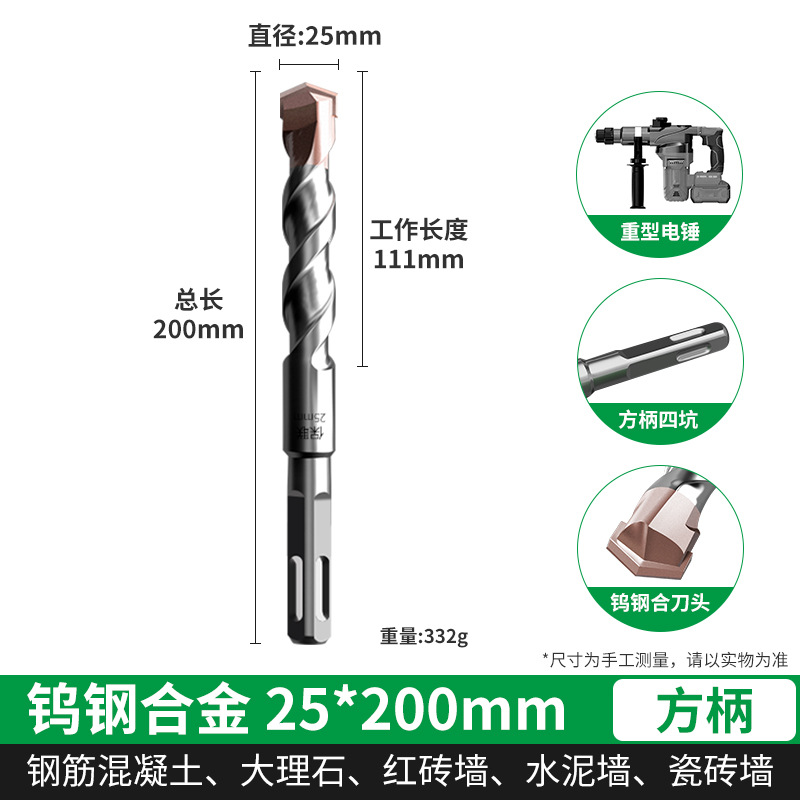 텅스텐 강철 연장 타악기 드릴 전기 해머 드릴 콘크리트 벽을 통해 벽 사각형 핸들 라운드 핸들 드릴링 슬롯 합금 회전 헤드
