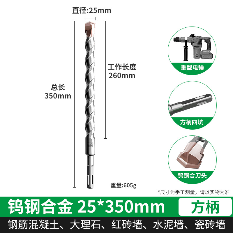 텅스텐 강철 연장 타악기 드릴 전기 해머 드릴 콘크리트 벽을 통해 벽 사각형 핸들 라운드 핸들 드릴링 슬롯 합금 회전 헤드스토어 가기