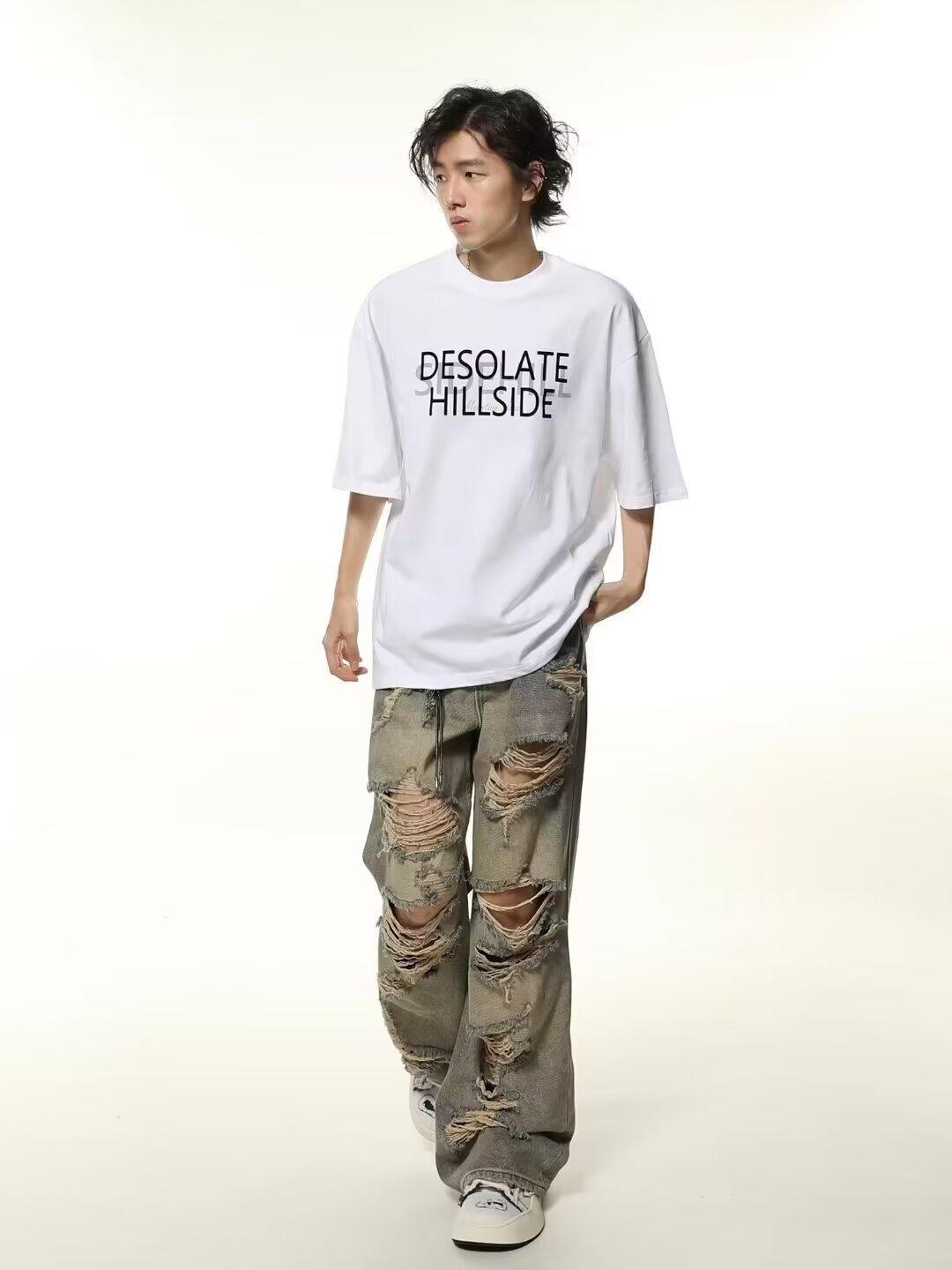 미국 거리 씻은 오래된 찢어진 청바지 남자의 봄과 가을 똑바로 느슨한 유럽과 미국의 하이 스트리트 바이브 스타일 긴 바지스토어 가기