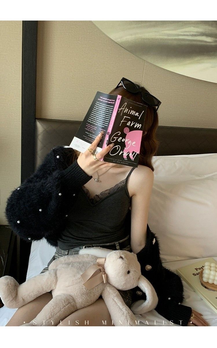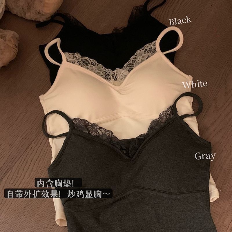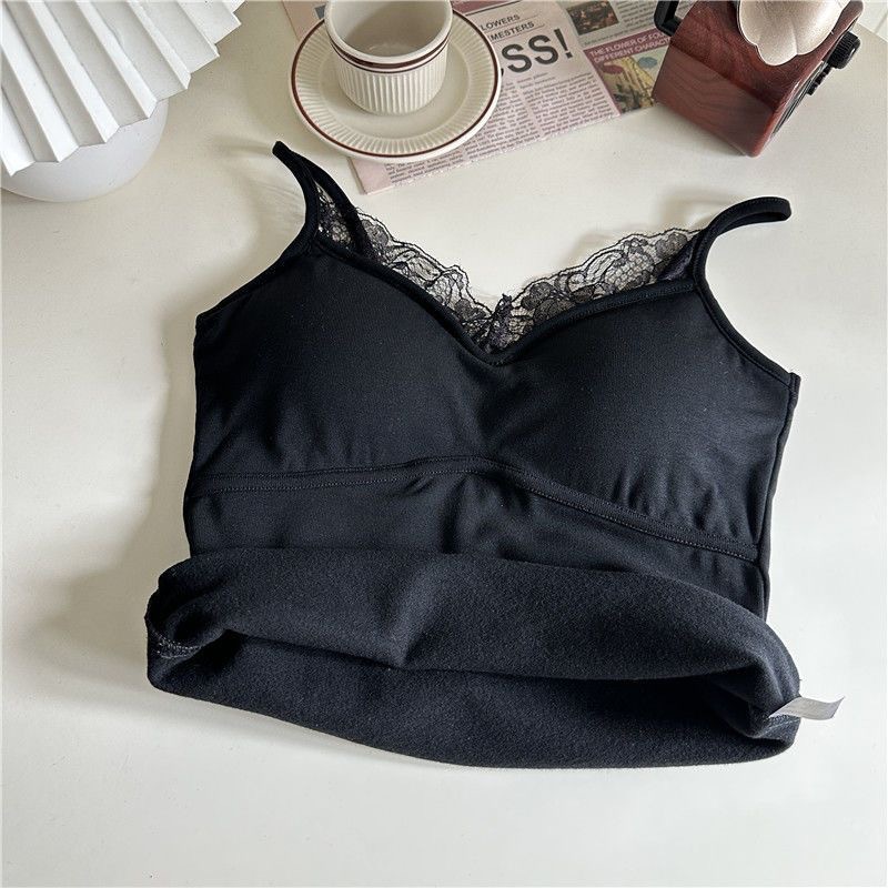 [라이트닝 창고 핫 스타일] 기모 퓨어 러스티 핫걸 레이스 섹시 캐미솔 여성 슬림 브이넥 바닥