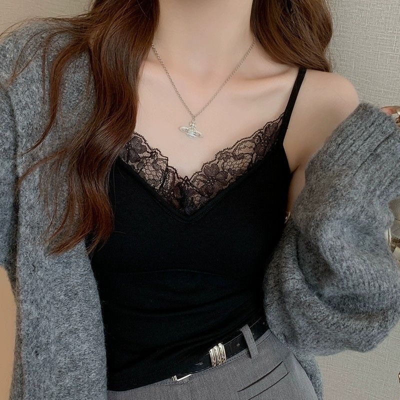 [라이트닝 창고 핫 스타일] 기모 퓨어 러스티 핫걸 레이스 섹시 캐미솔 여성 슬림 브이넥 바닥스토어 가기