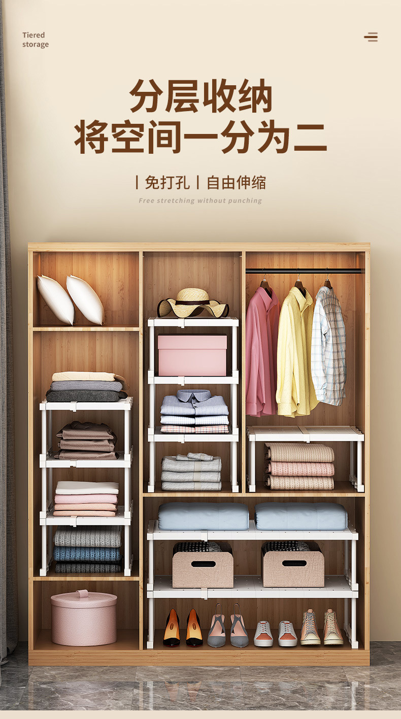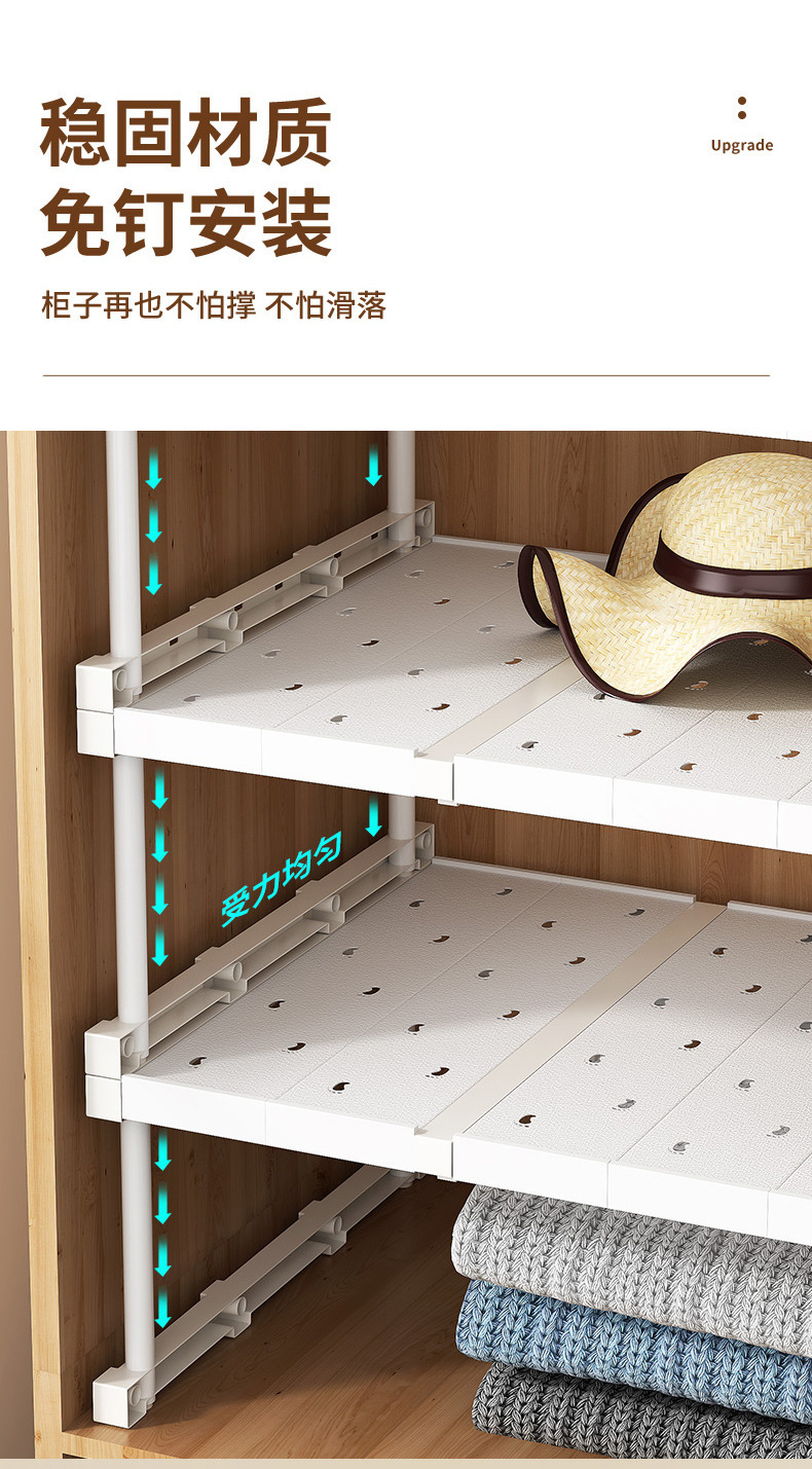 옷장 계층화 된 파티션 저장 아티팩트 캐비닛 개폐식 주방 캐비닛 내부 저장 랙 옷장 파티션 고정 보드