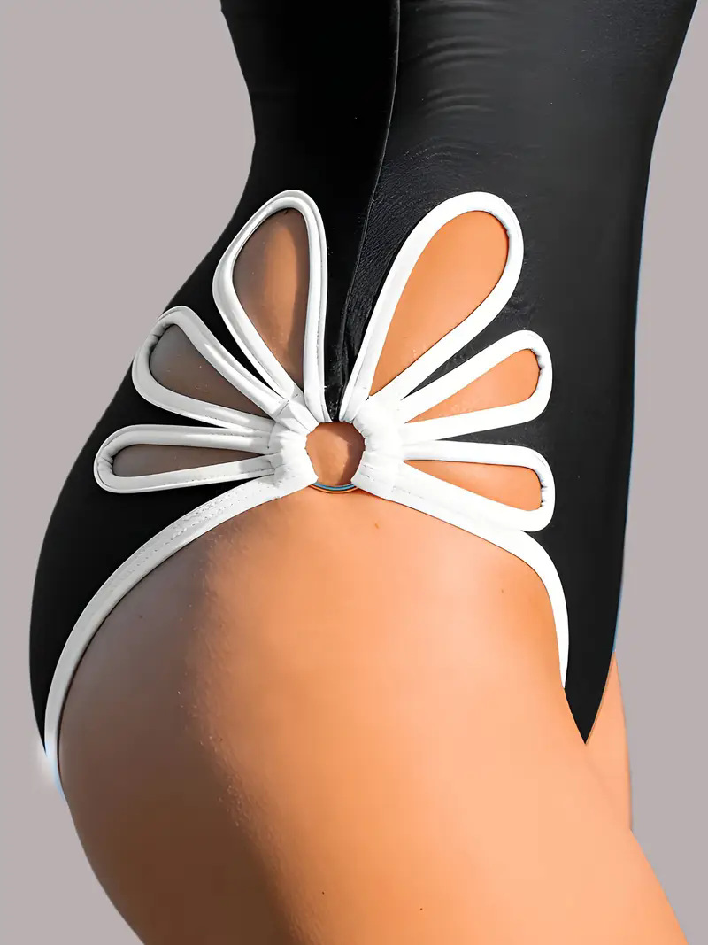 2025 유럽과 미국 대외 무역 여성의 AliExpress 국경 간 수출 결합 비키니 수영복 속이 빈 꽃