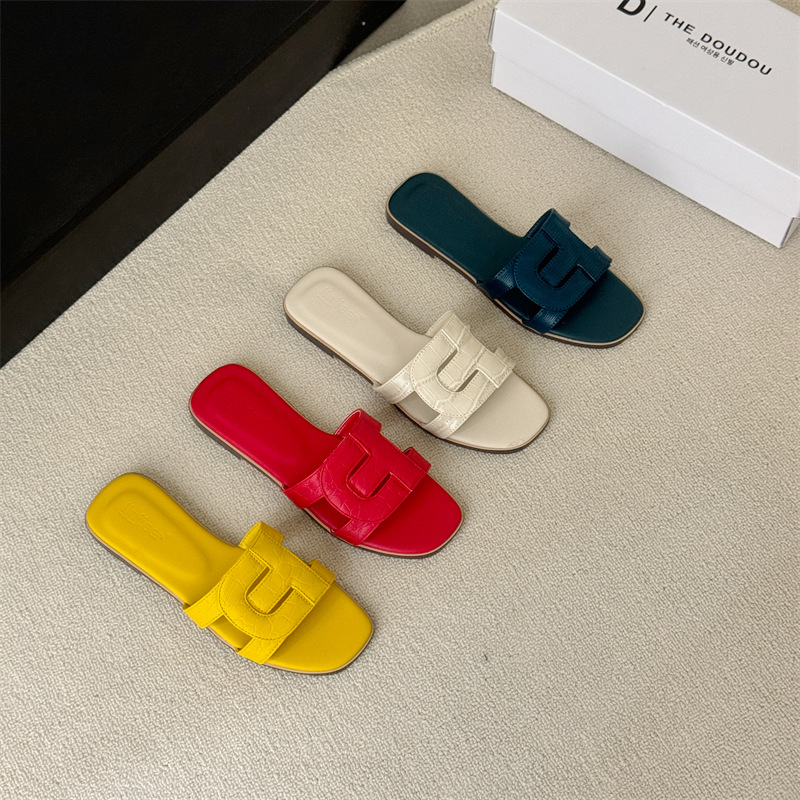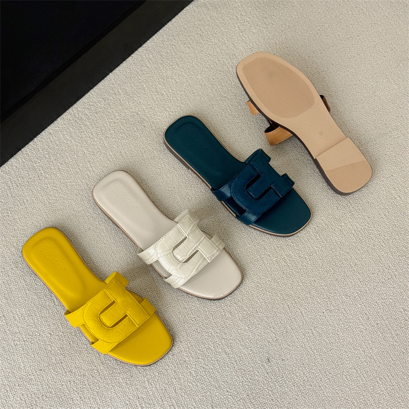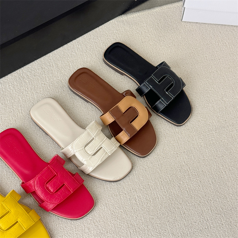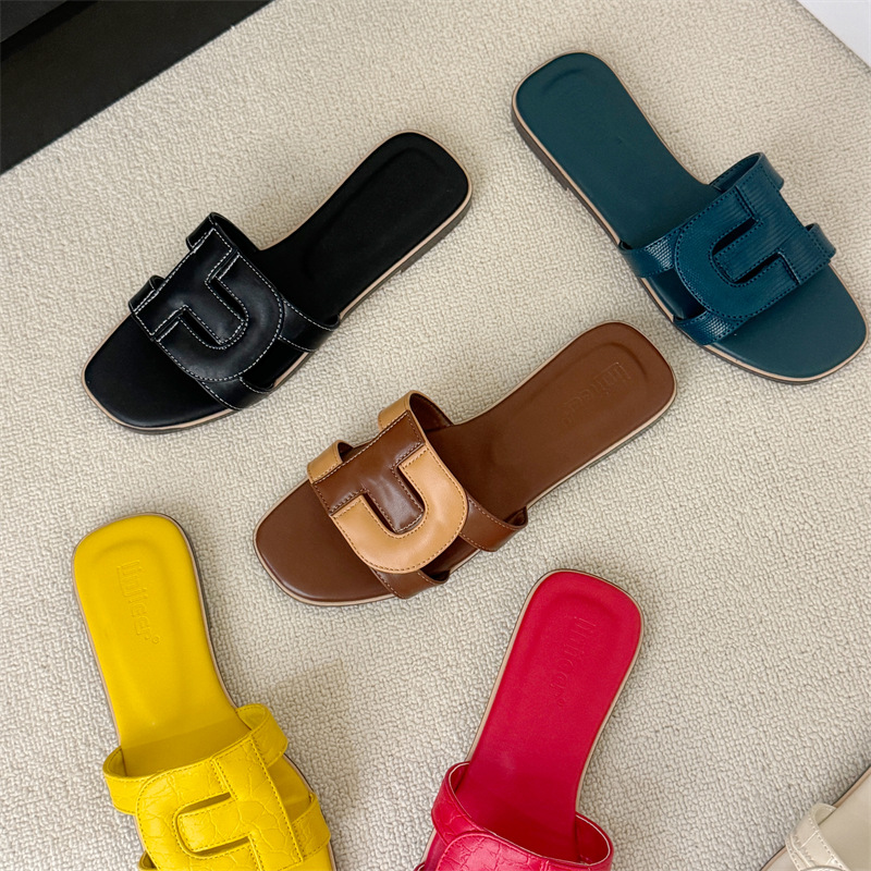 플랫 슬리퍼 여성용 외부 착용 2025 여름 새로운 스타일 잠금 버클 디자인 로마 샌들 요정 스타일 슬라이드스토어 가기