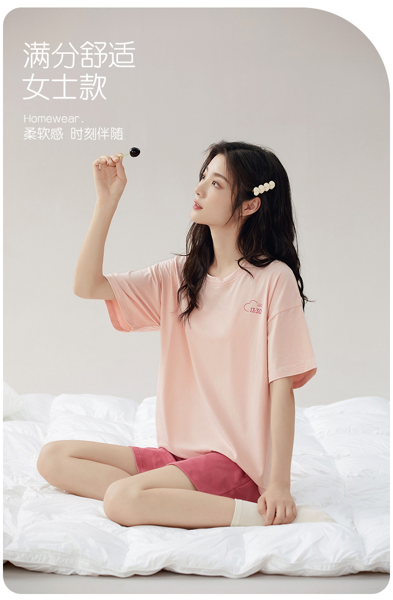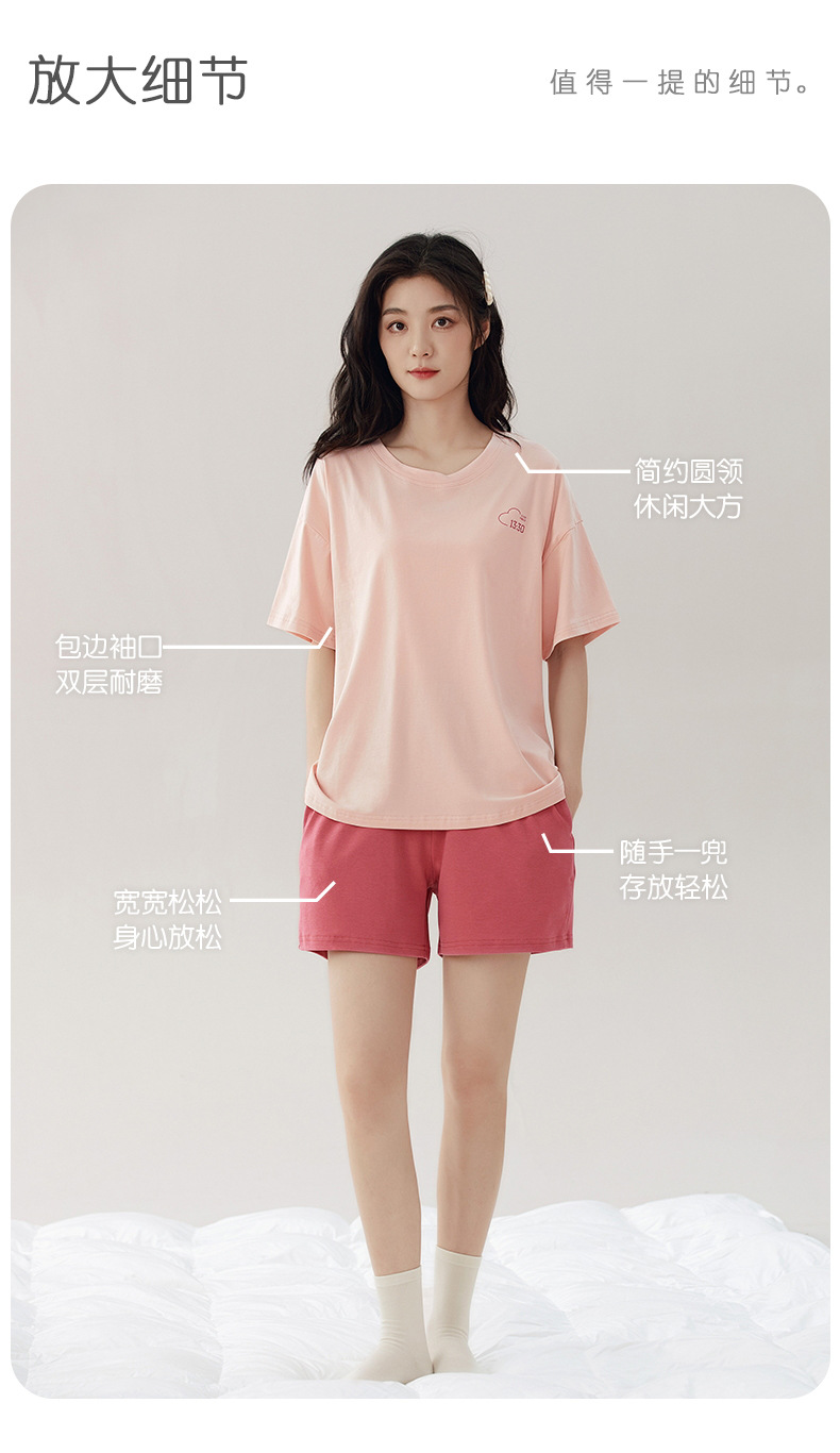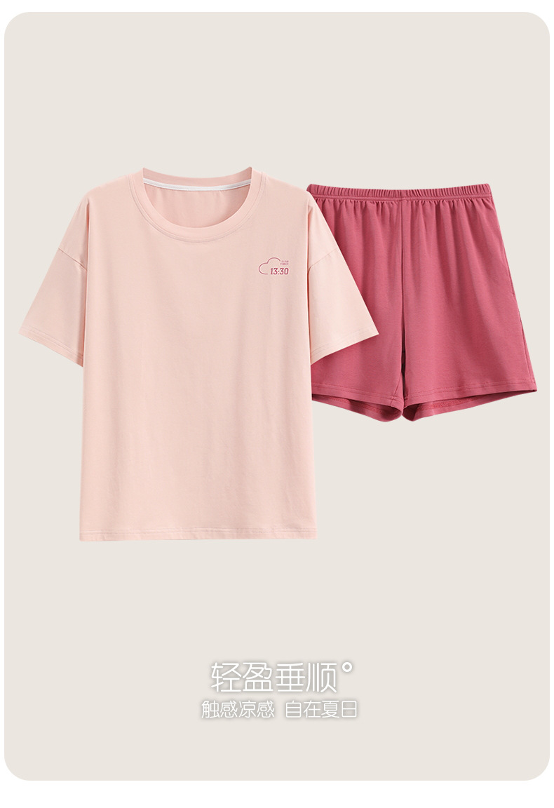 순면 잠옷 여성 여름 반팔 반바지 202 새로운 여름 겉옷 단색 얇은 홈 의류 세트스토어 가기