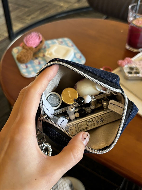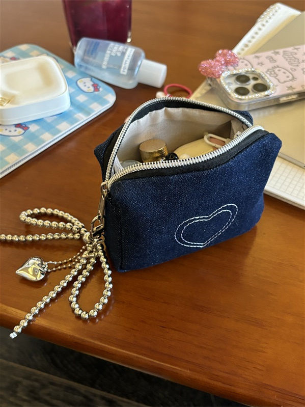 간단한 데님 사랑 자수 화장품 가방 인증서 가방 이어폰 가방 휴대용 작은 가방 먼지 방지 동전 지갑 빨간 가방스토어 가기