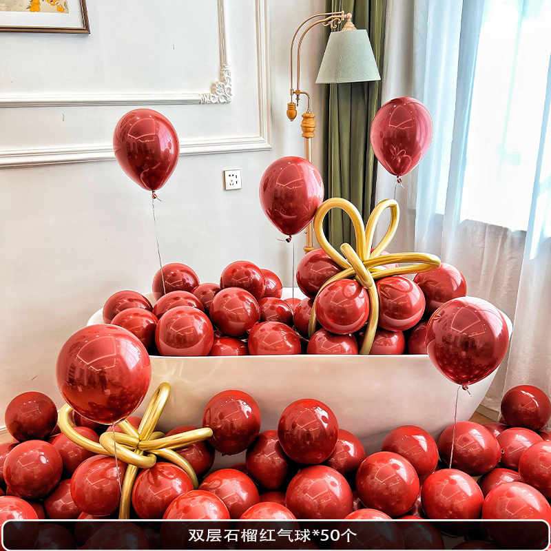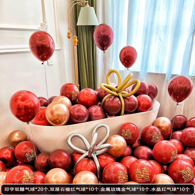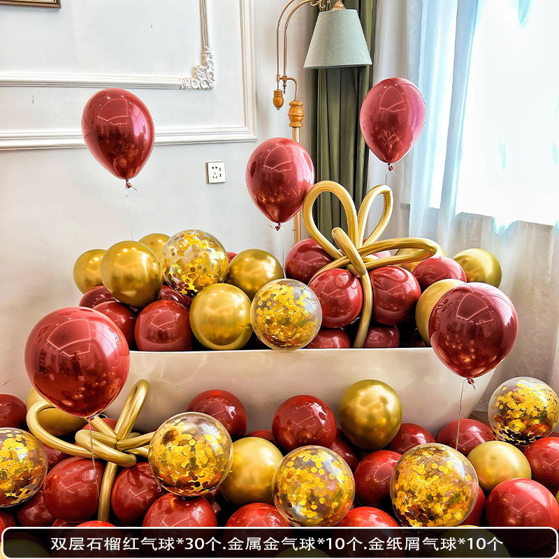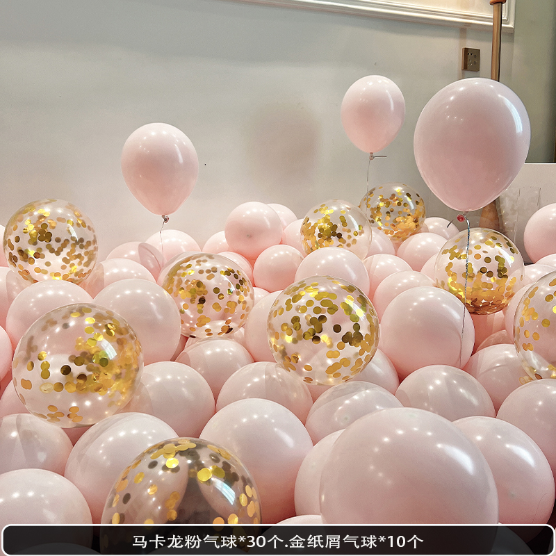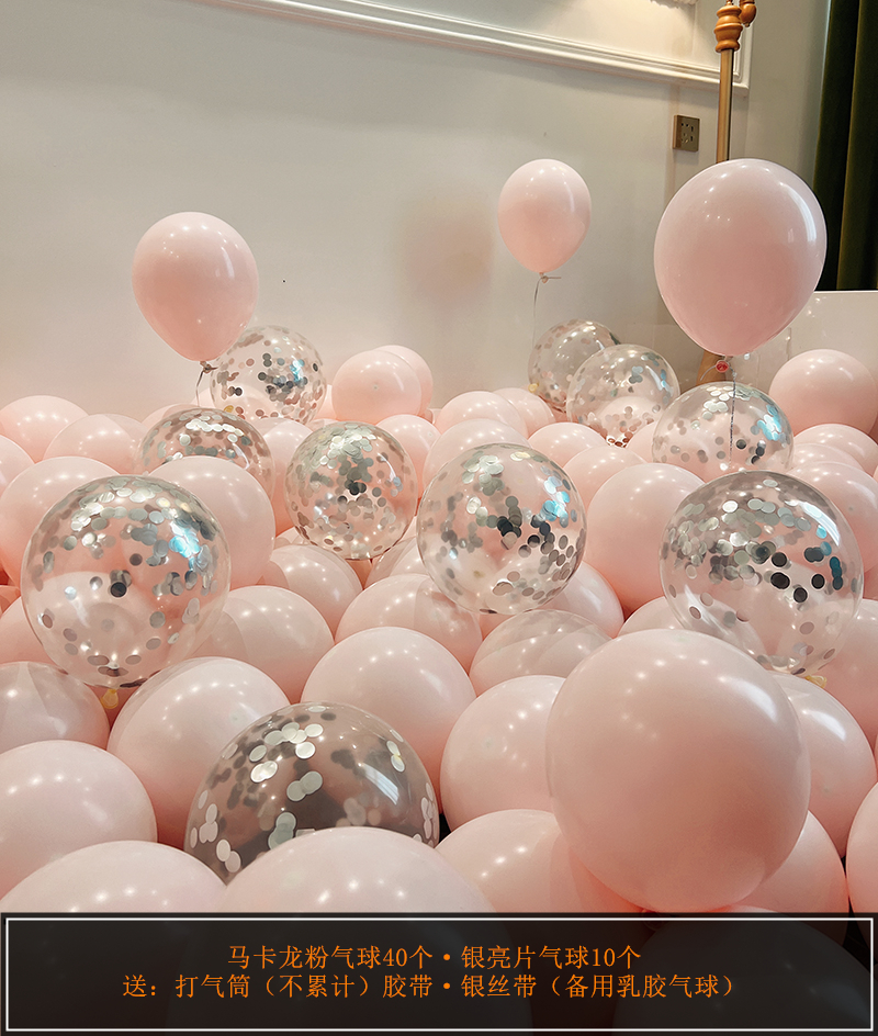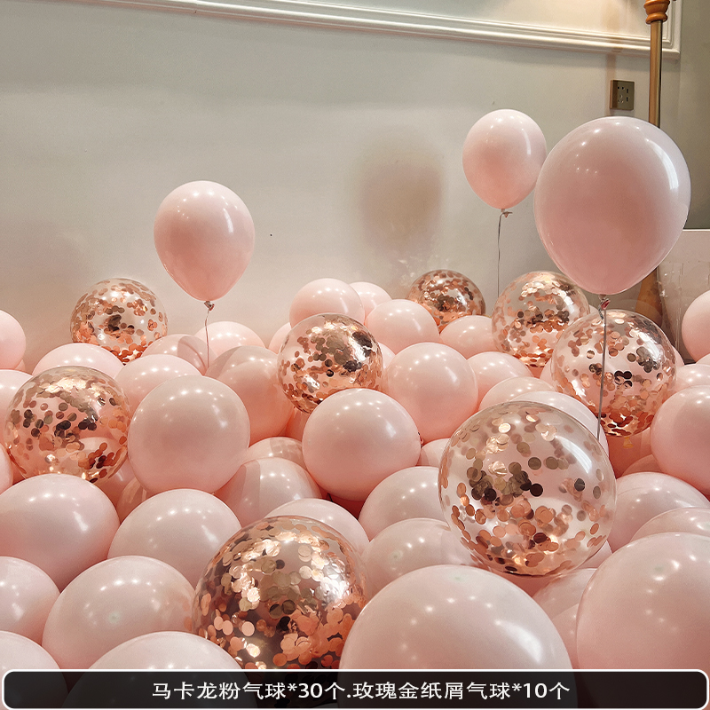 웨딩 룸 장식 장면 레이아웃을 위해 금속 스팽글 생일 매듭과 혼합 된 풍선 핑크 공기 중에 떠 다니는 헬륨으로 채워진 질소 풍선스토어 가기