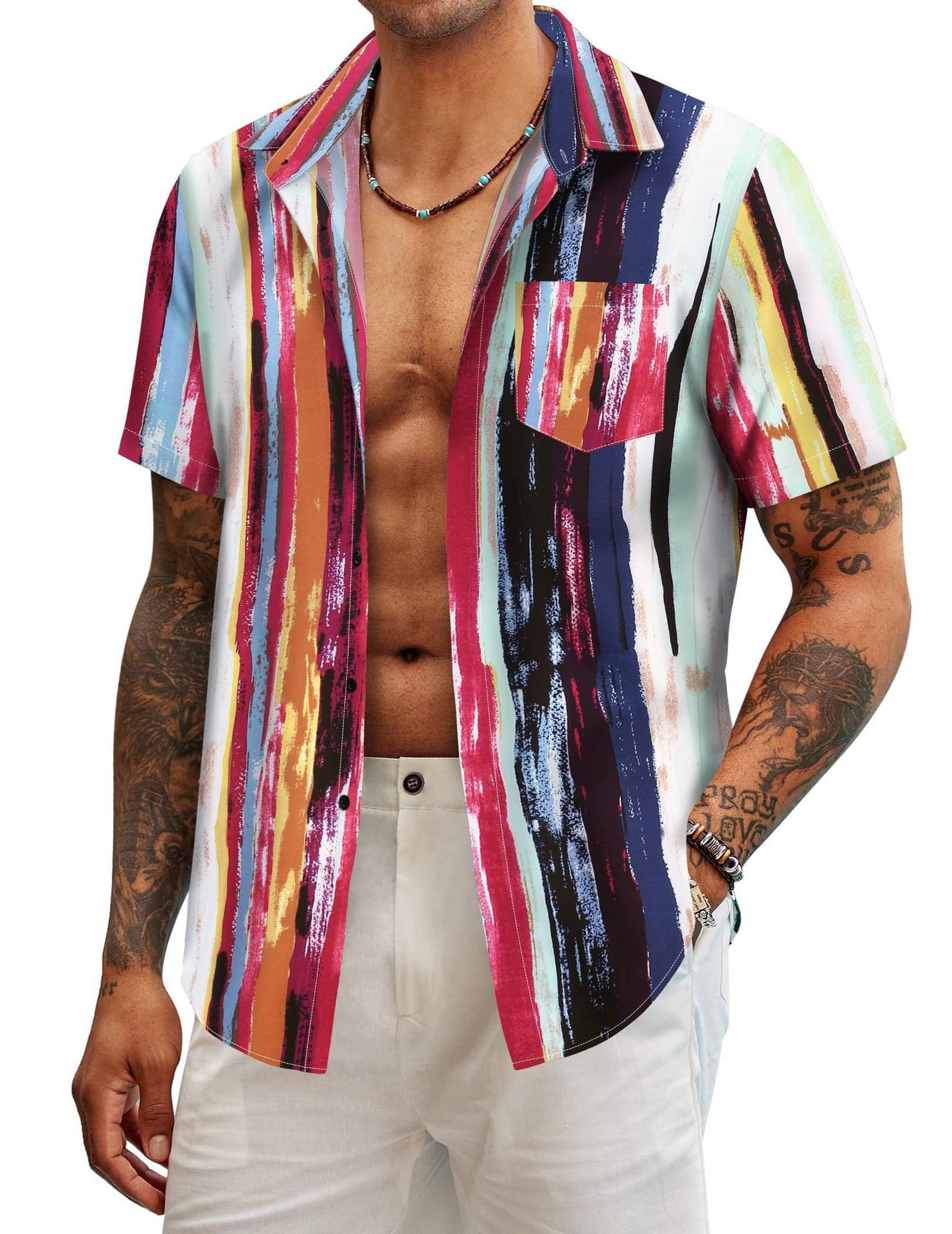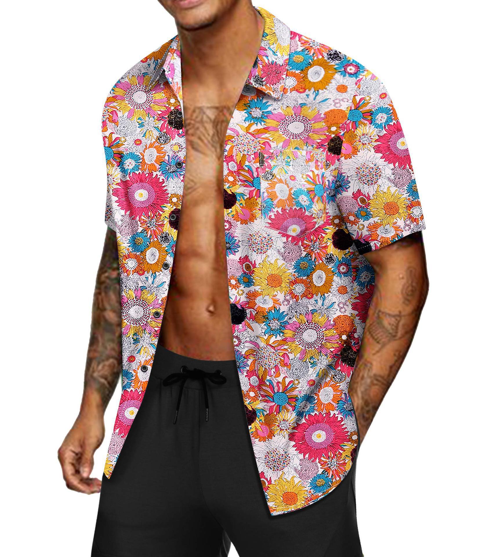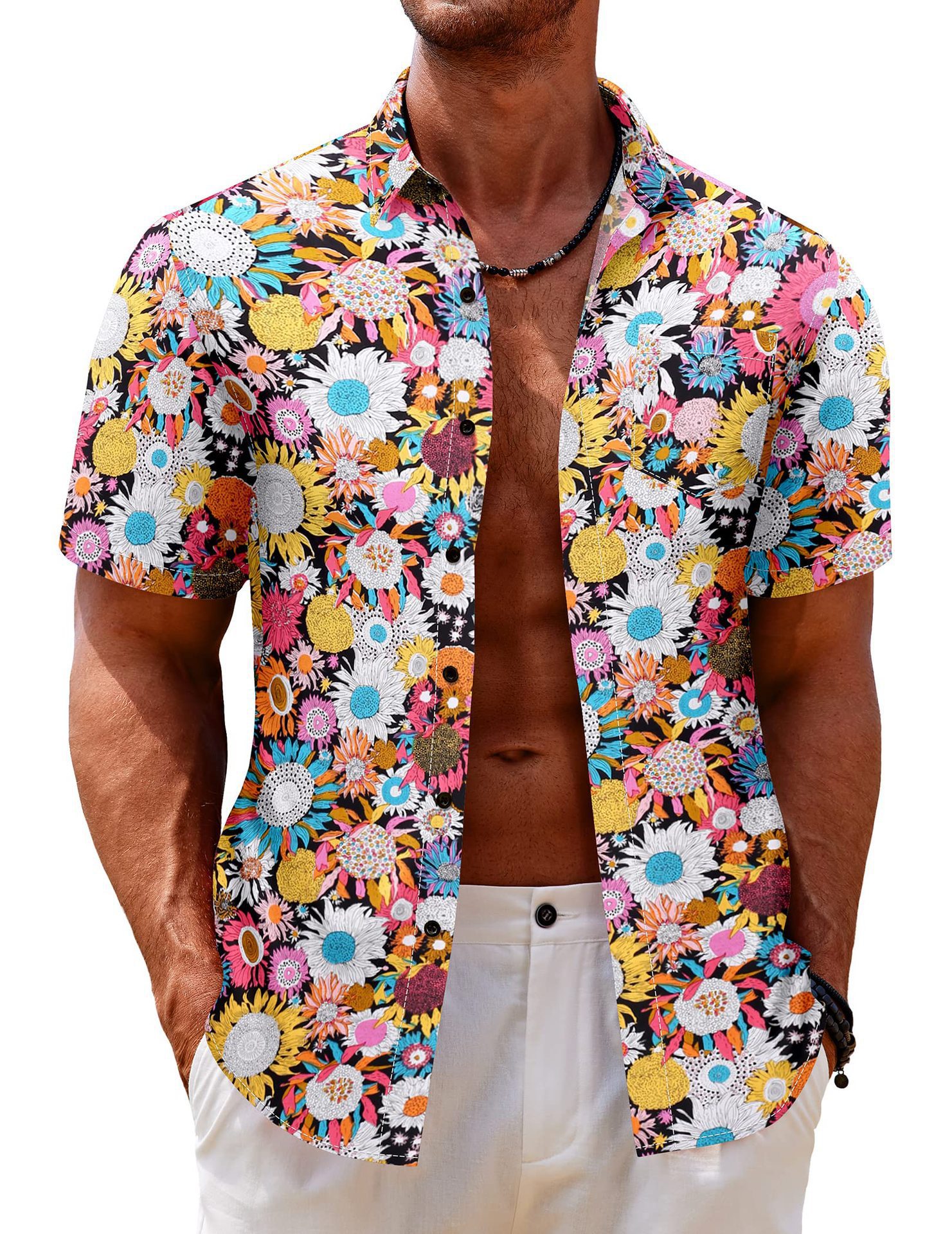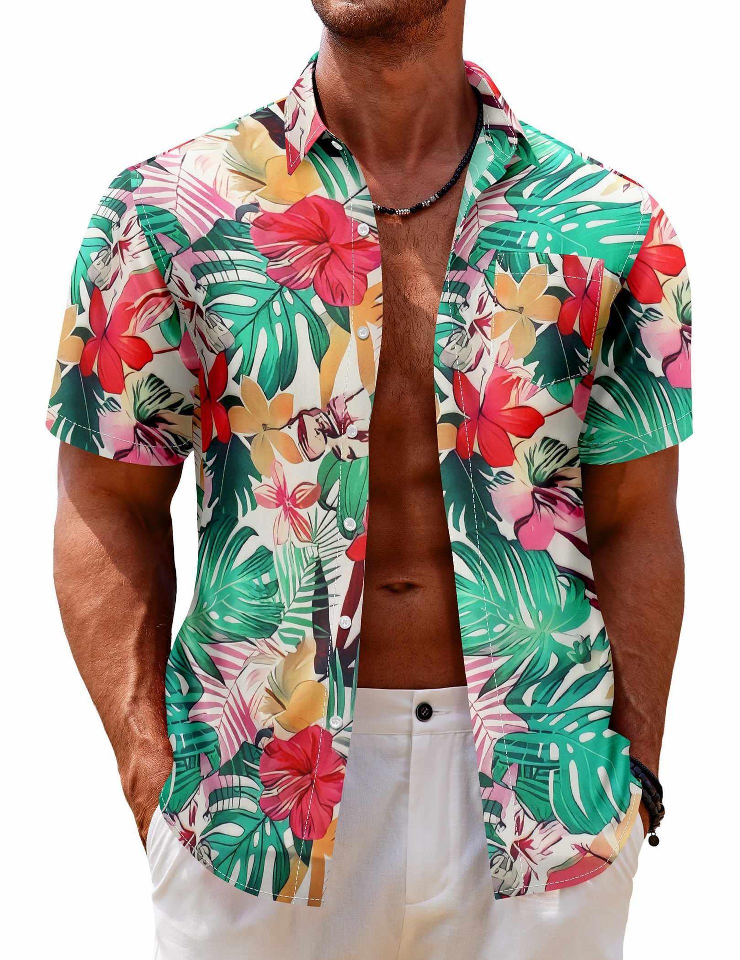 3D 프린트 셔츠 대외 무역 유럽과 미국 옷깃 남성 캐주얼 짧은 소매 포켓 여름 하와이 남성 복고풍 트렌드