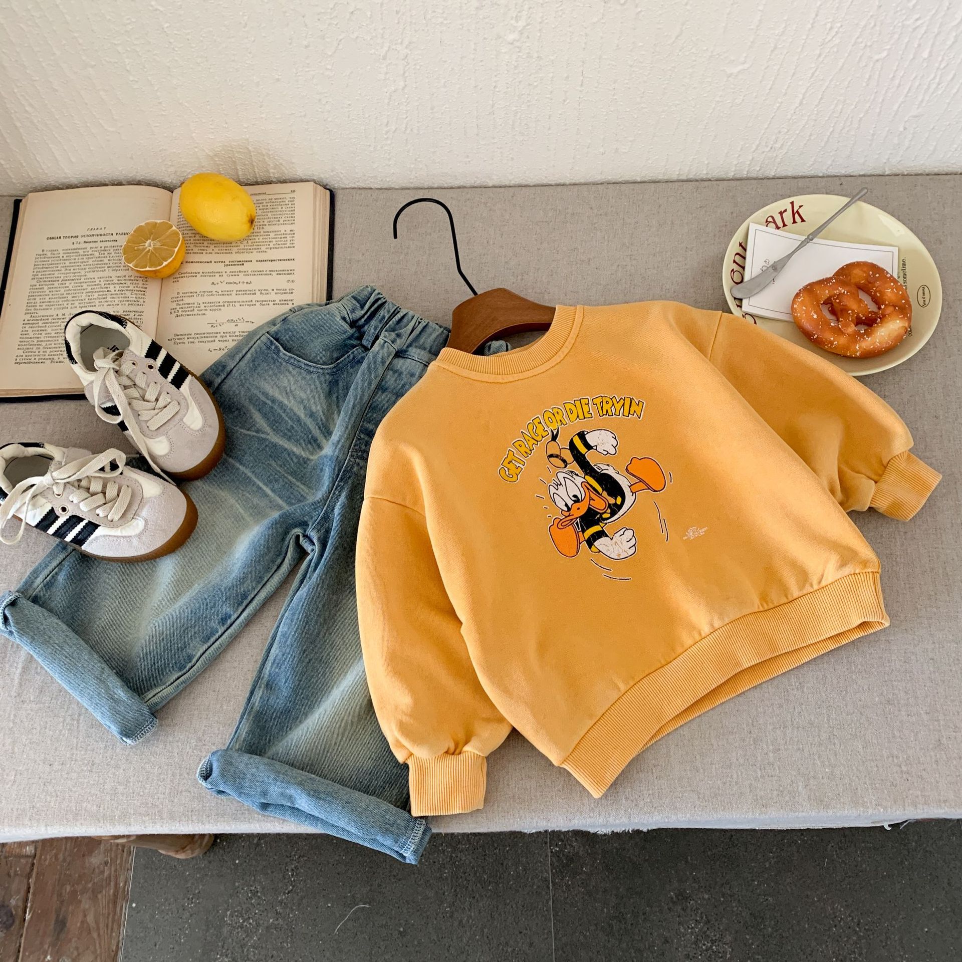 한국식 고급 장식 아동용 만화 프린트 스웨트셔츠, 가을 신상품, 남아용 니트 스웨터, 여아용 풀오버 탑
