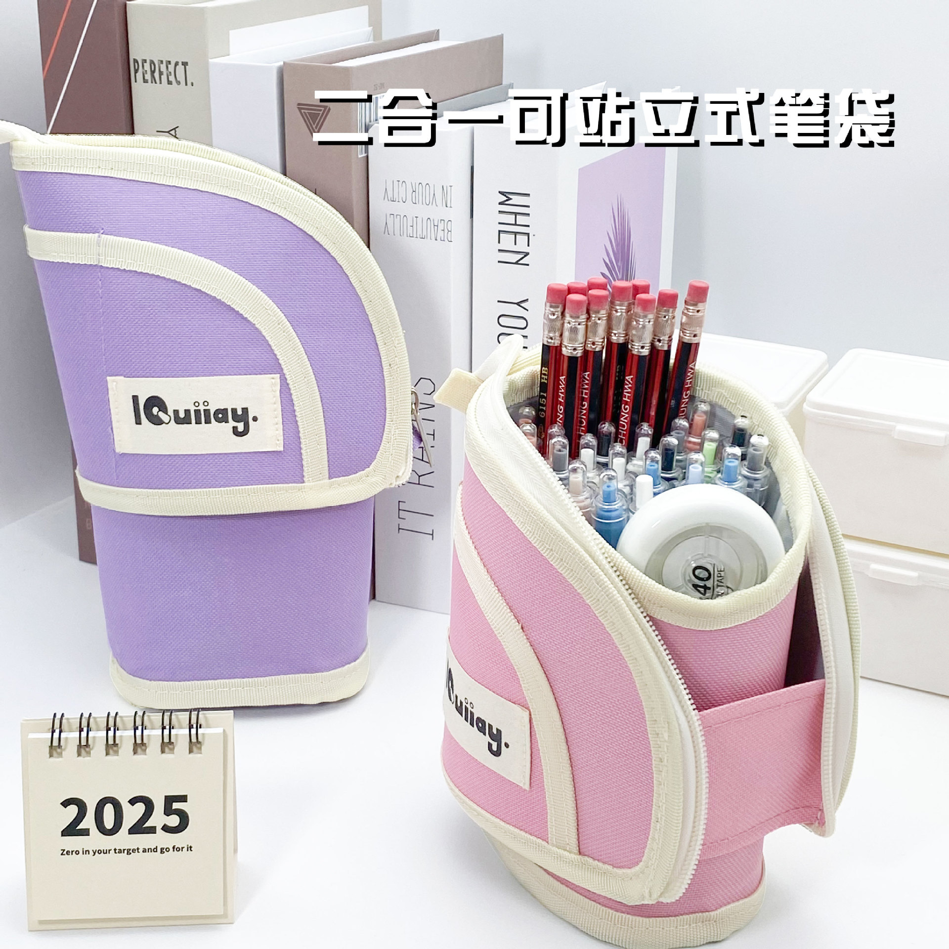 도파민 수직 연필 가방 펜 홀더 소년과 소녀 연필 가방 학습 문구 높은 색상 값을 위한 투인원 문구 케이스스토어 가기