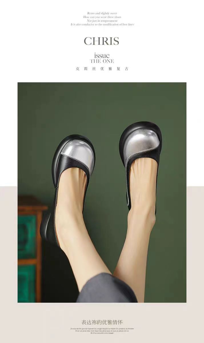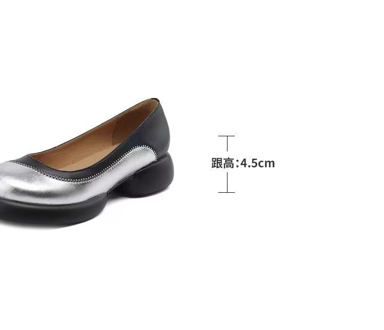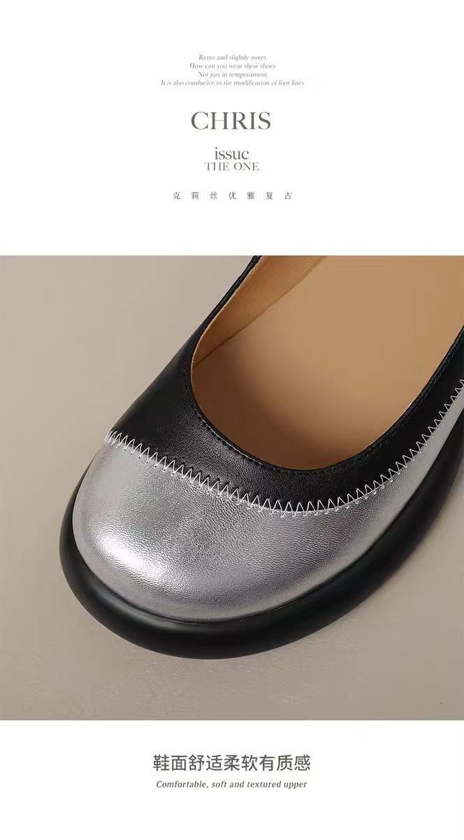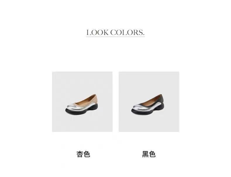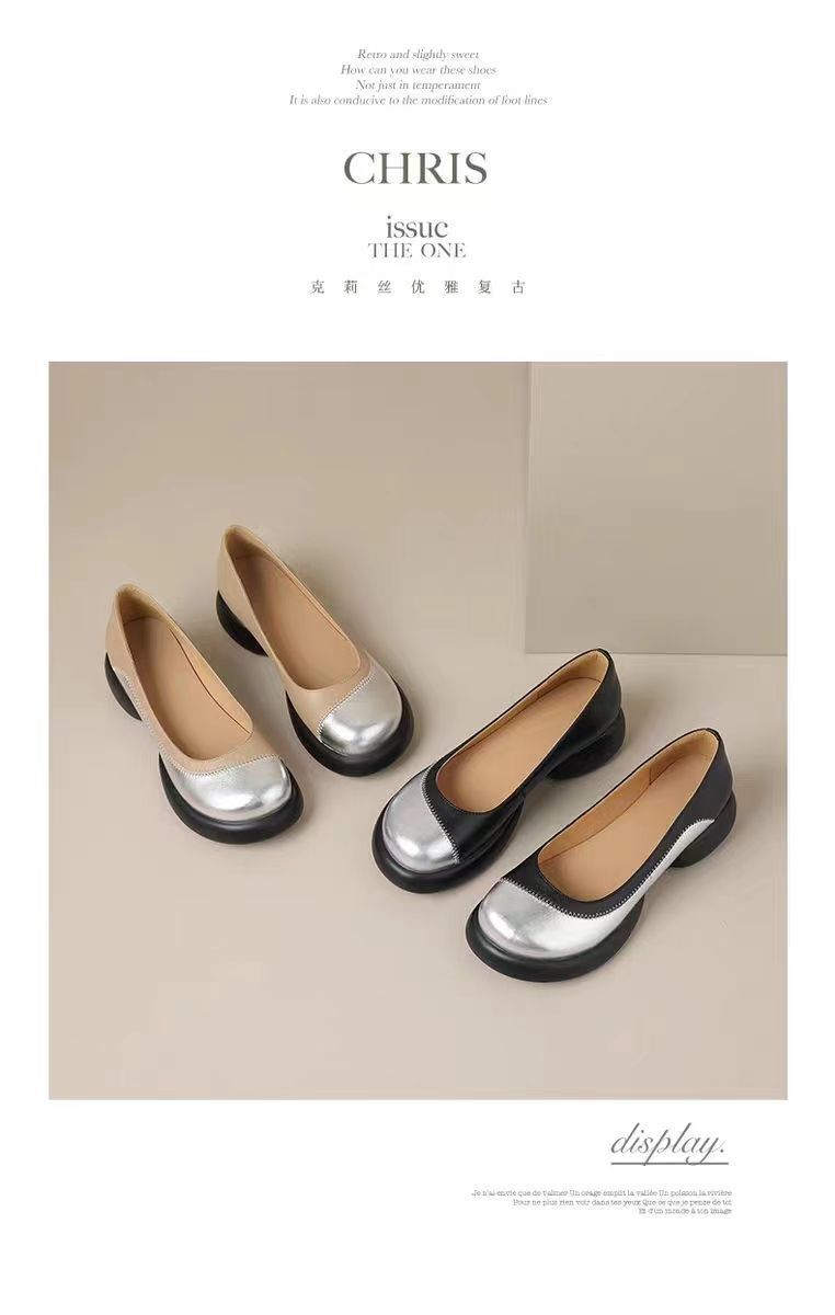 2024 새로운 스타일 향기로운 스타일 인공 가죽 라운드 헤드 컬러 매칭 얕은 입 싱글 레이어 신발 여성 레트로 스타일 캐주얼 두꺼운 바닥 두꺼운 힐 여성 신발스토어 가기