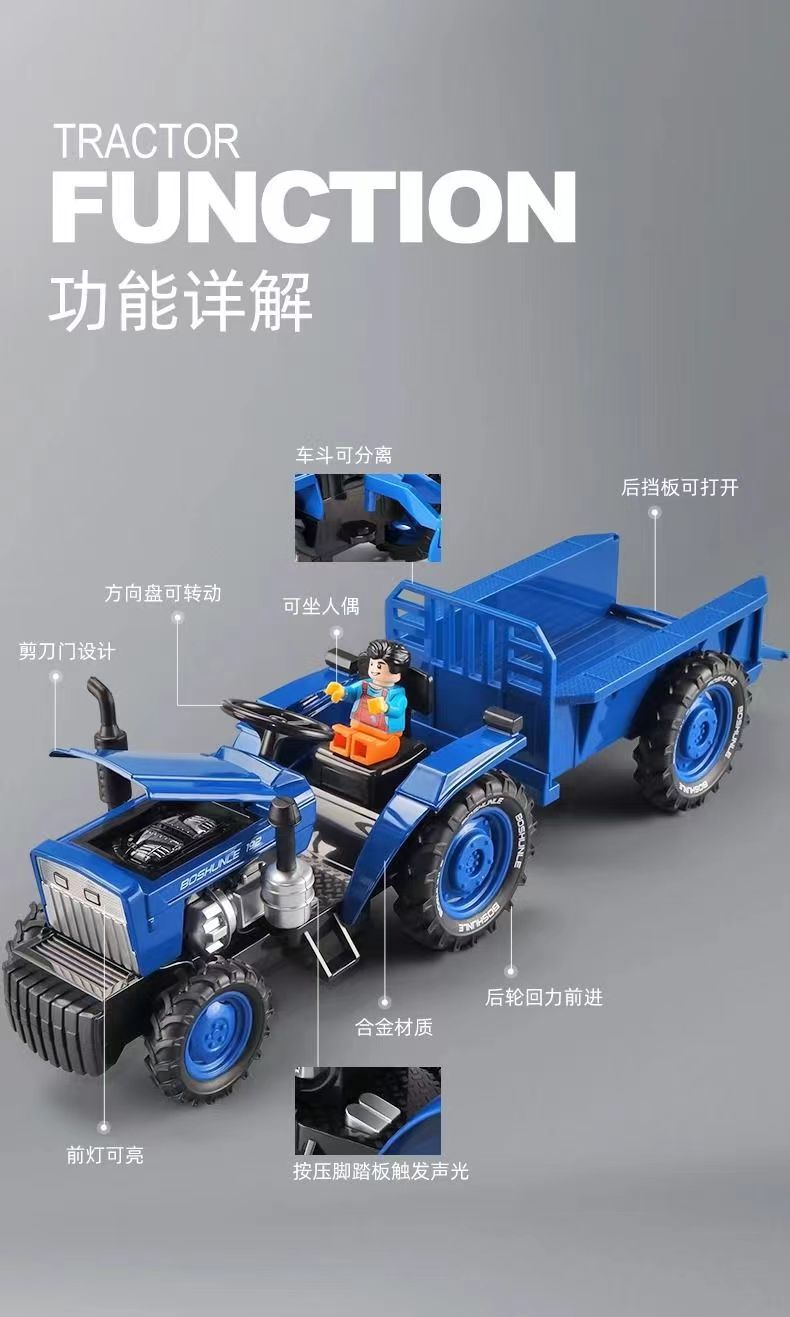 복고풍 농장 트랙터 모델 농가 자동차 세트 버킷 트랙터 운송업자 트럭 왜건 장식 장난감스토어 가기
