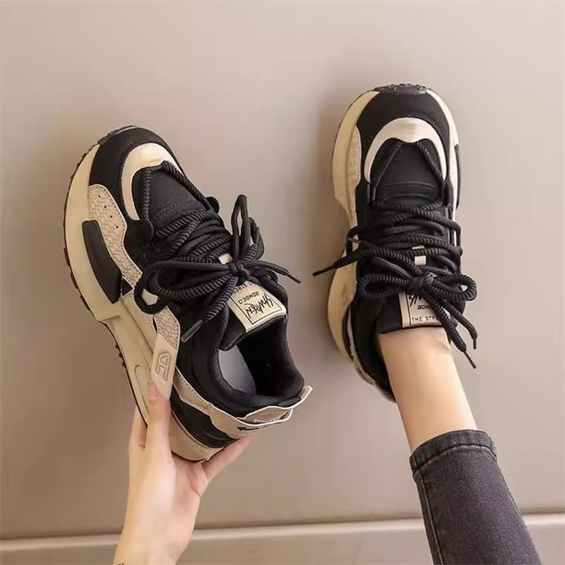 캐주얼 운동화 여성 2024 봄 새로운 두꺼운 밑창 빈티지 포레스트 검프 신발 사이버 연예인 플랫폼 토레 신발 레이스 업 여성용 신발