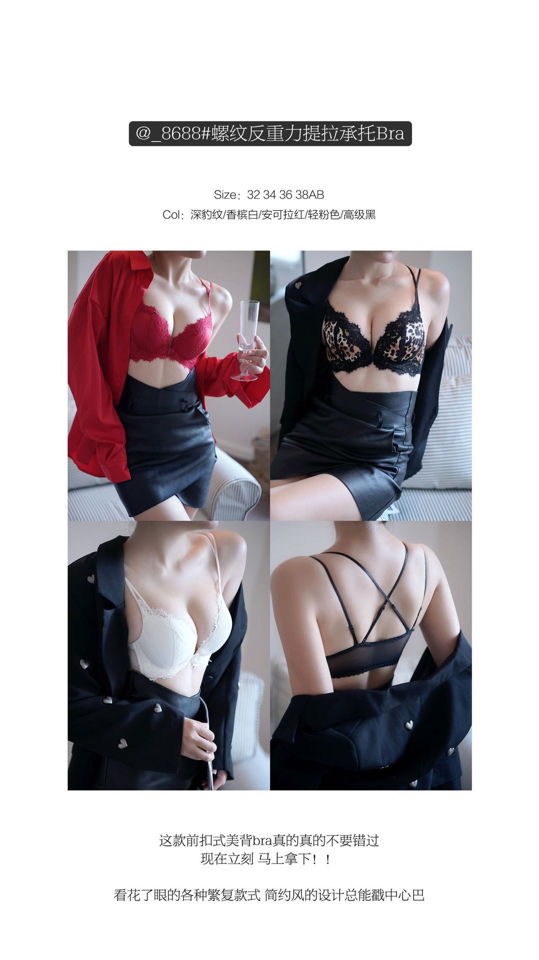 8688 섹시 레이스 얇은 벨트 프론트 버클 백 속옷 세트 스레드 링 브레이커 중간 두꺼운 작은 가슴 푸시 업 브래지어