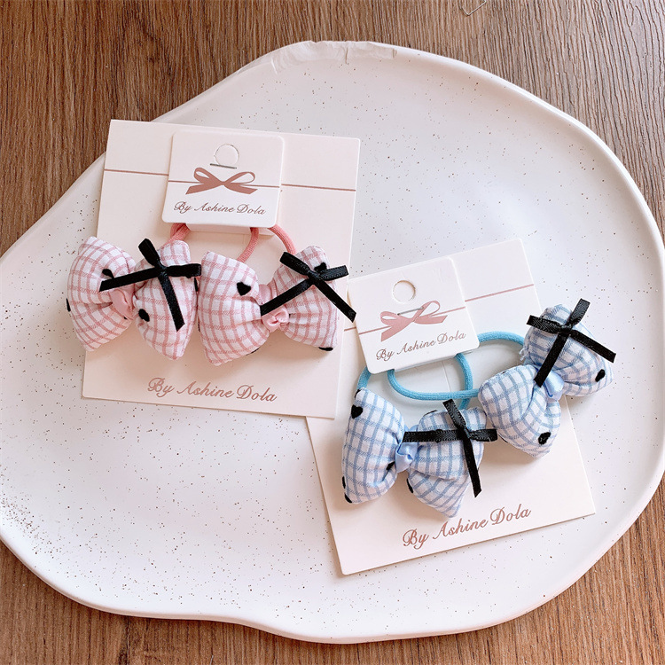봄 새로운 어린이 격자 무늬 활 머리 반지 달콤한 여자 머리 스트랩 머리 스트랩 머리 로프 아기 머리 로프 헤어 액세서리