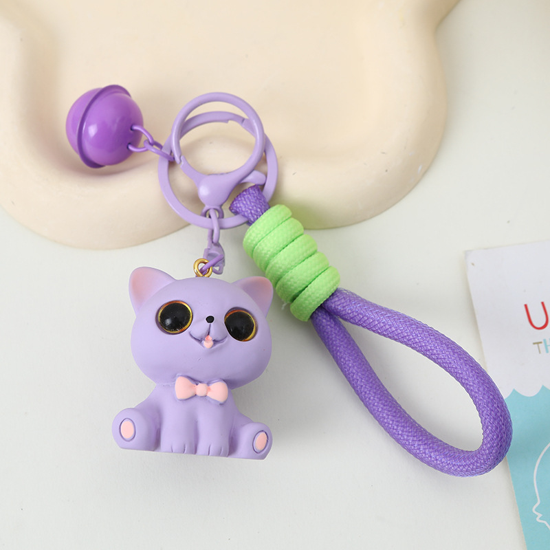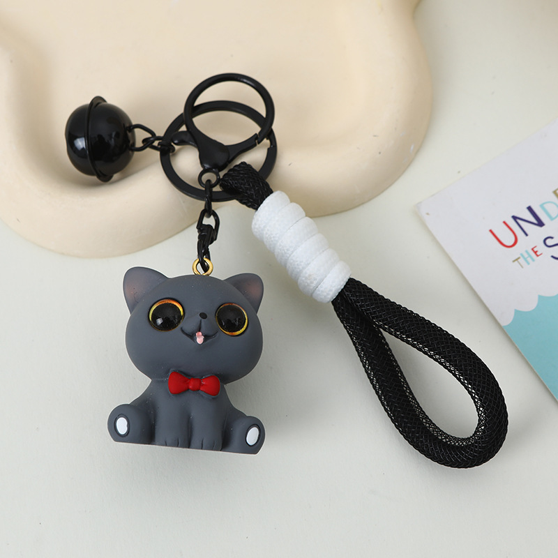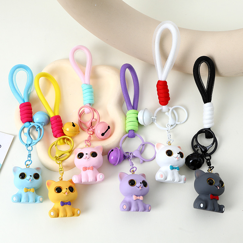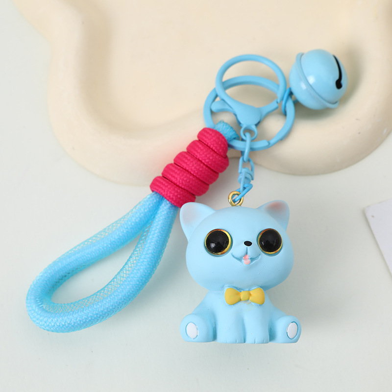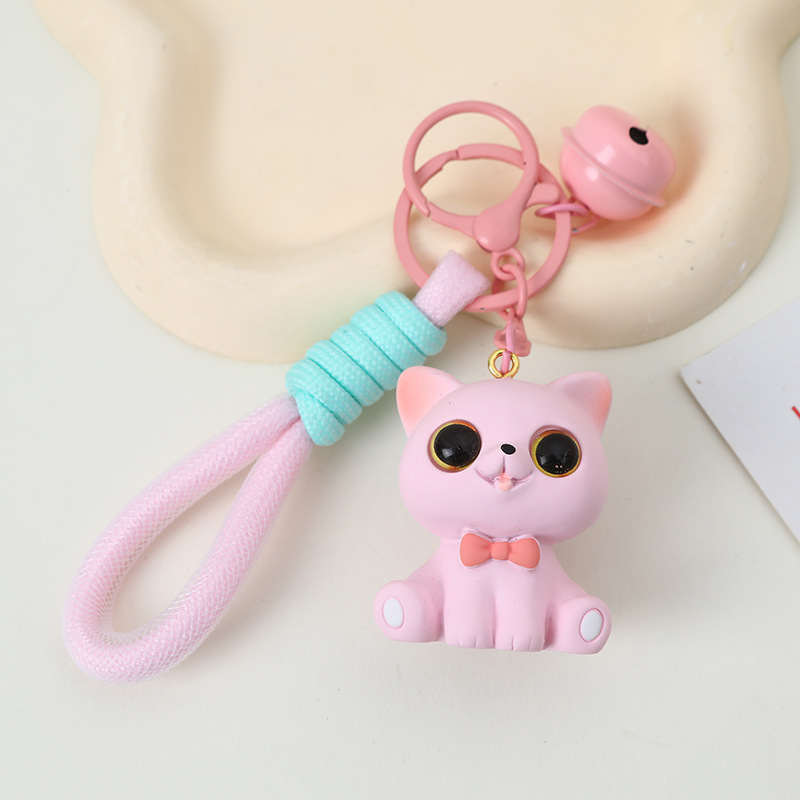 귀여운 만화 수지 고양이 자동차 키 체인 펜던트 창조적 인 소녀 심장 고양이 벨 학생 학교 가방 교수형