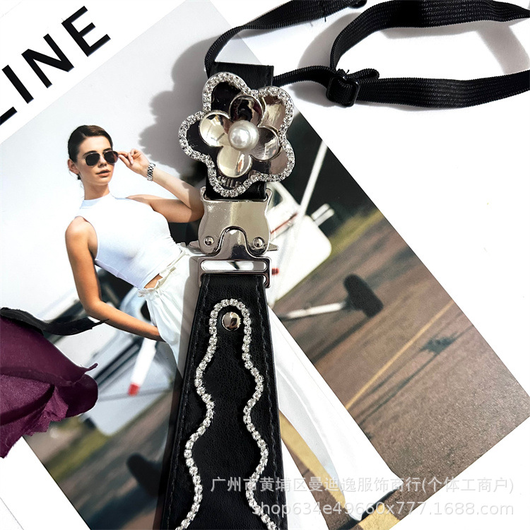 • 블랙 플라워 라인스톤 태슬 벨트 타이