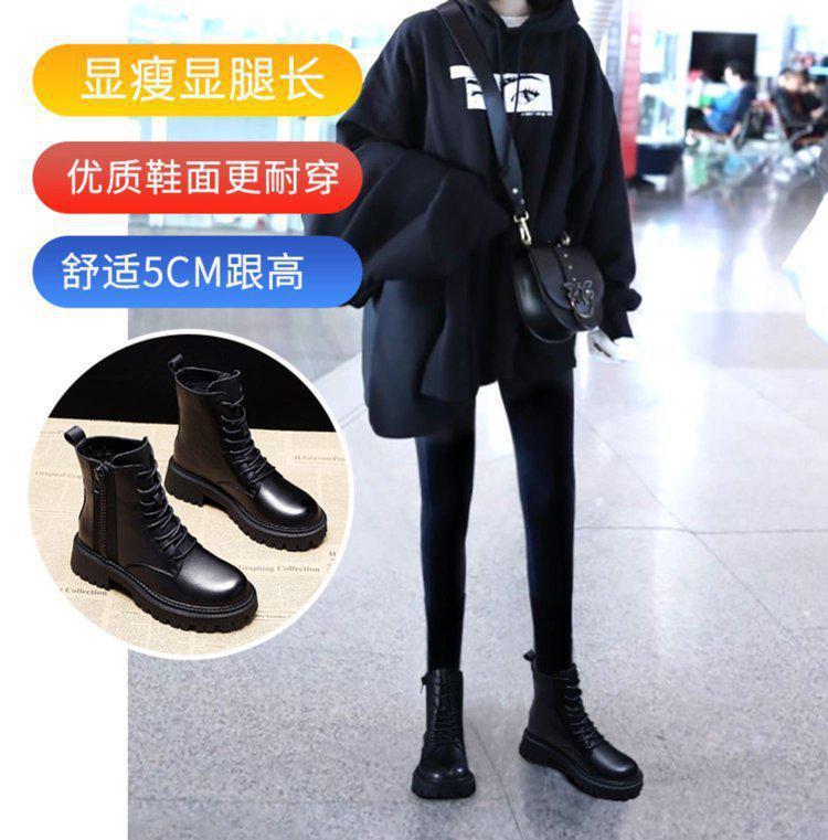 2023 새로운 가을과 겨울 따뜻한 두꺼운 마틴 부츠 여성 영국식 여성 부츠 기모 기관차 사이버 인기 소녀 발목 부츠스토어 가기