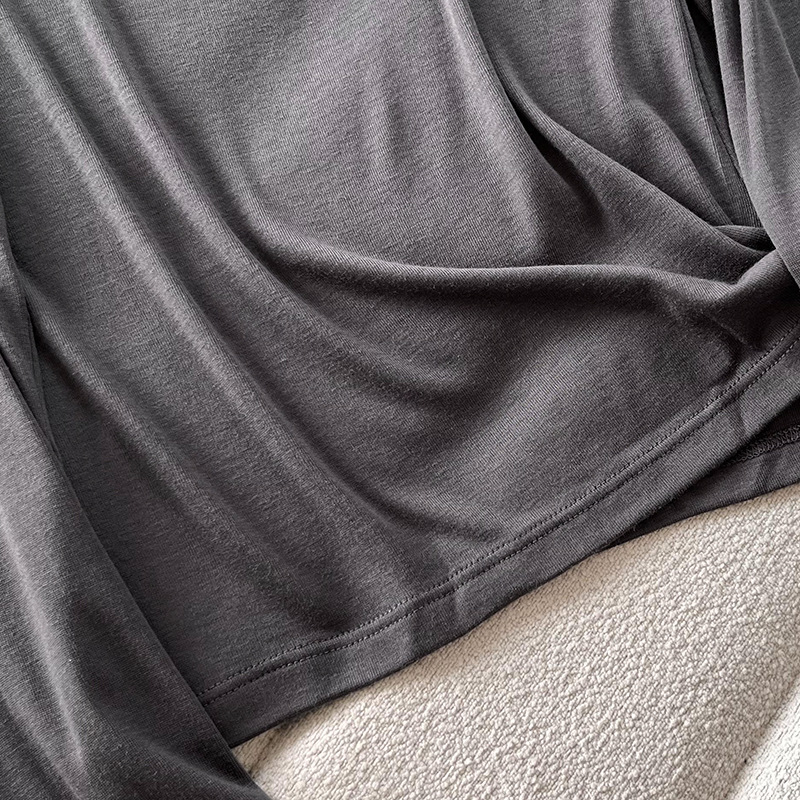 K 표준에서! 무거운 뽕나무 수 실크 진짜 si 탑 큰 둥근 목 부드러운 왁스 같은 슬림 바닥 긴 소매 티셔츠