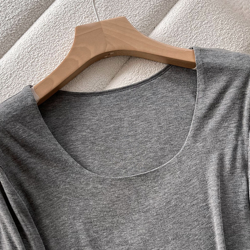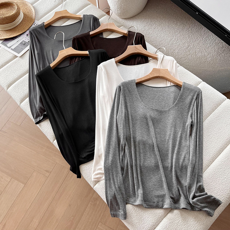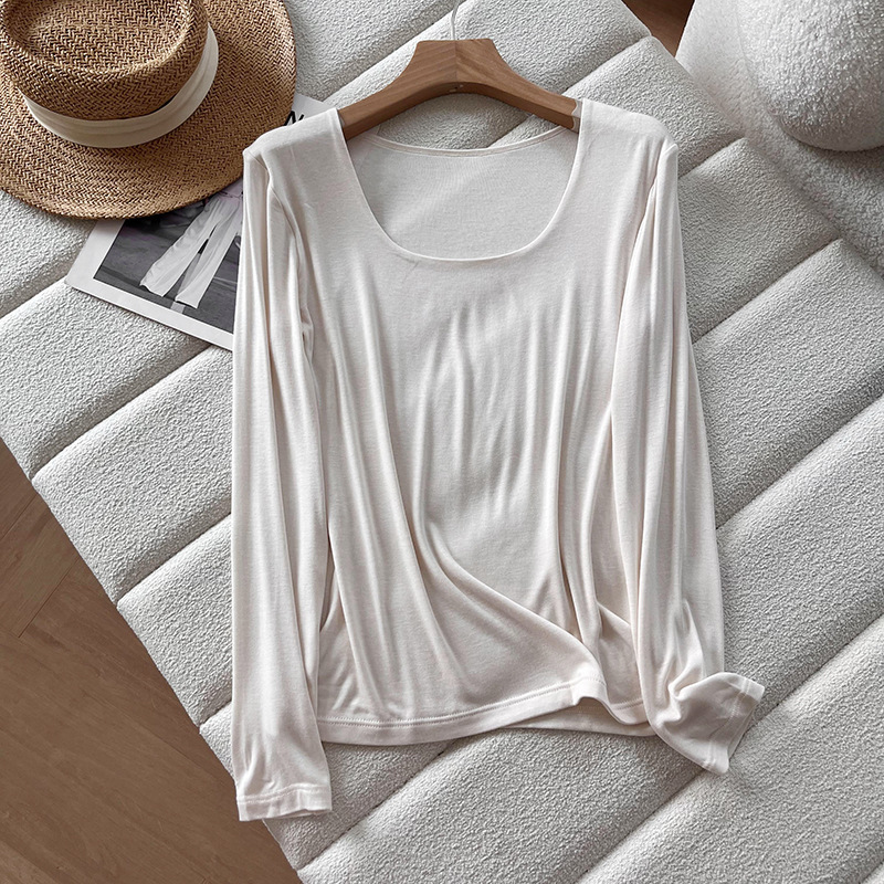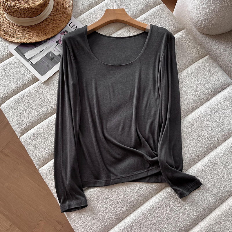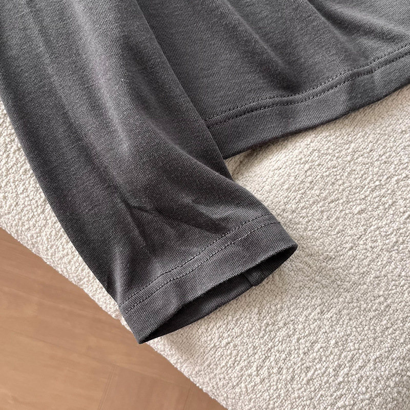 K 표준에서! 무거운 뽕나무 수 실크 진짜 si 탑 큰 둥근 목 부드러운 왁스 같은 슬림 바닥 긴 소매 티셔츠스토어 가기