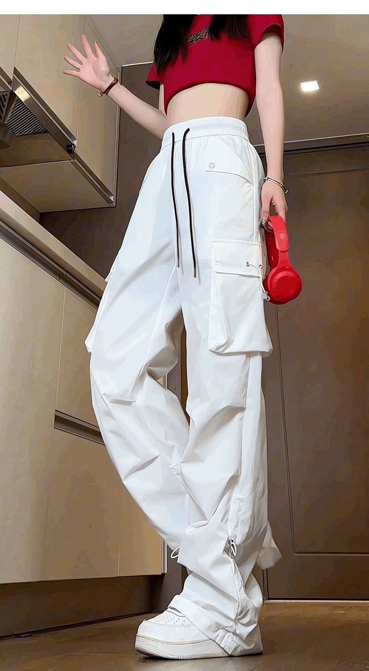 블랙 오버홀 여성의 2024 새로운 스타일 작은 느슨한 방풍 방수 가을/겨울 플러스 사이즈 러시 팬츠 남성용