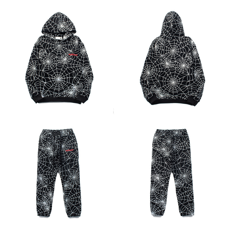2025 가을과 겨울 새로운 Sp5der 스파이더 웹 전체 인쇄 패턴 까마귀 남성과 여성의 국경 간 뜨거운 판매