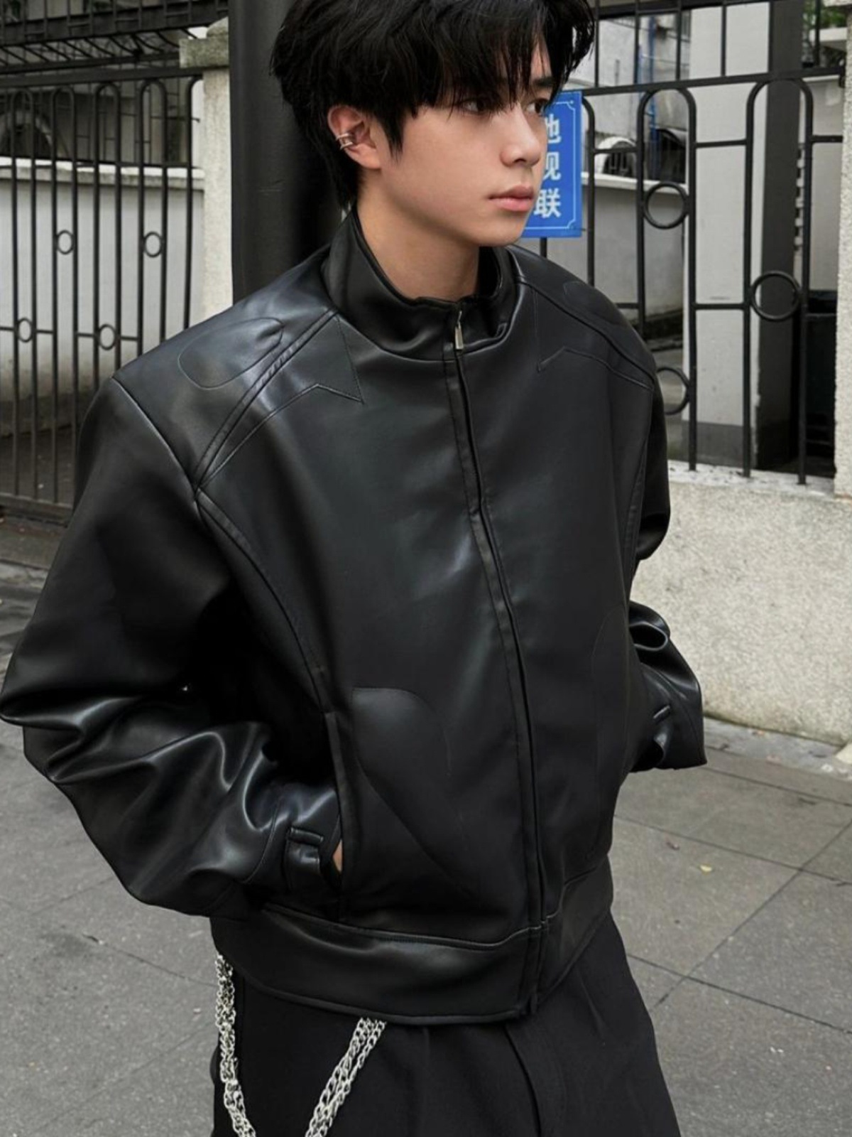 아메리칸 스타일 레트로 3 차원 해체 가죽 자켓 남성용 세련된 클렌핏 프로필 바이커 짧은 재킷