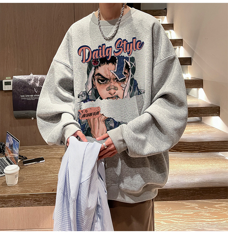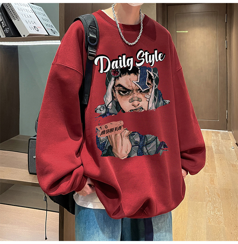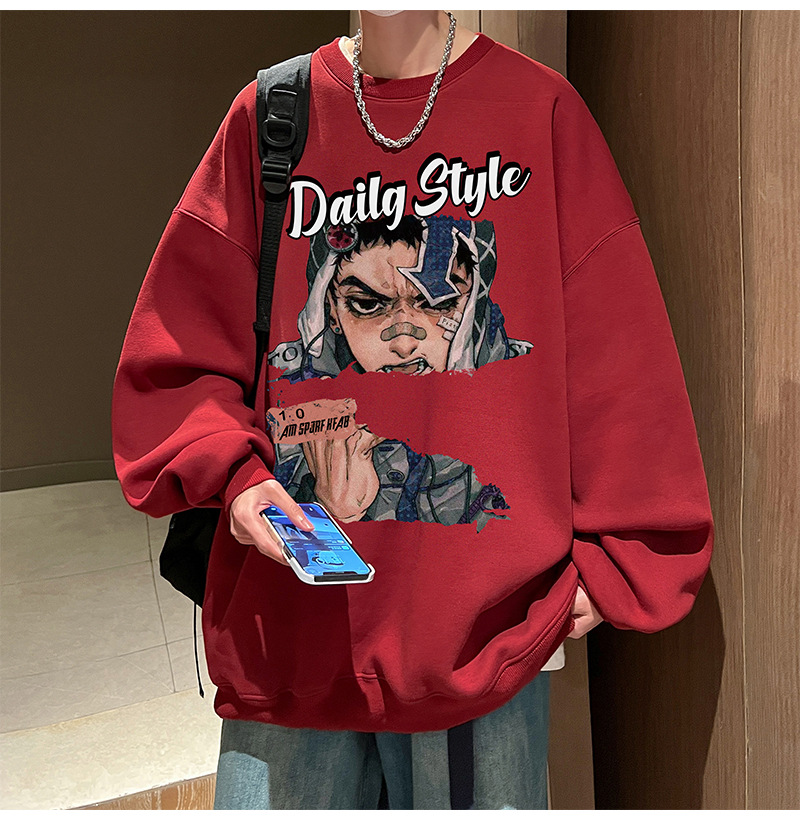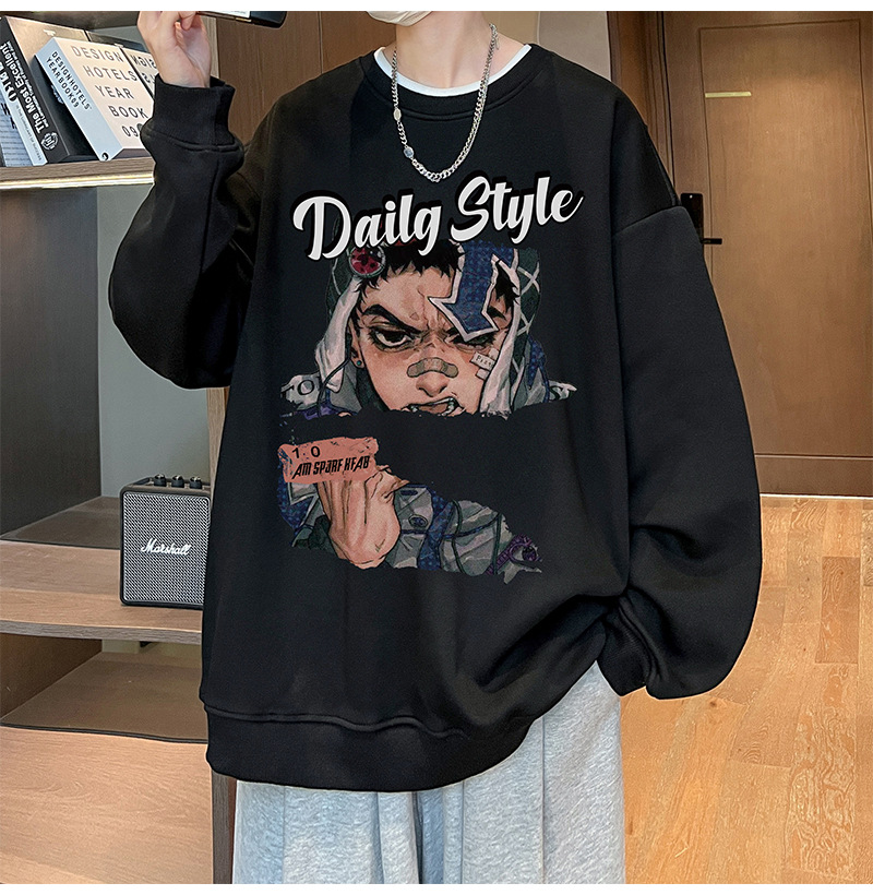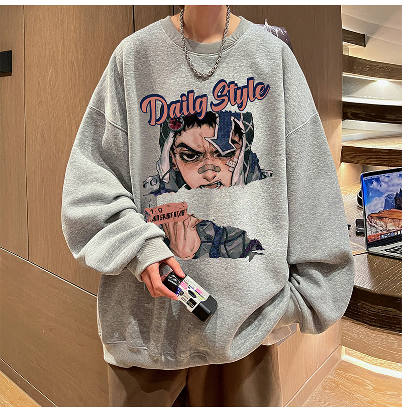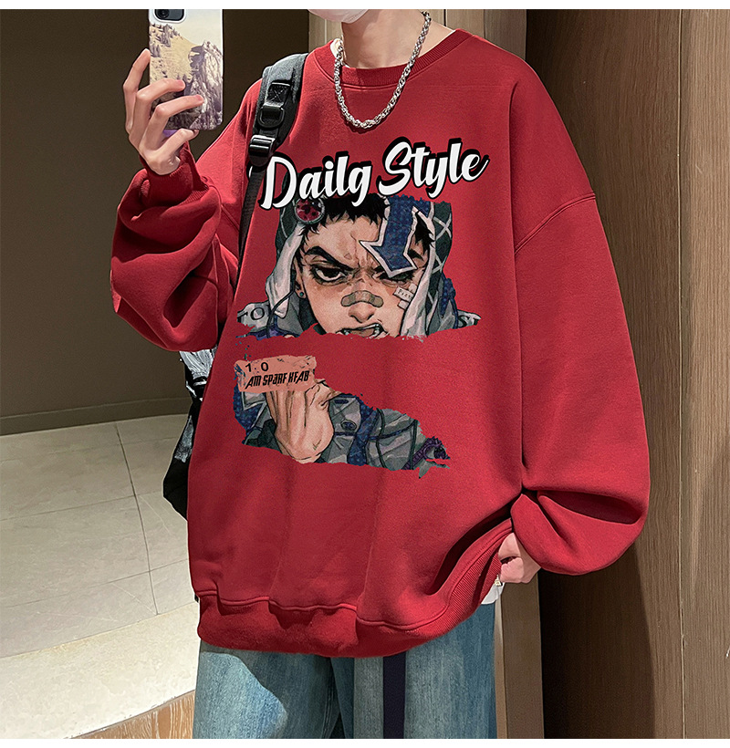 아메리칸 스타일 헤비 스웨트 셔츠 남성 가을 패션 브랜드 일본 애니메이션 인쇄 플러스 사이즈 인즈 패셔너블 올 매치 라운드 넥 재킷