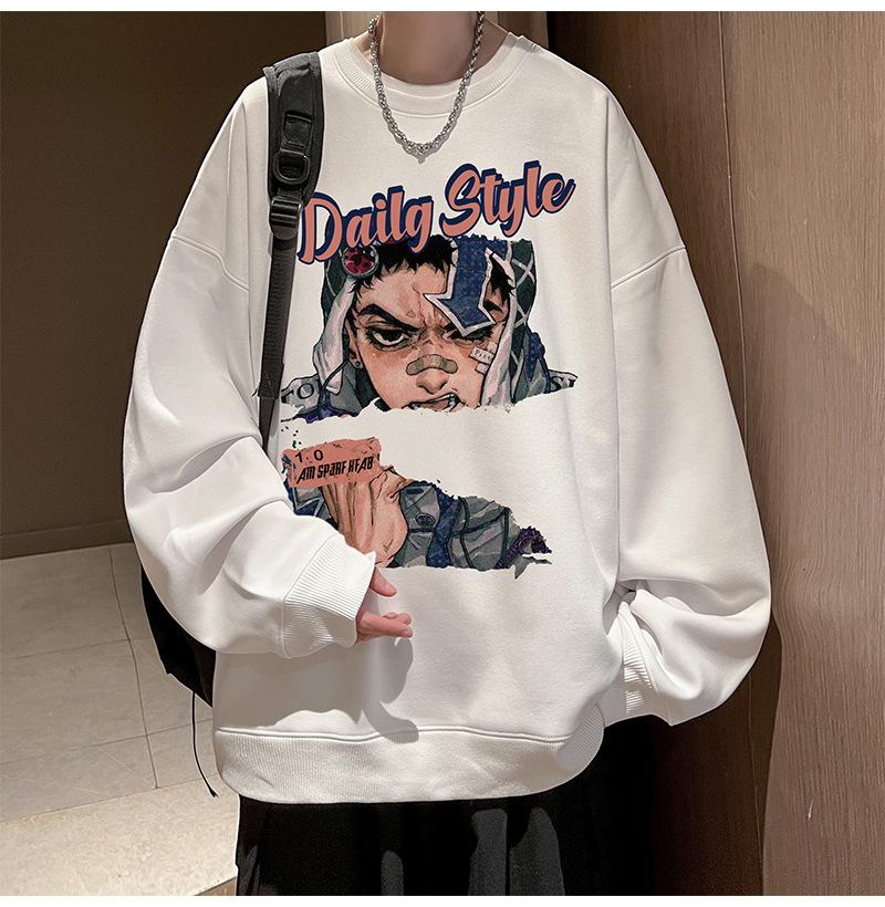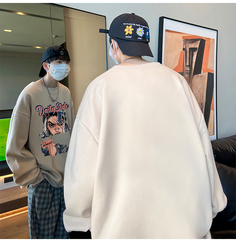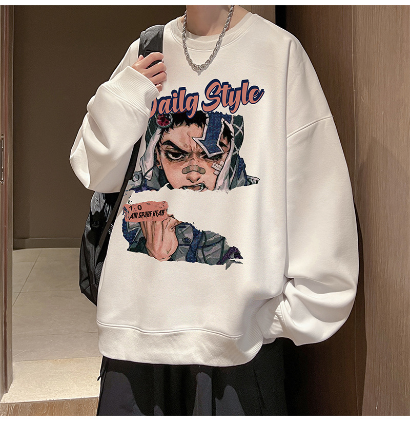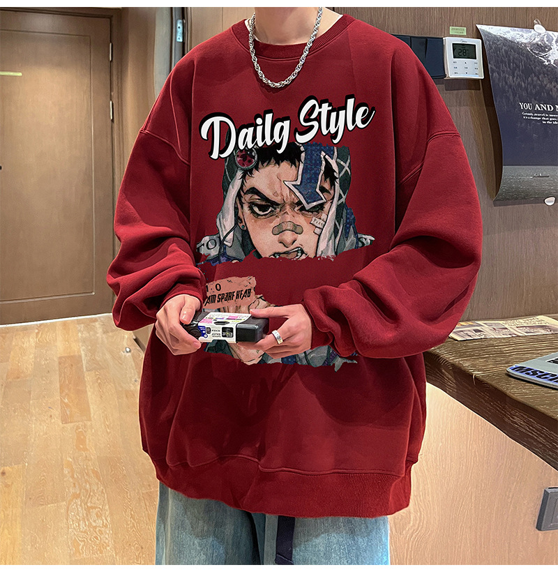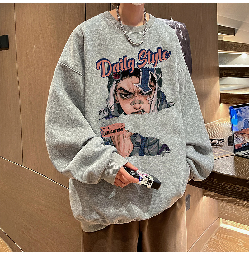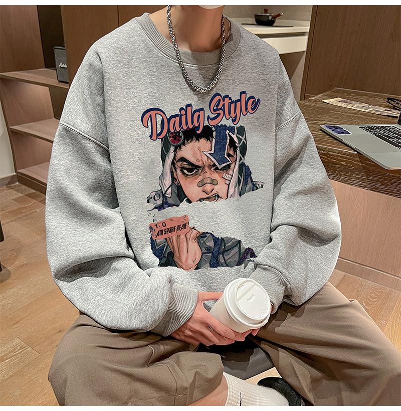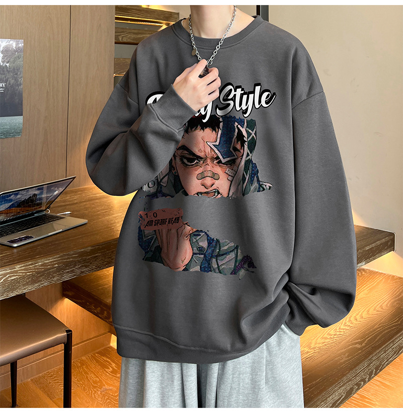 아메리칸 스타일 헤비 스웨트 셔츠 남성 가을 패션 브랜드 일본 애니메이션 인쇄 플러스 사이즈 인즈 패셔너블 올 매치 라운드 넥 재킷