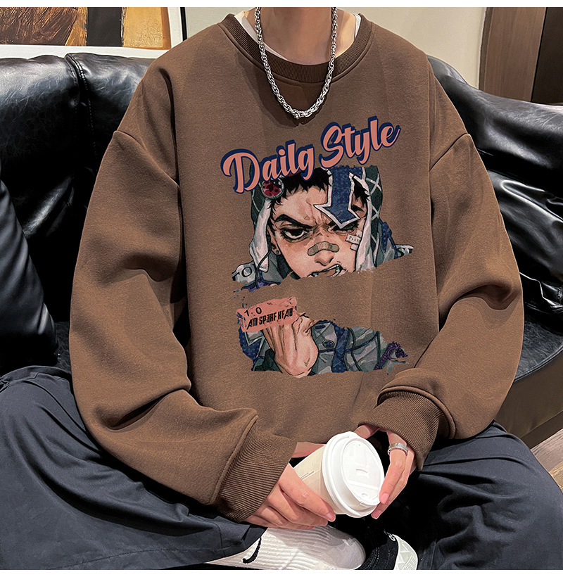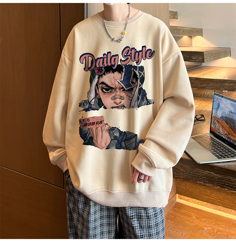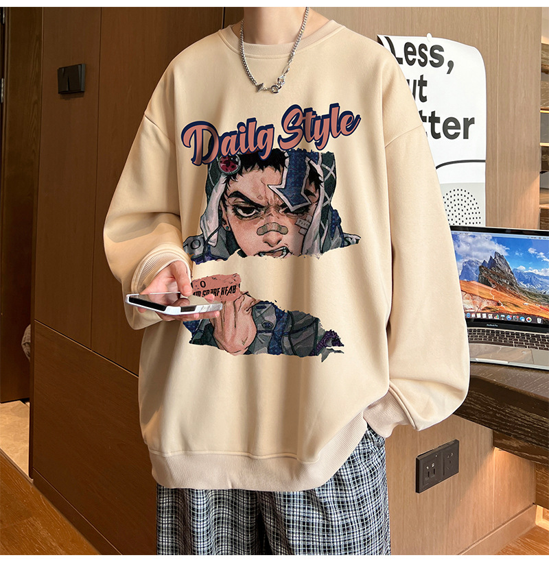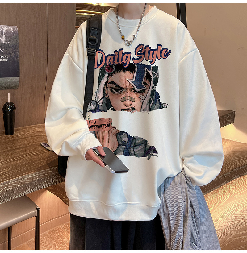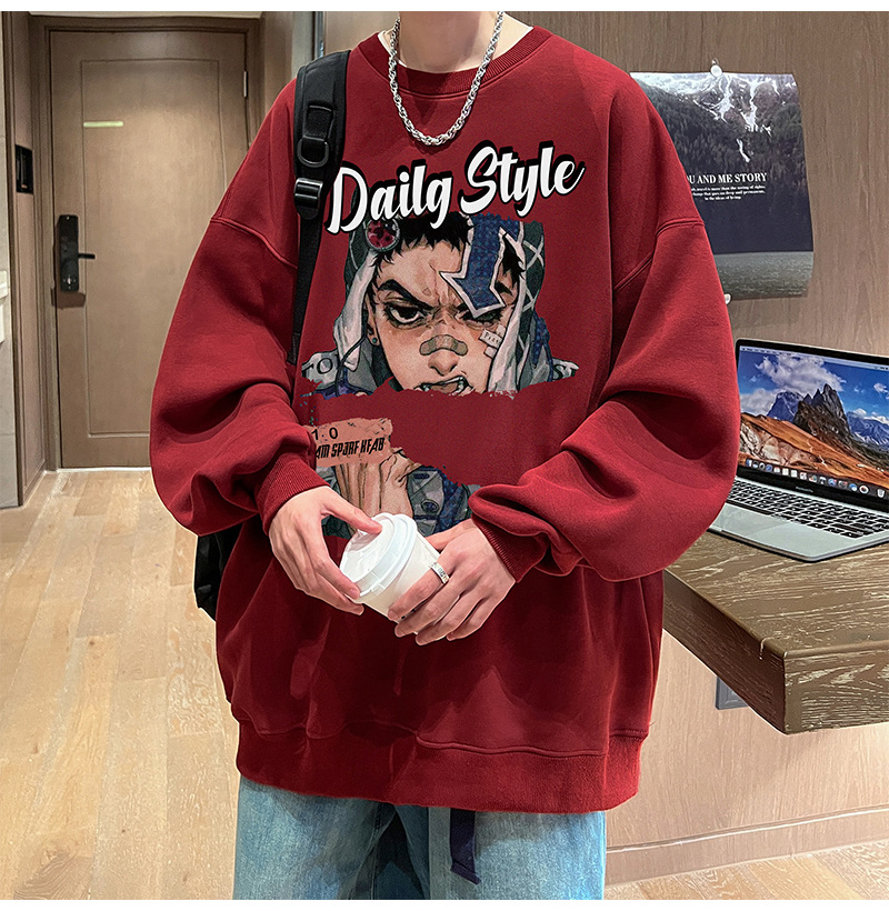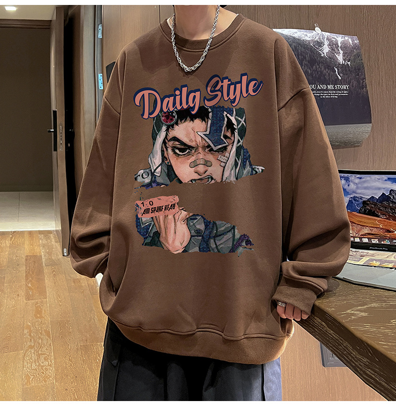 아메리칸 스타일 헤비 스웨트 셔츠 남성 가을 패션 브랜드 일본 애니메이션 인쇄 플러스 사이즈 인즈 패셔너블 올 매치 라운드 넥 재킷