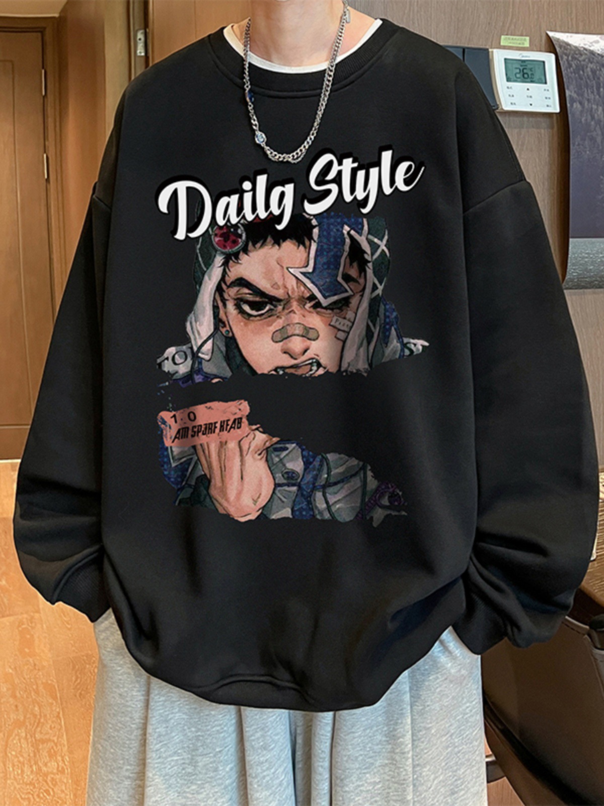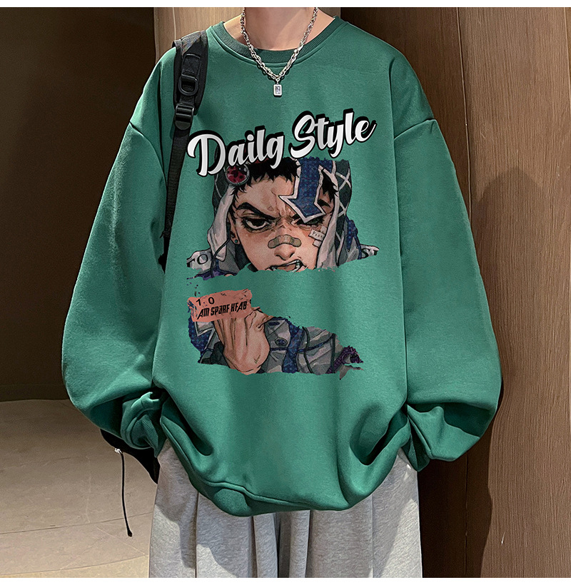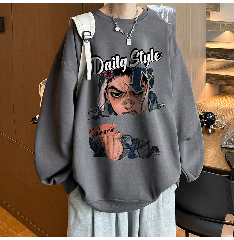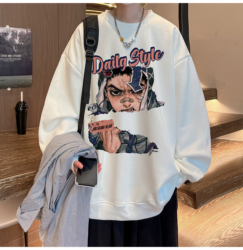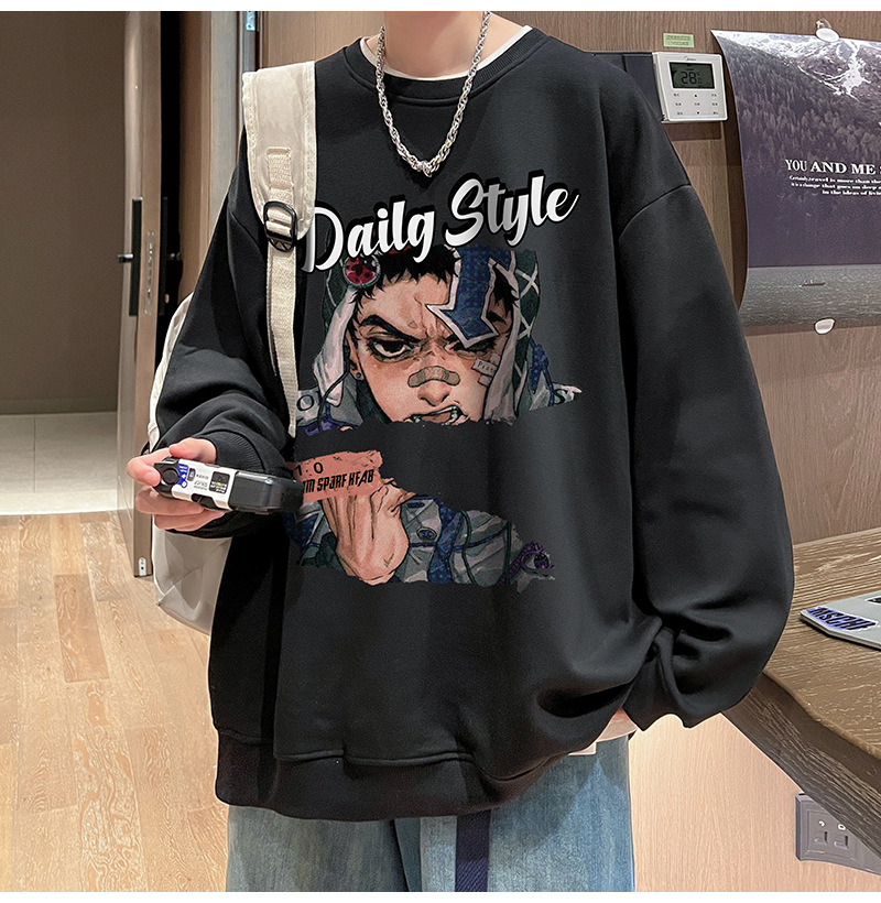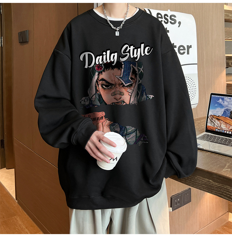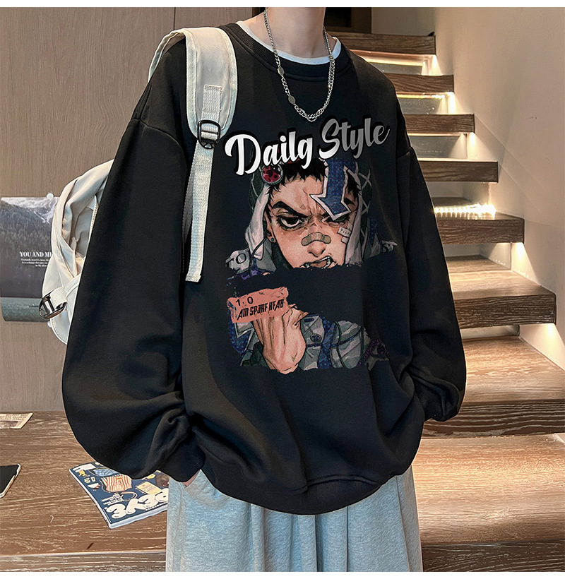 아메리칸 스타일 헤비 스웨트 셔츠 남성 가을 패션 브랜드 일본 애니메이션 인쇄 플러스 사이즈 인즈 패셔너블 올 매치 라운드 넥 재킷스토어 가기