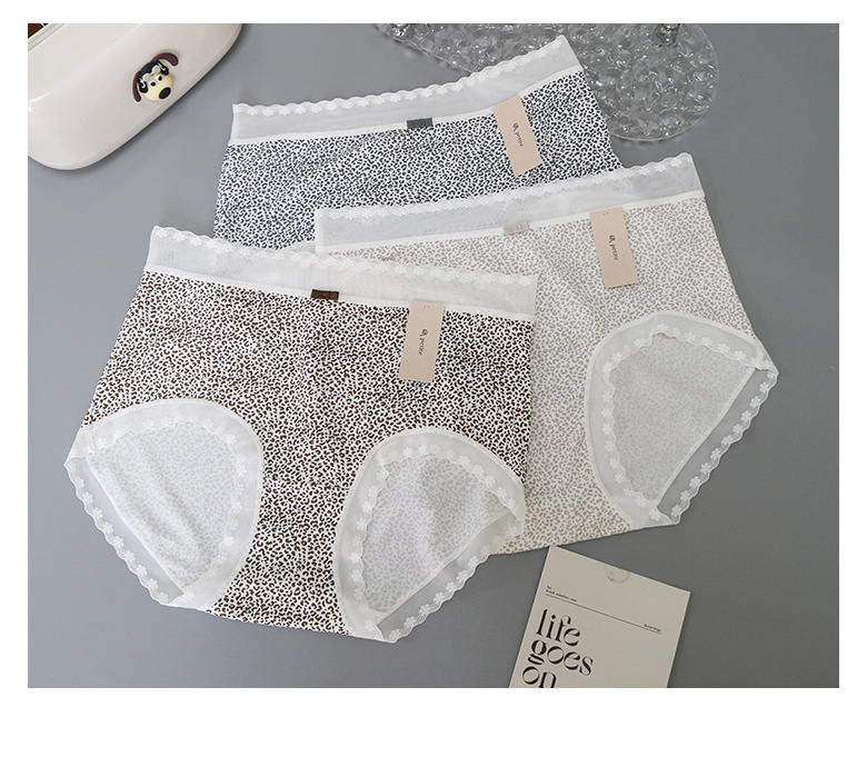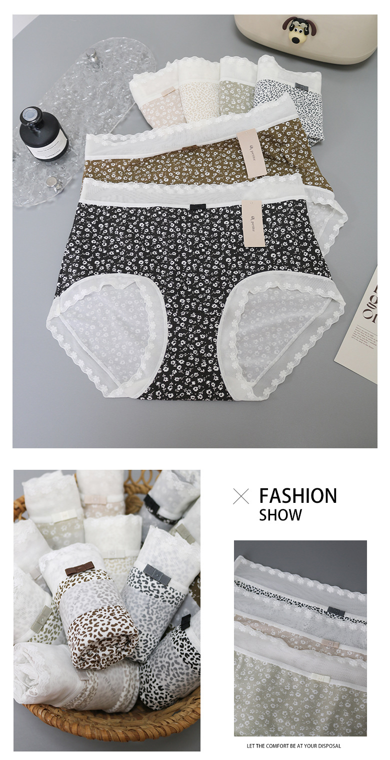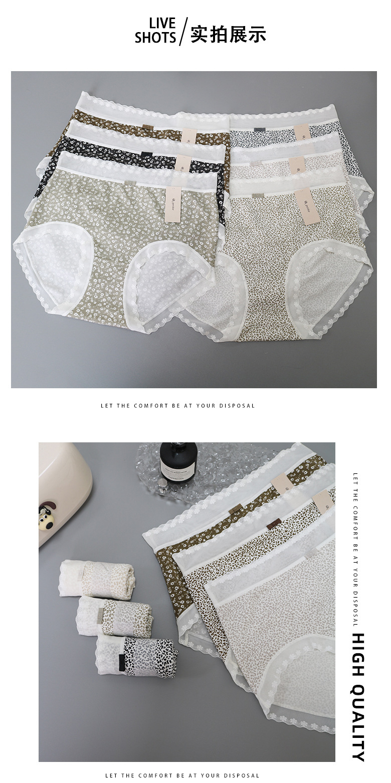 귀여운 꽃 레오파드 무늬 우아한 색상 여성의 중간 허리 브리프 면화 하단 편안한 통기성 피부 친화적 인 팬티스토어 가기