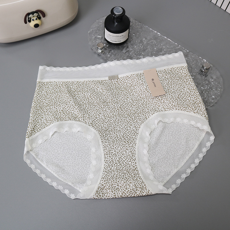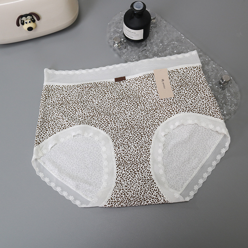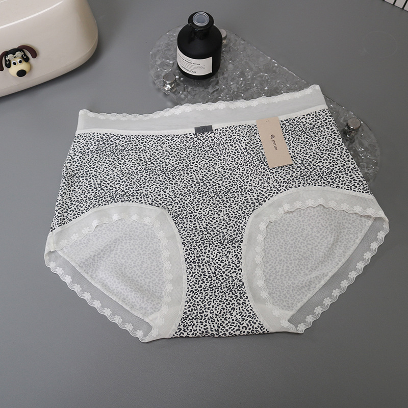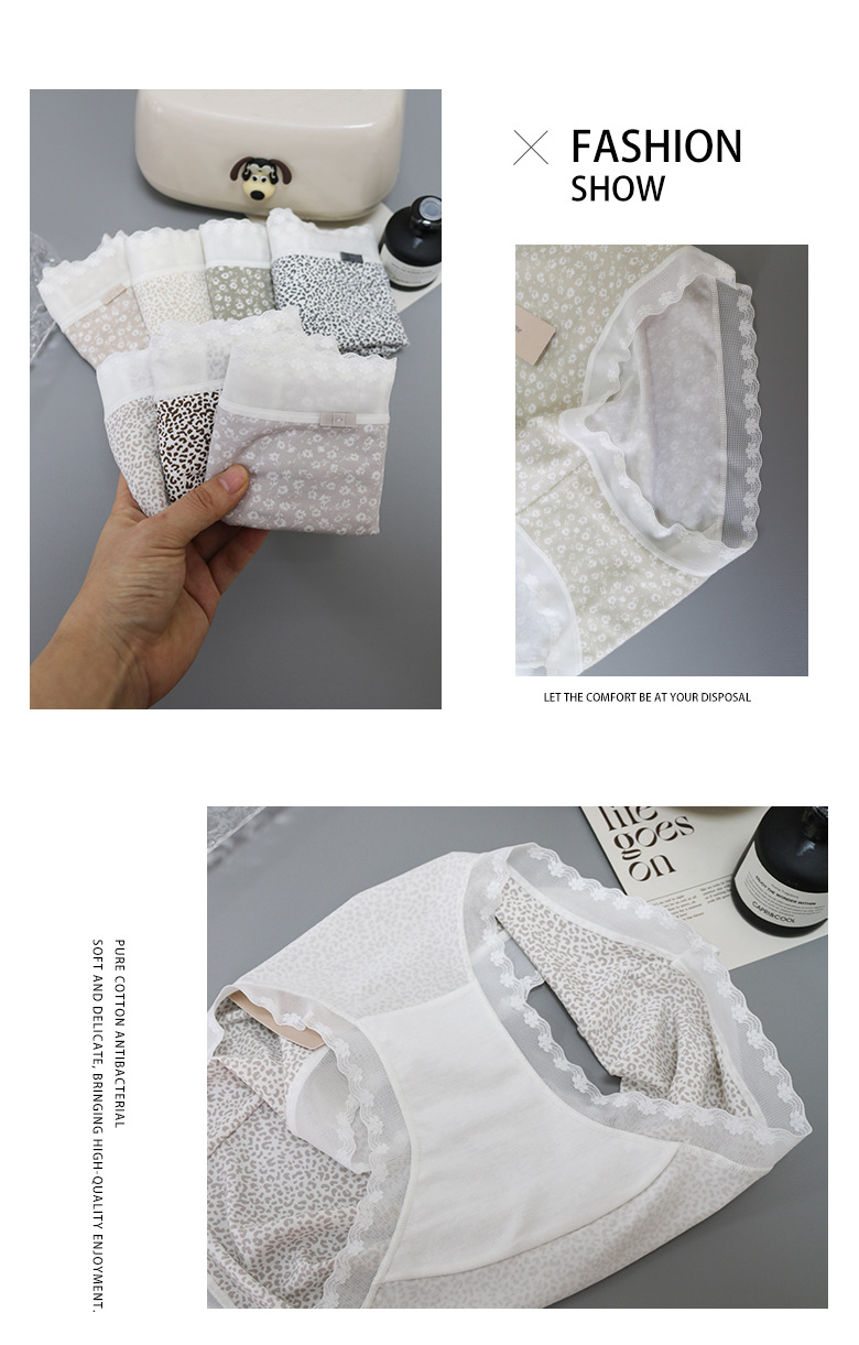 귀여운 꽃 레오파드 무늬 우아한 색상 여성의 중간 허리 브리프 면화 하단 편안한 통기성 피부 친화적 인 팬티
