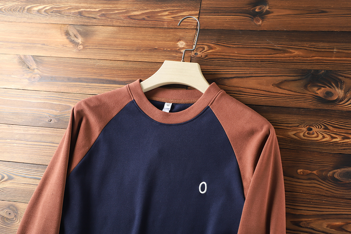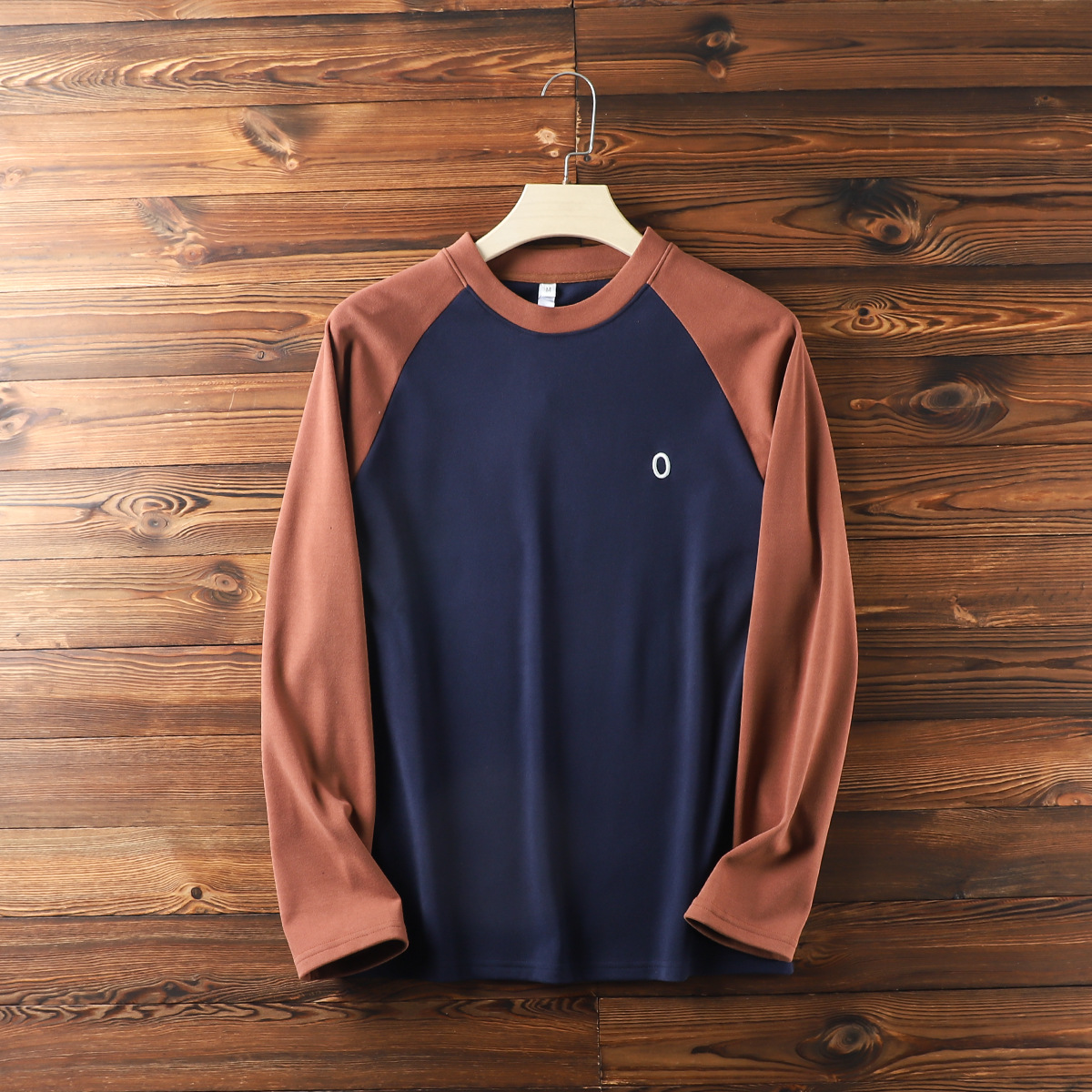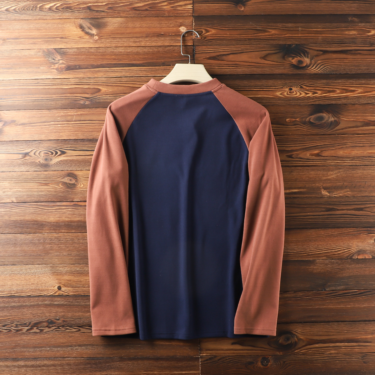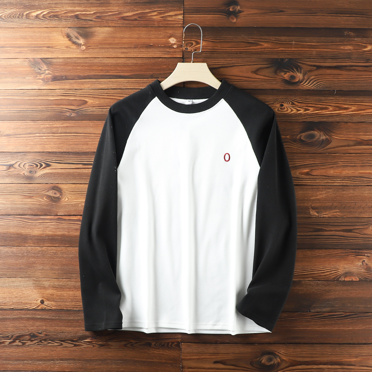 일본 복고풍 ~ 양면 독일 벨벳 남녀 라글란 소매 대비 자수 따뜻한 둥근 목 긴소매 티셔츠베이스 셔츠 조수