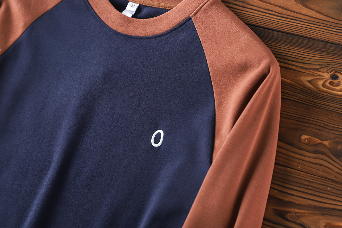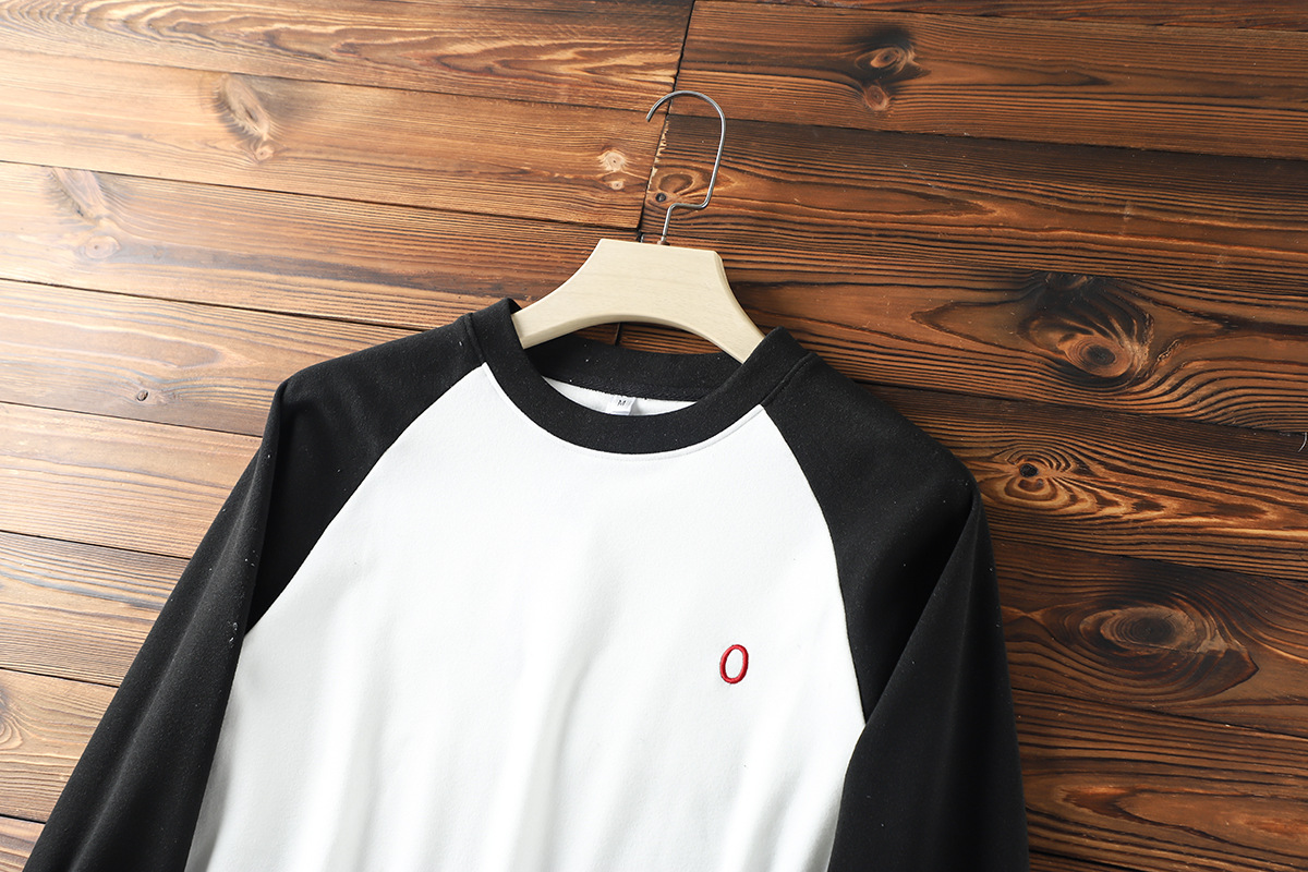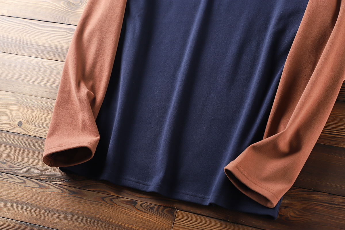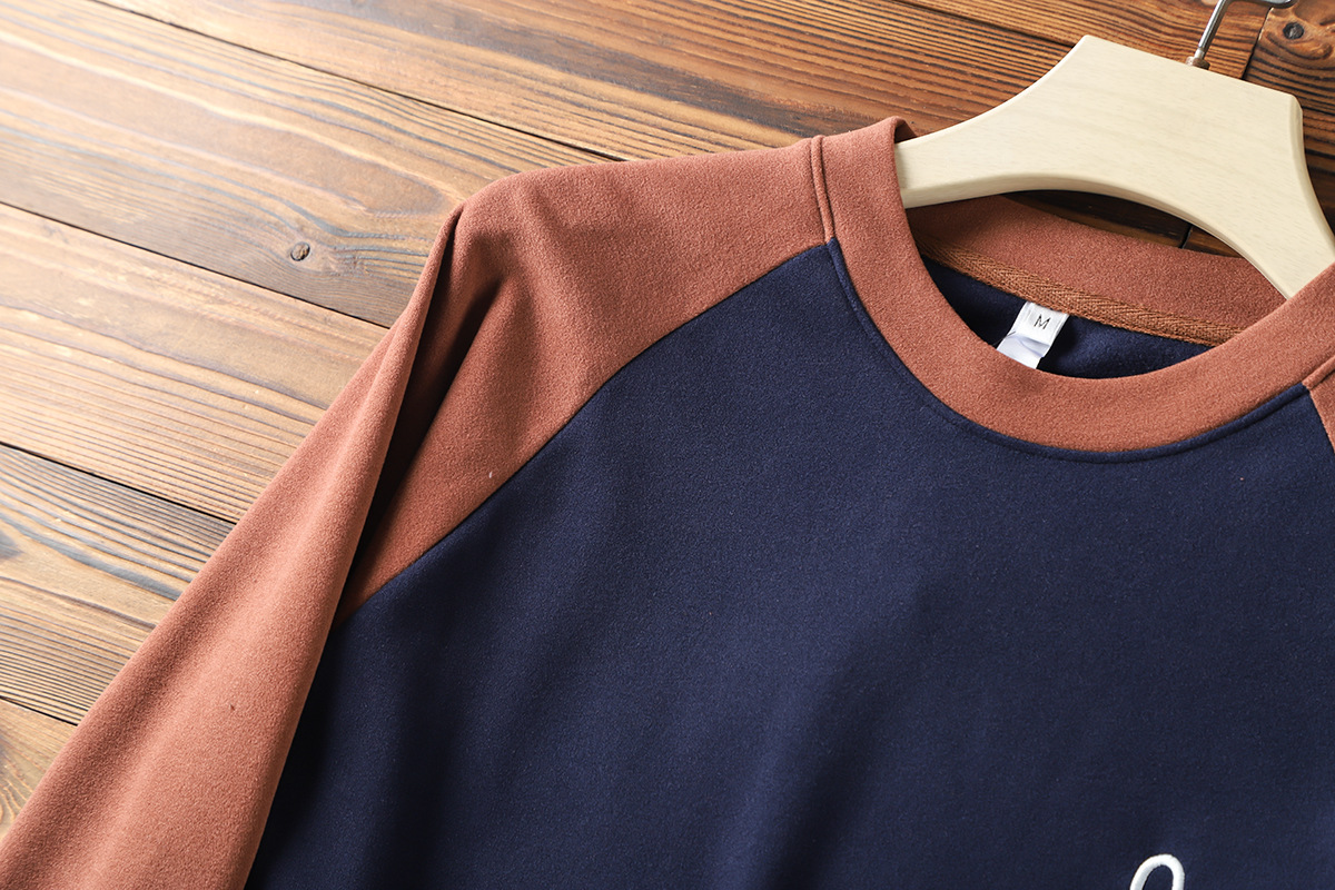 일본 복고풍 ~ 양면 독일 벨벳 남녀 라글란 소매 대비 자수 따뜻한 둥근 목 긴소매 티셔츠베이스 셔츠 조수