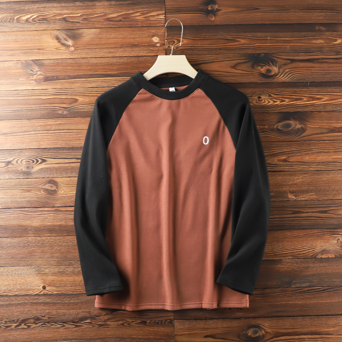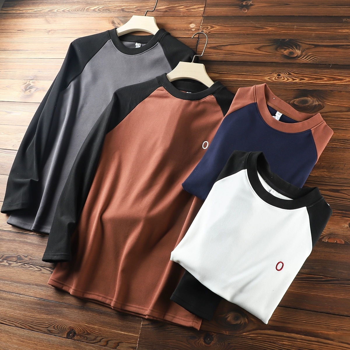 일본 복고풍 ~ 양면 독일 벨벳 남녀 라글란 소매 대비 자수 따뜻한 둥근 목 긴소매 티셔츠베이스 셔츠 조수스토어 가기