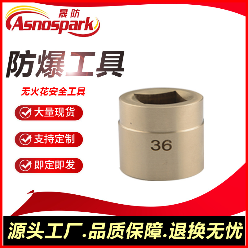 【产品名称】:防爆套筒以铍青铜和铝青铜为原料,铍青铜合金、铝青铜合金在撞击或磨擦时不发生火花,是易爆、易燃、强磁及腐蚀性场合下使用的理想工具。