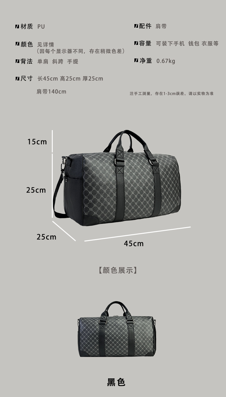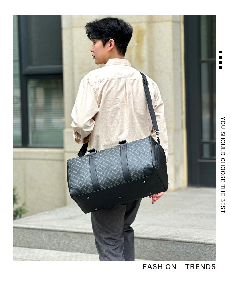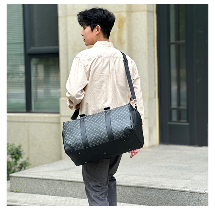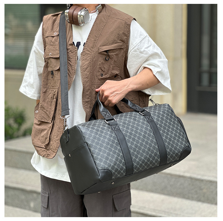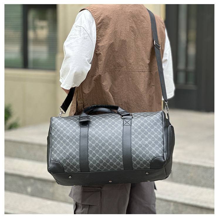 새로운 PU 격자 무늬 여행 가방 남자의 휴대용 대용량 여행 저장 가방 여행 어깨 크로스 바디 가방 체육관 가방