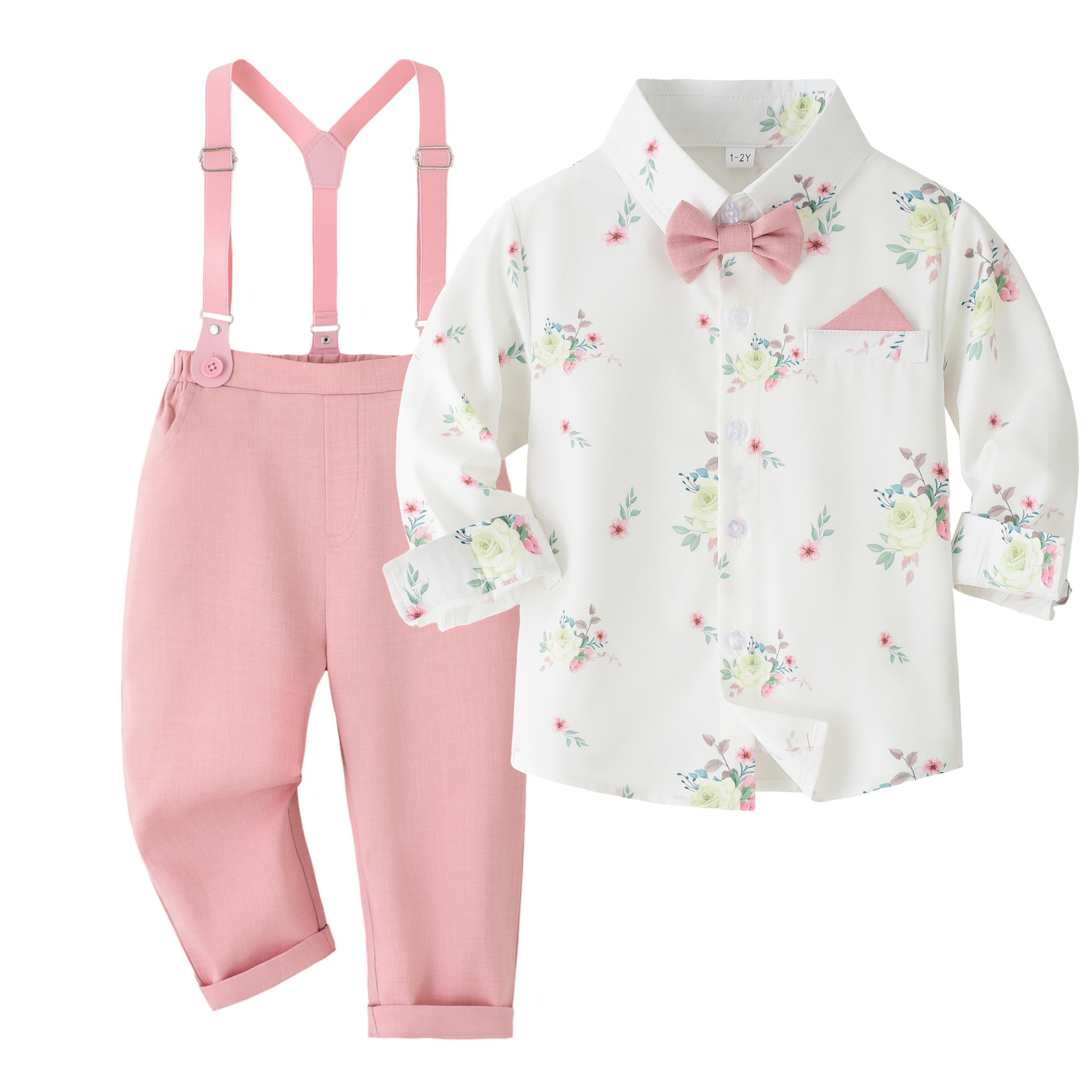 새로운 어린이 봄과 가을 유럽과 미국식 프린트 긴 소매 셔츠 스트랩 세트 소년의 잘 생긴 한 살짜리 연회 원피스