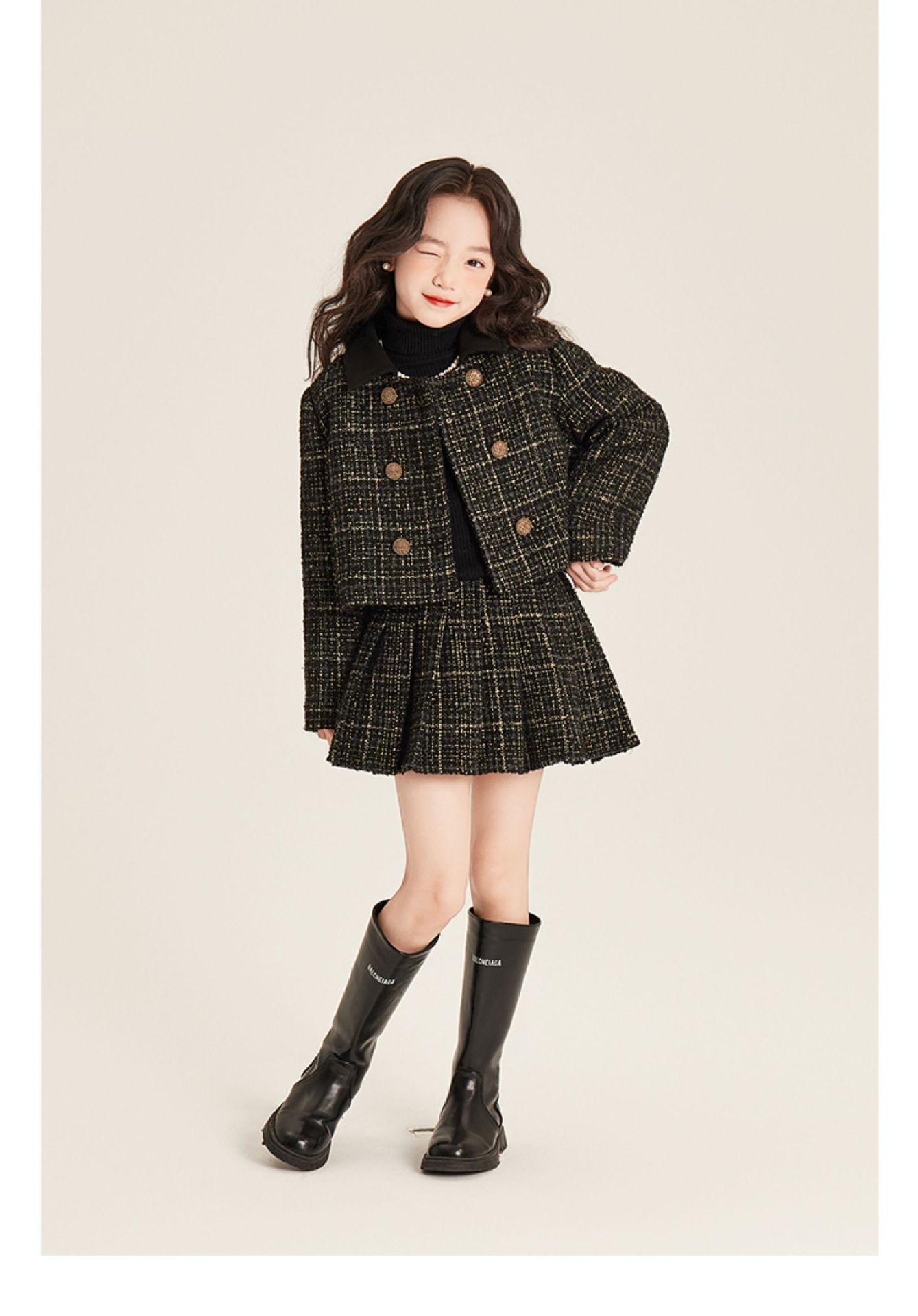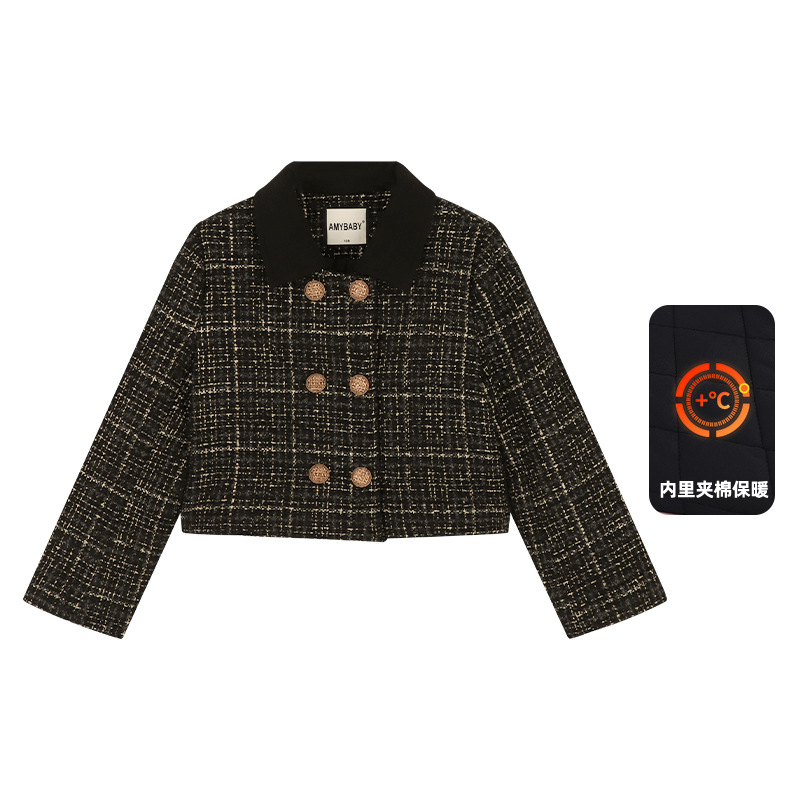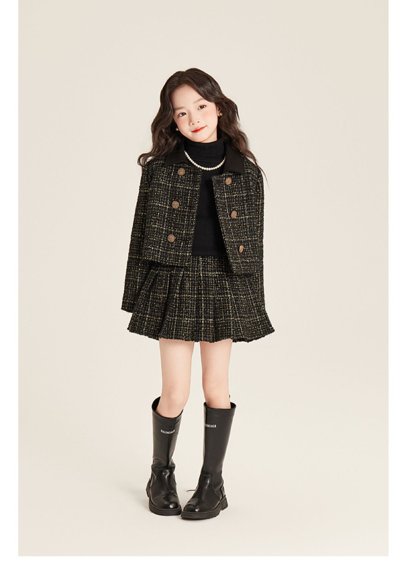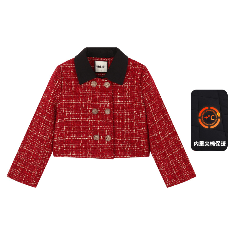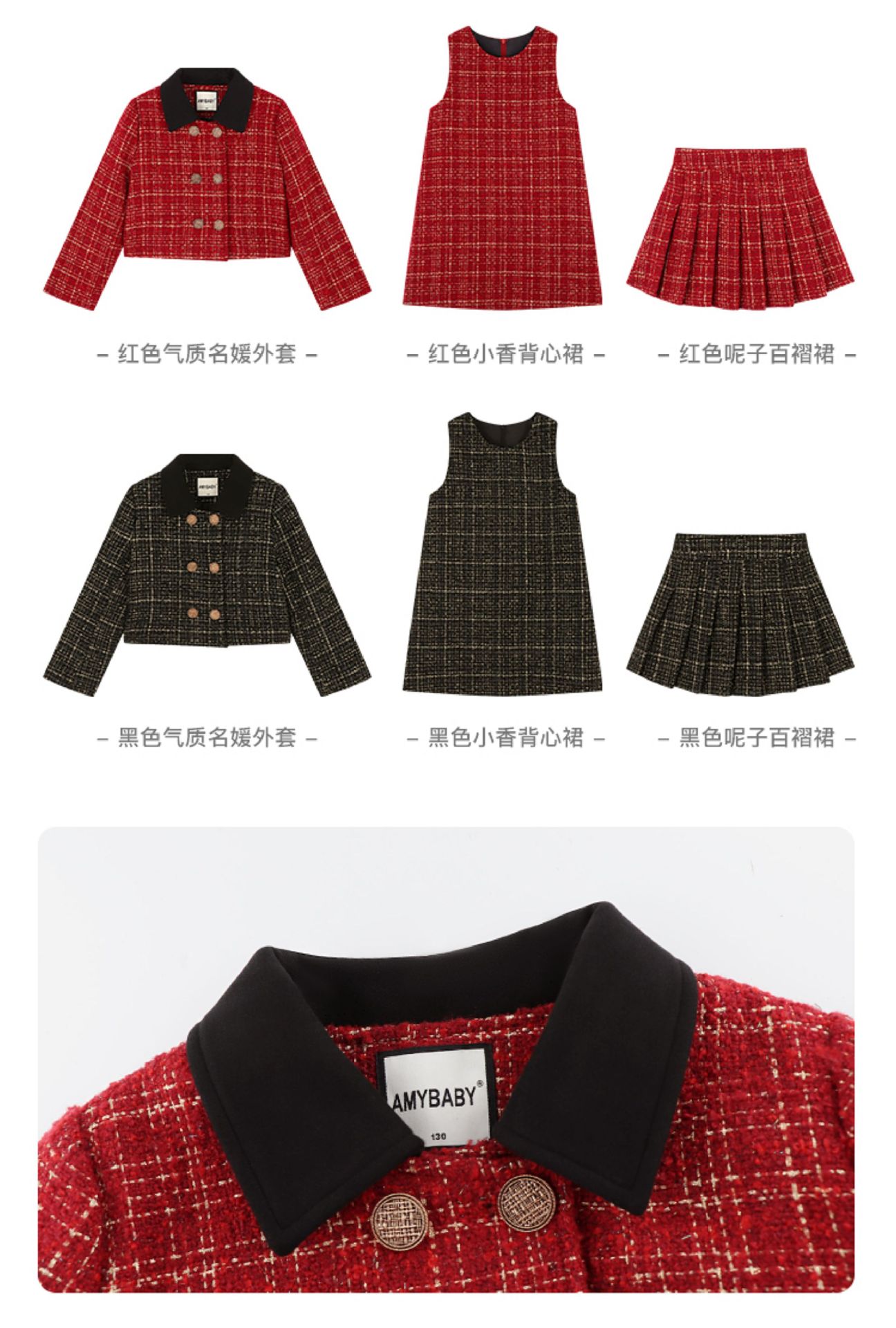 Amybaby 소녀 세트 겨울 2024 새로운 패션 작은 향기로운 민소매 둥근 목 조끼 스커트 주름 치마 코트