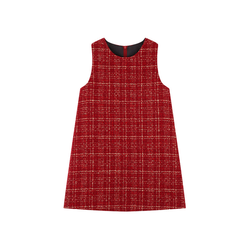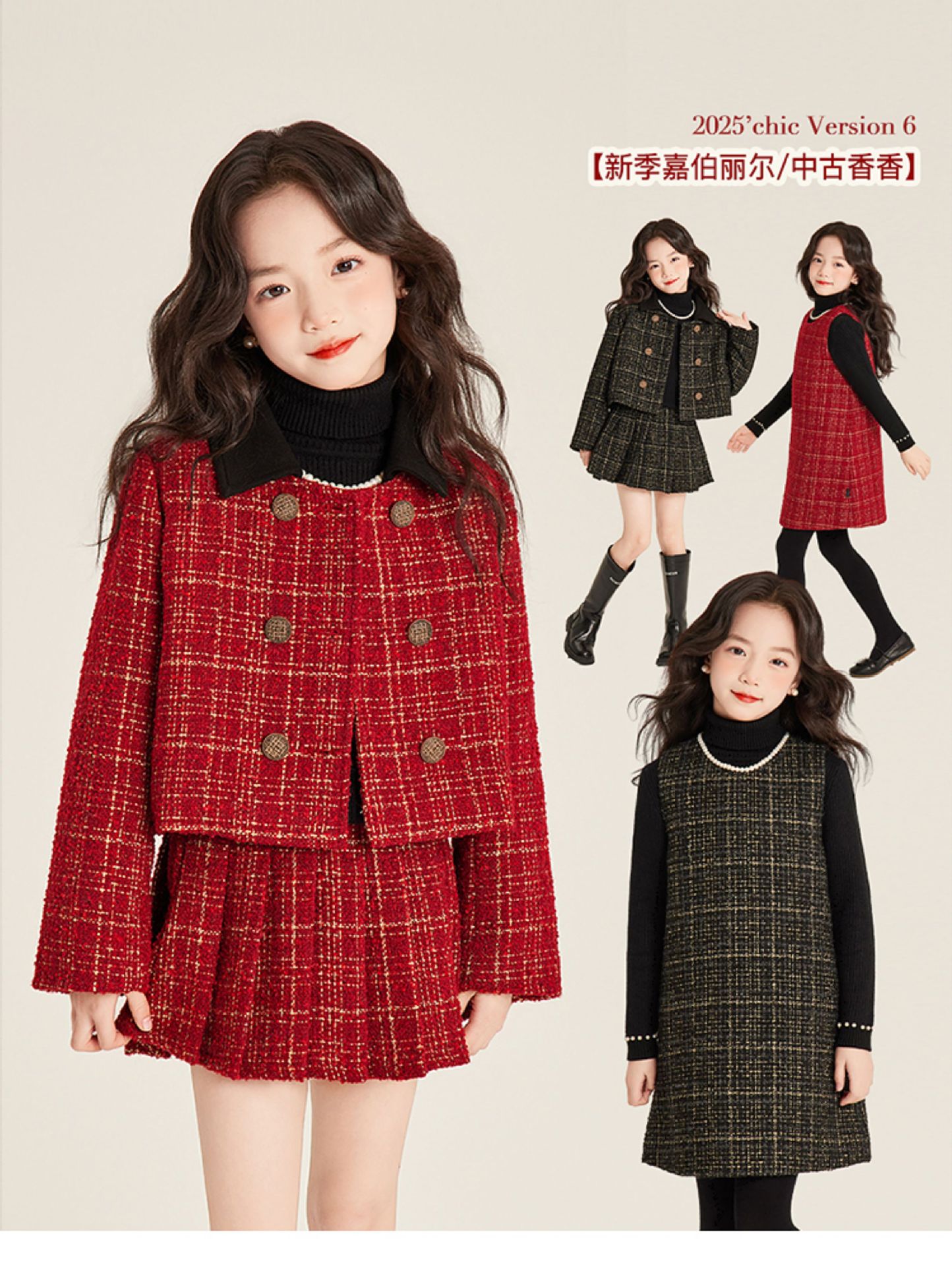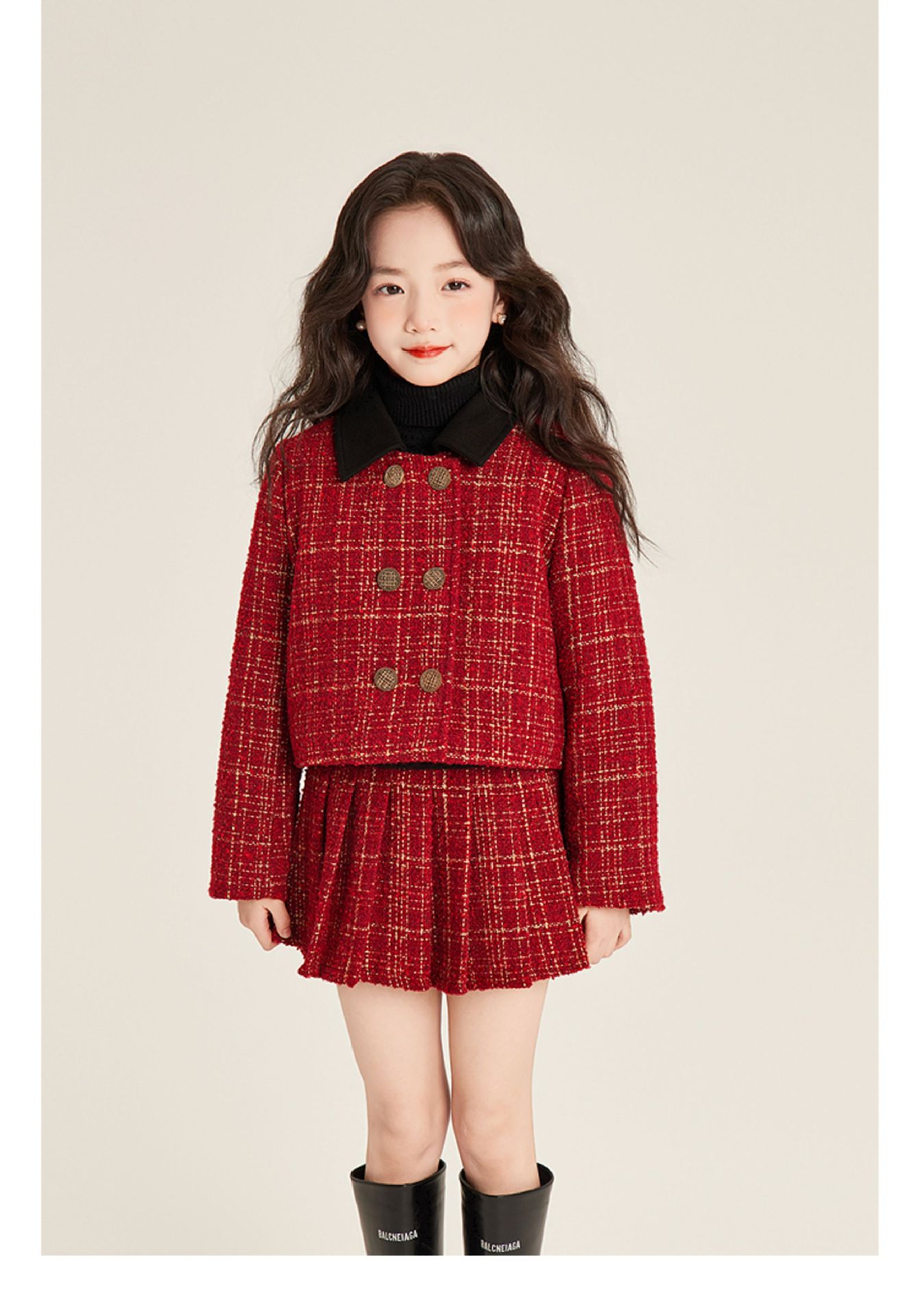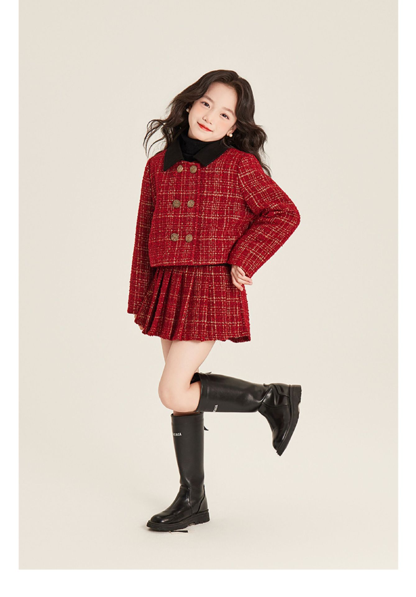 Amybaby 소녀 세트 겨울 2024 새로운 패션 작은 향기로운 민소매 둥근 목 조끼 스커트 주름 치마 코트