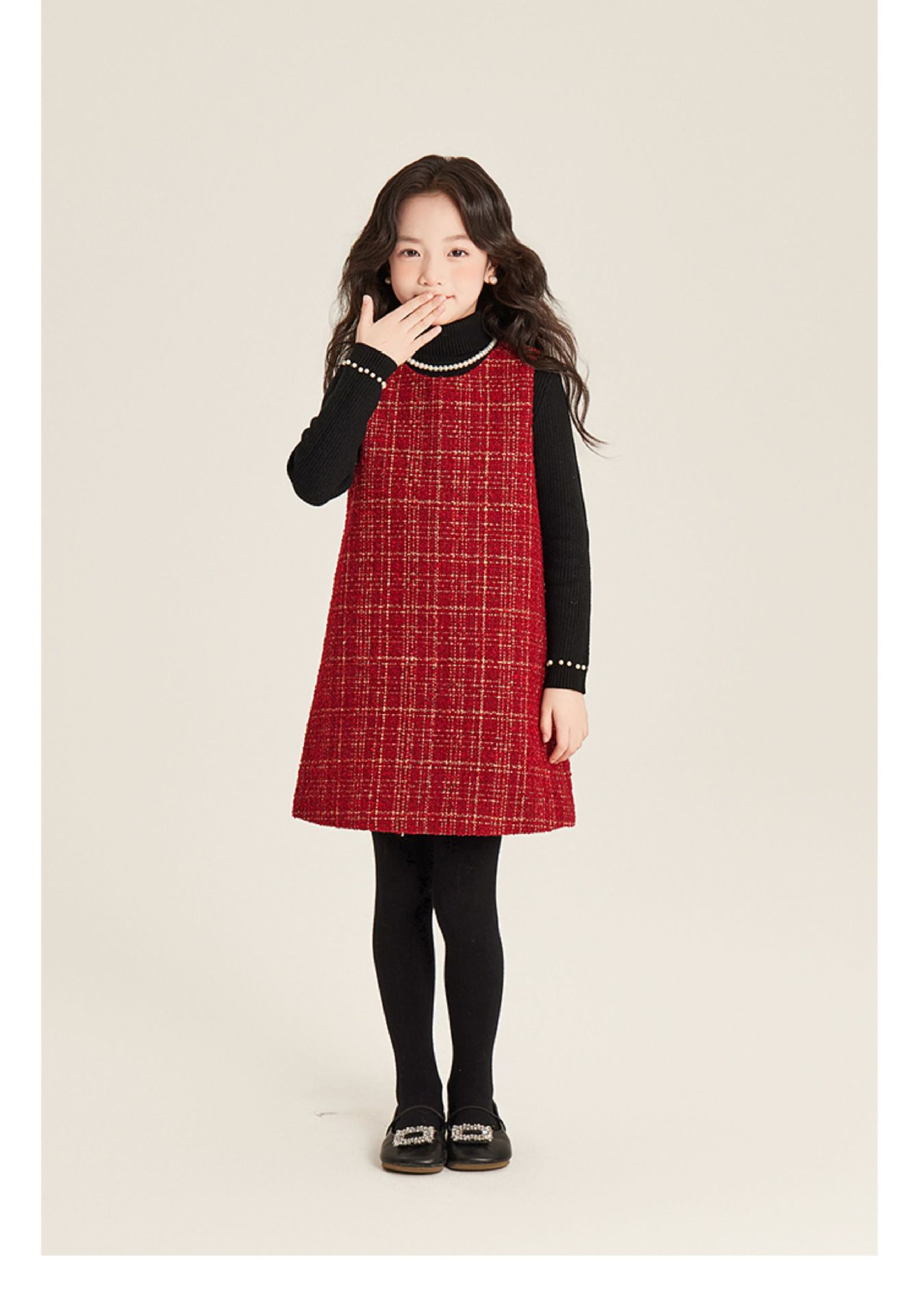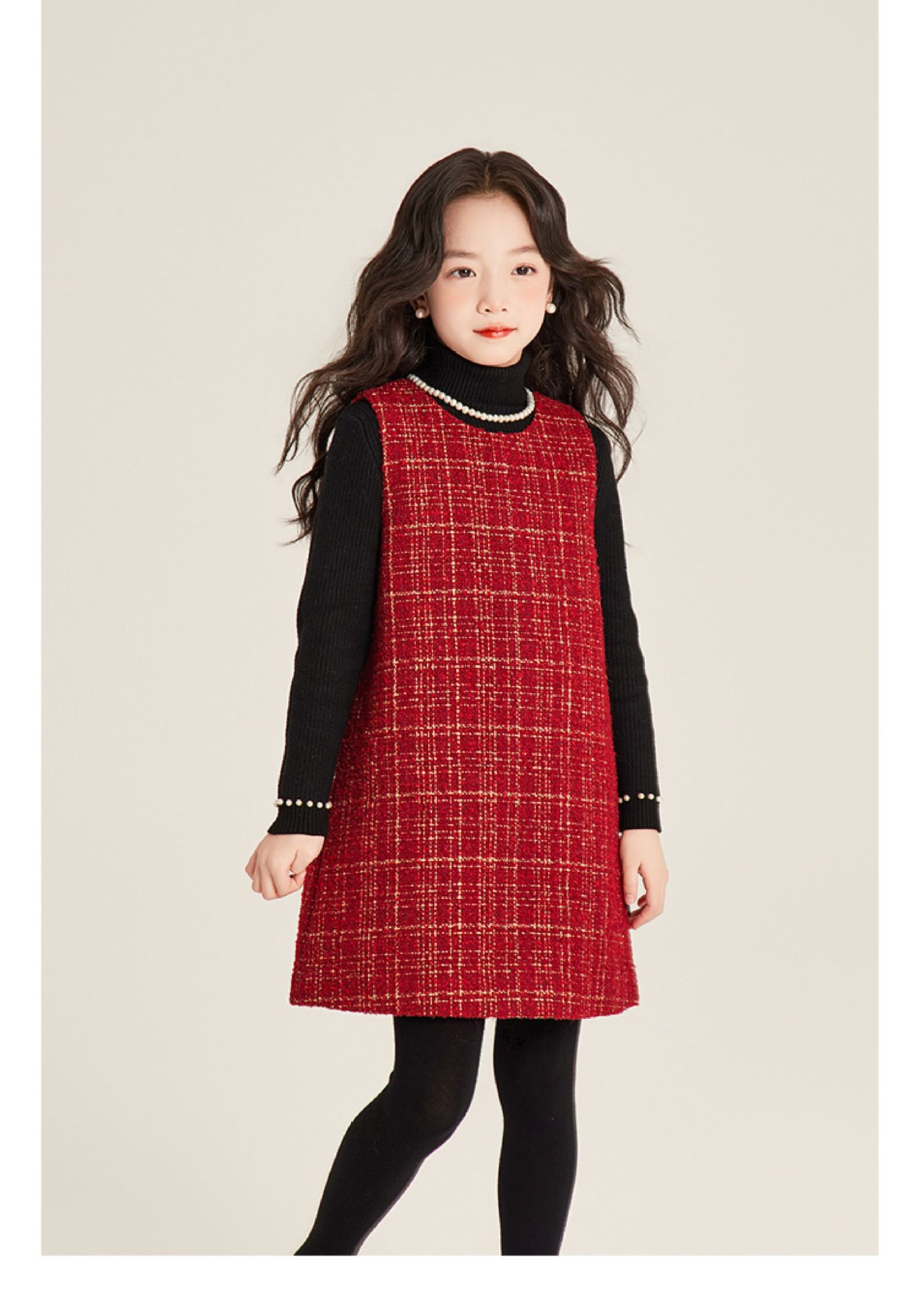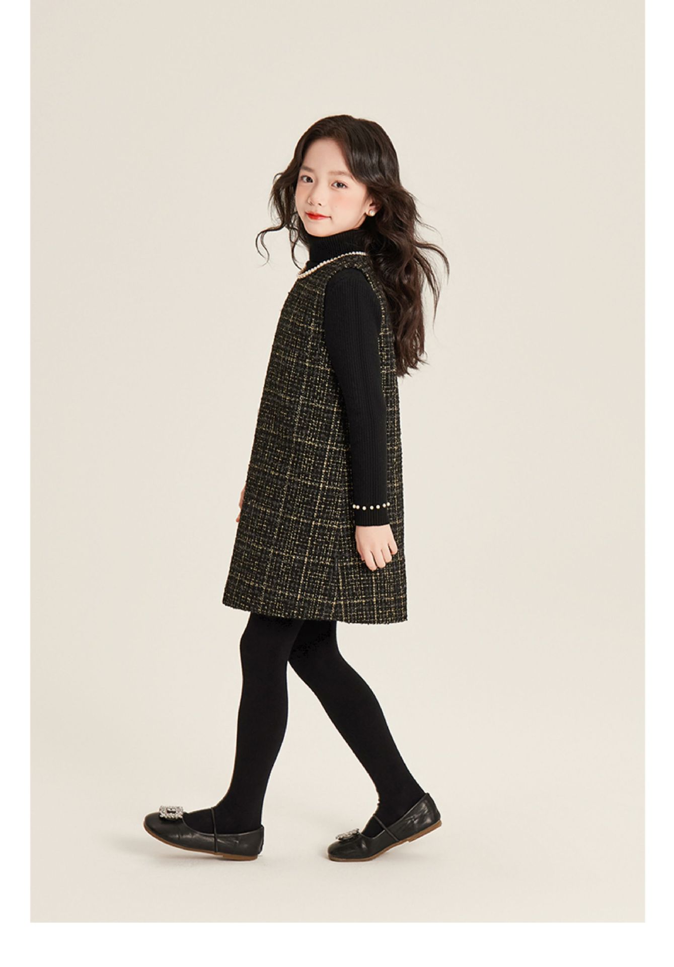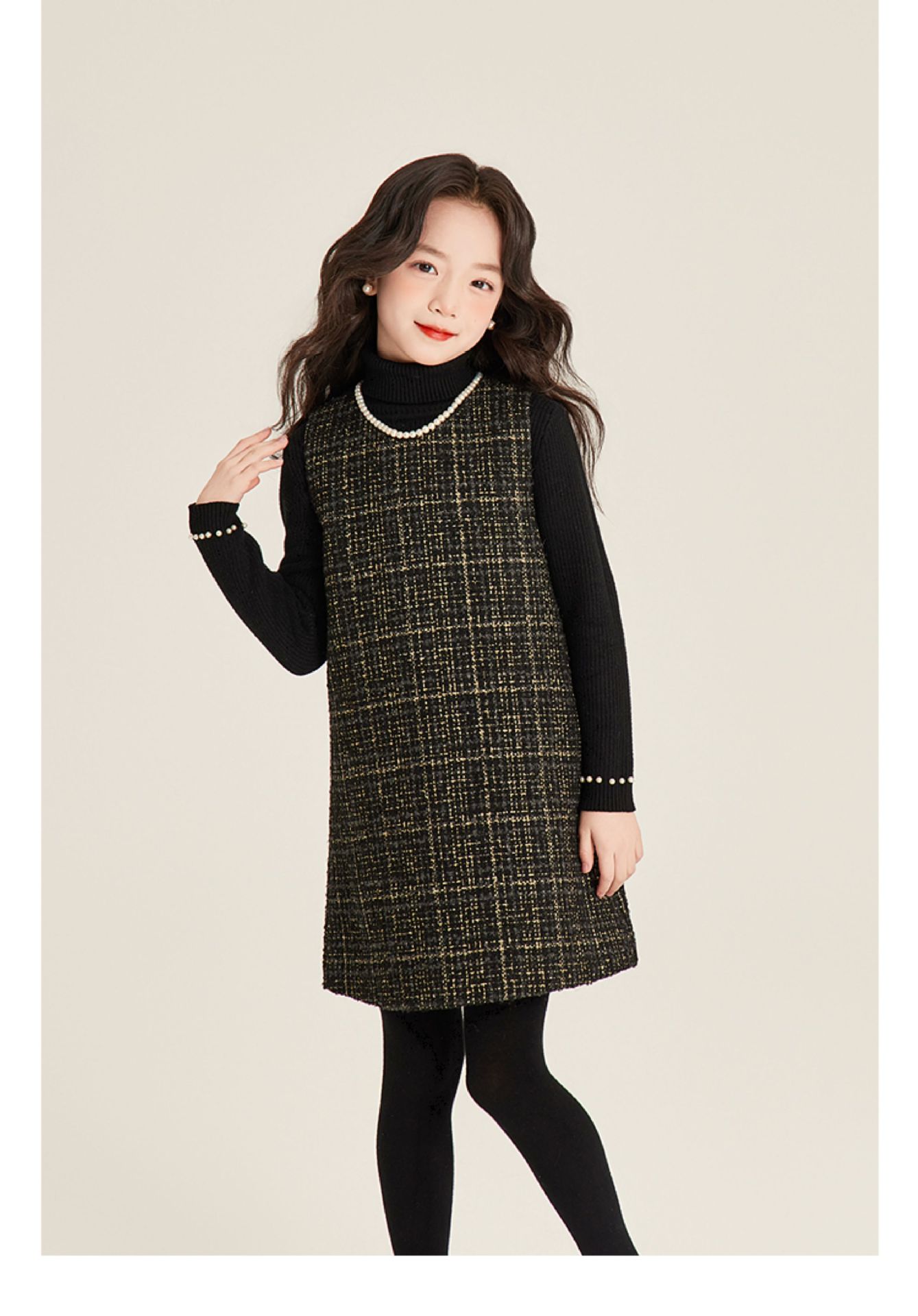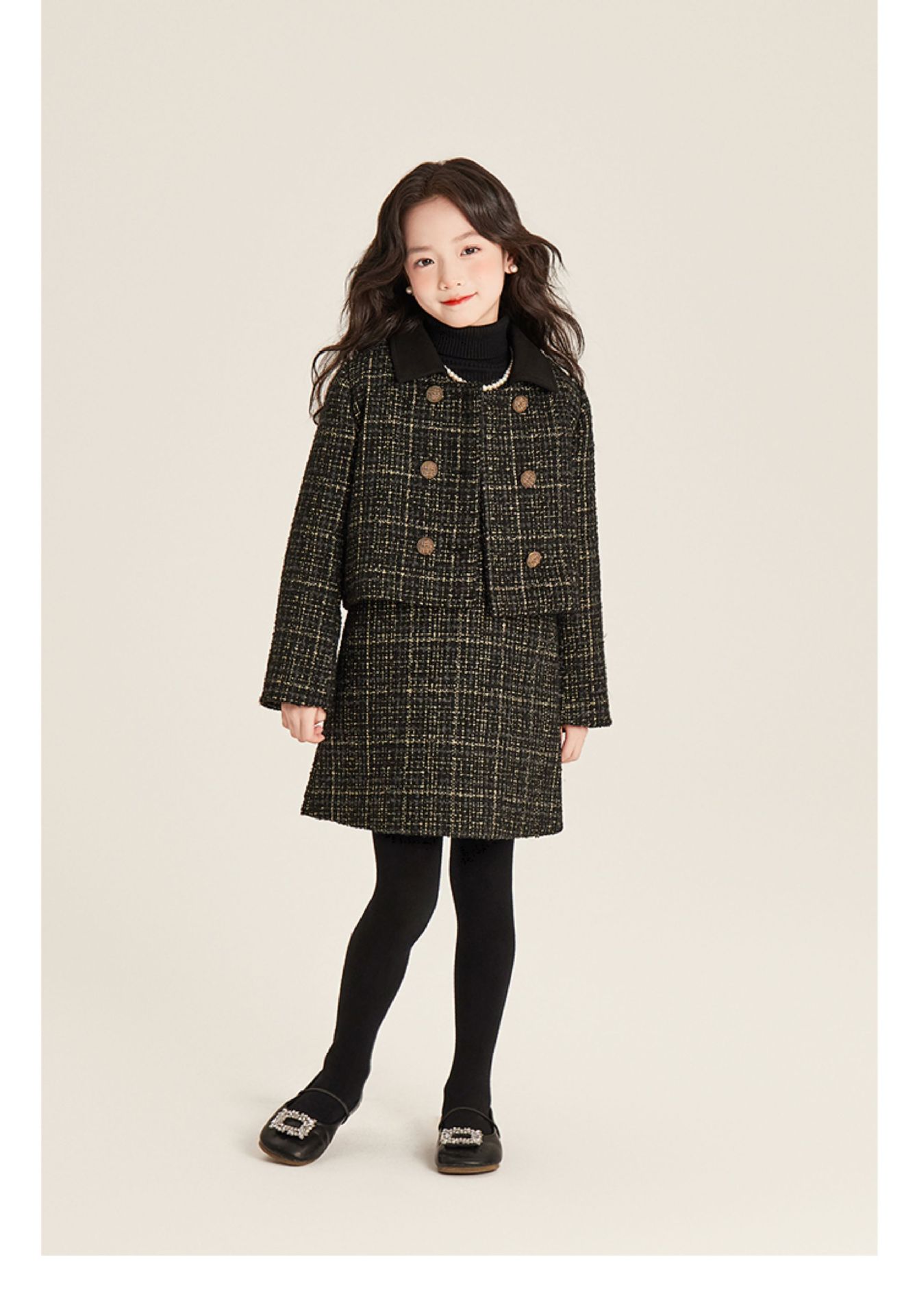 Amybaby 소녀 세트 겨울 2024 새로운 패션 작은 향기로운 민소매 둥근 목 조끼 스커트 주름 치마 코트