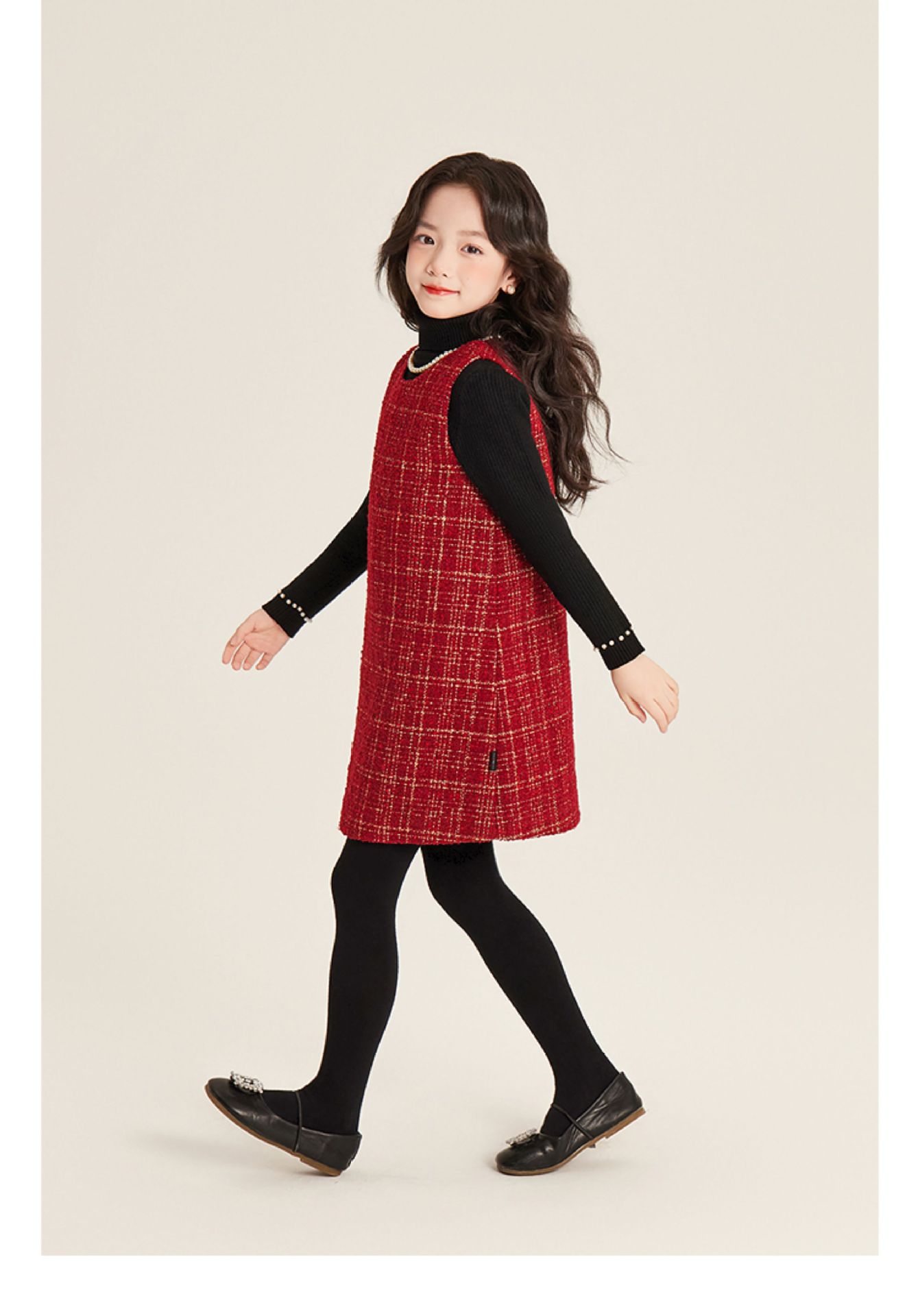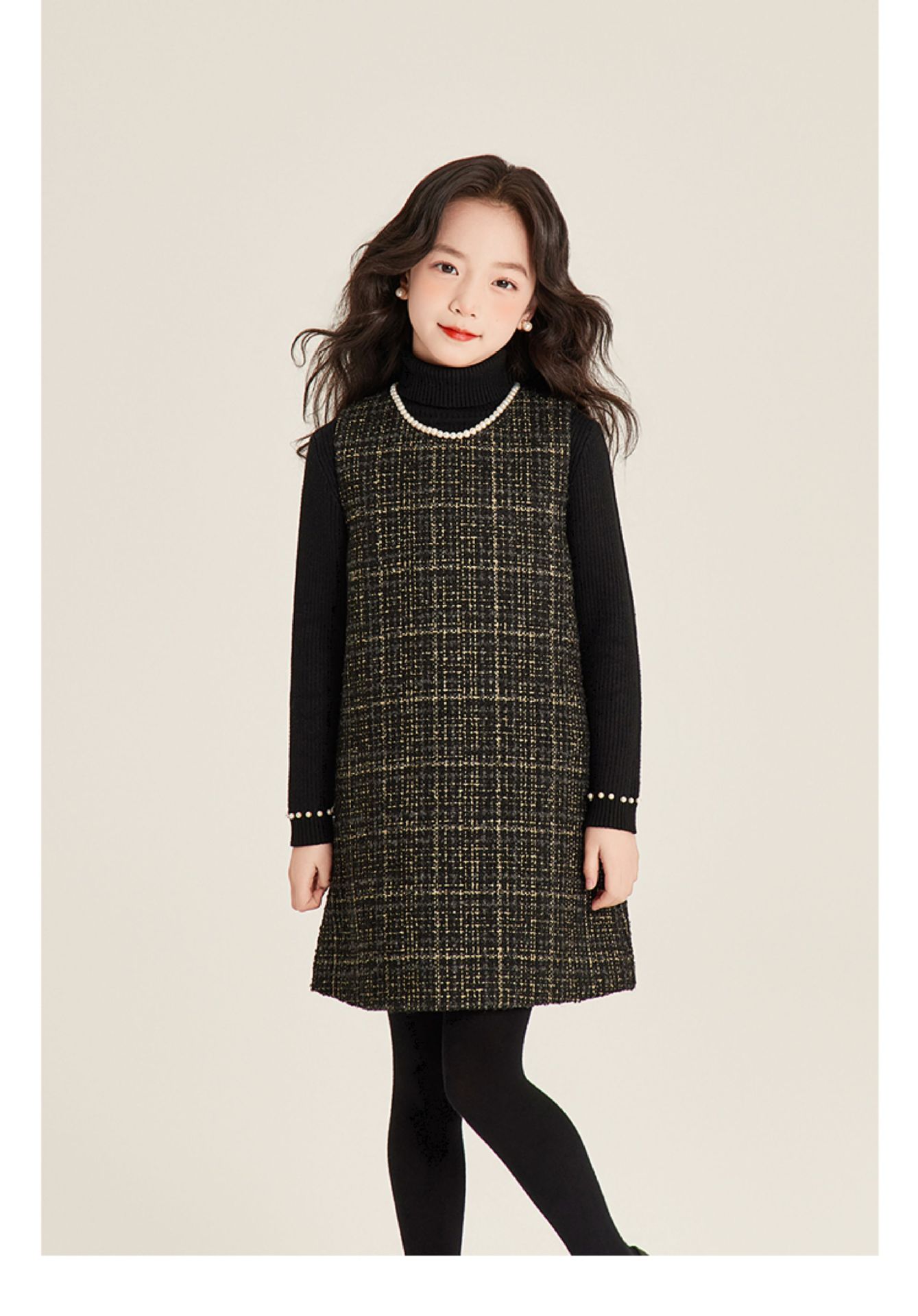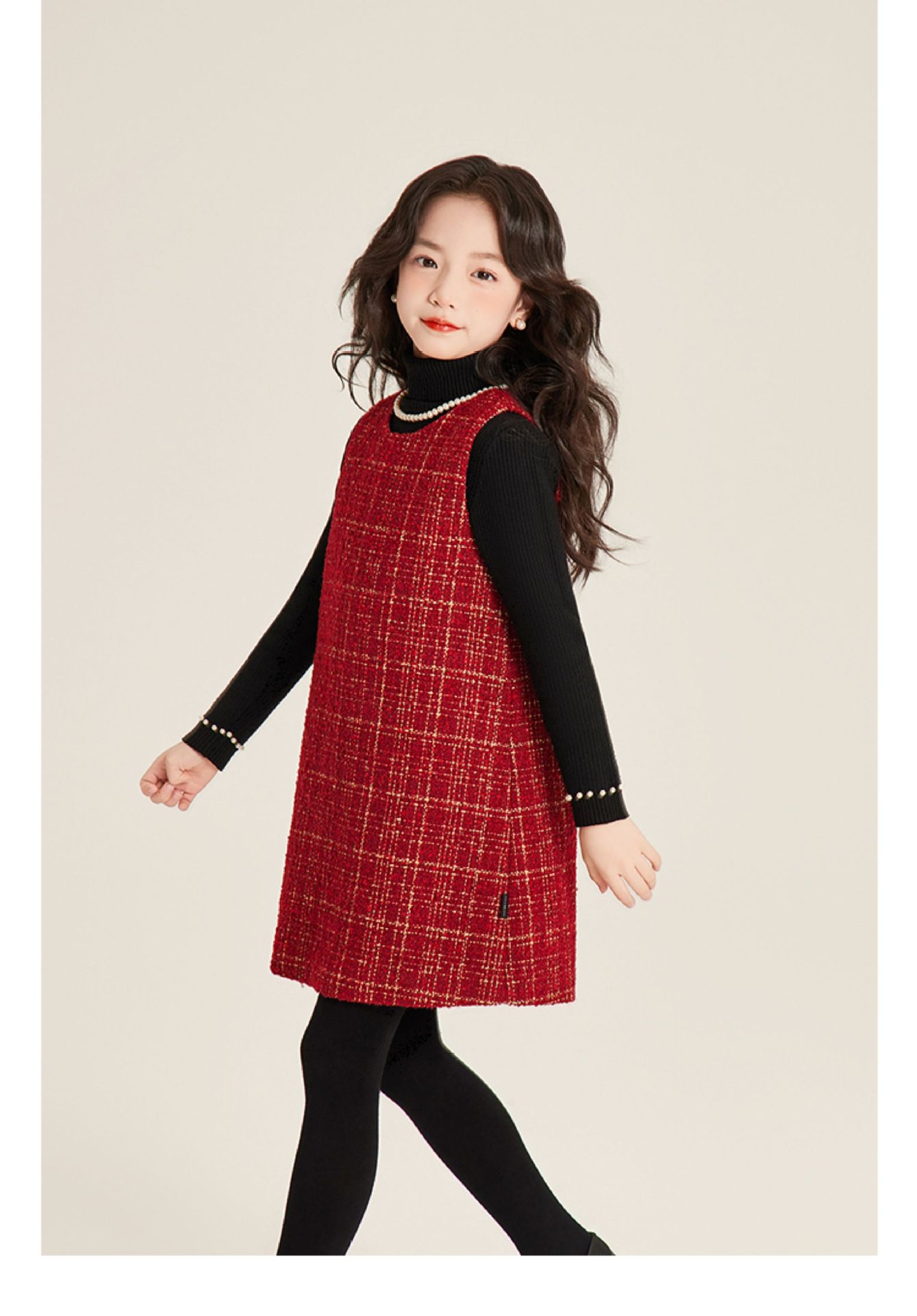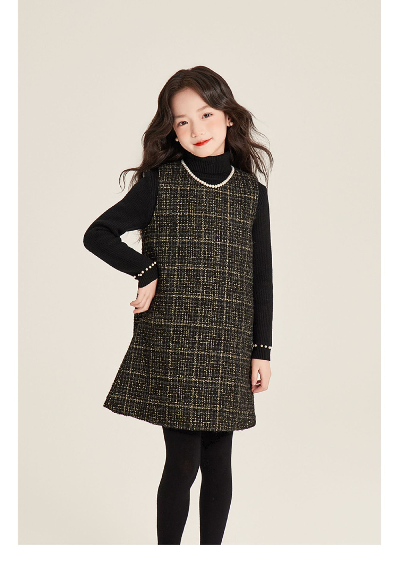 Amybaby 소녀 세트 겨울 2024 새로운 패션 작은 향기로운 민소매 둥근 목 조끼 스커트 주름 치마 코트